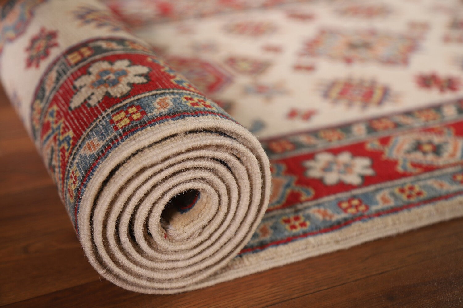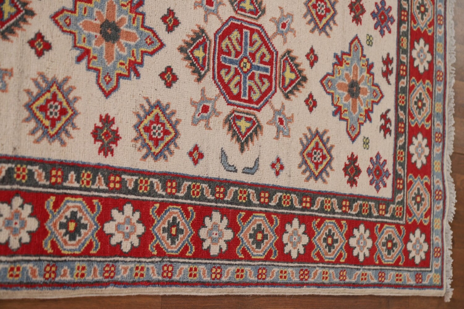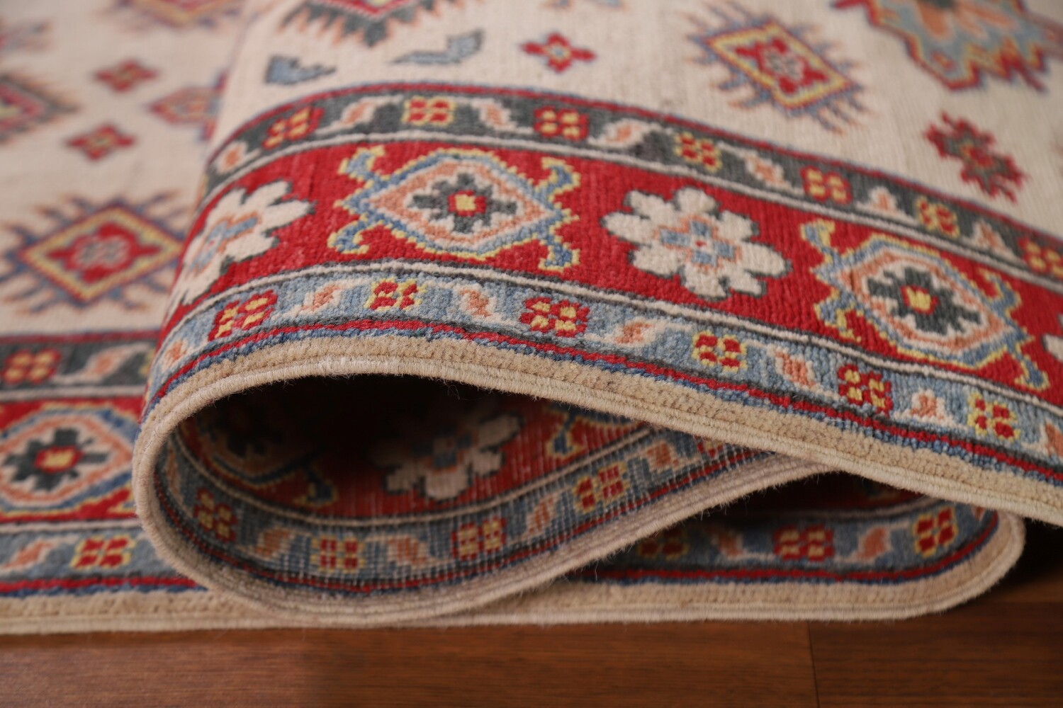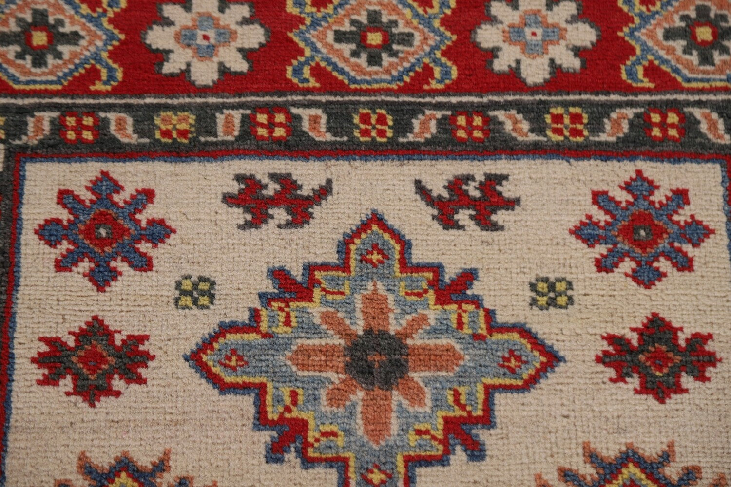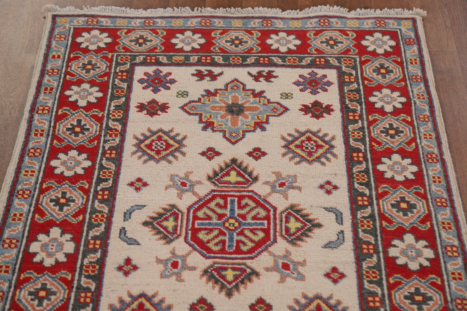 Geometric Kazak Ivory Runner Rug 3x10