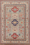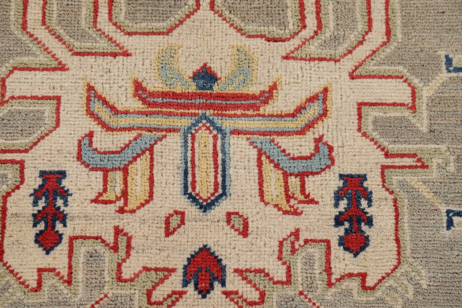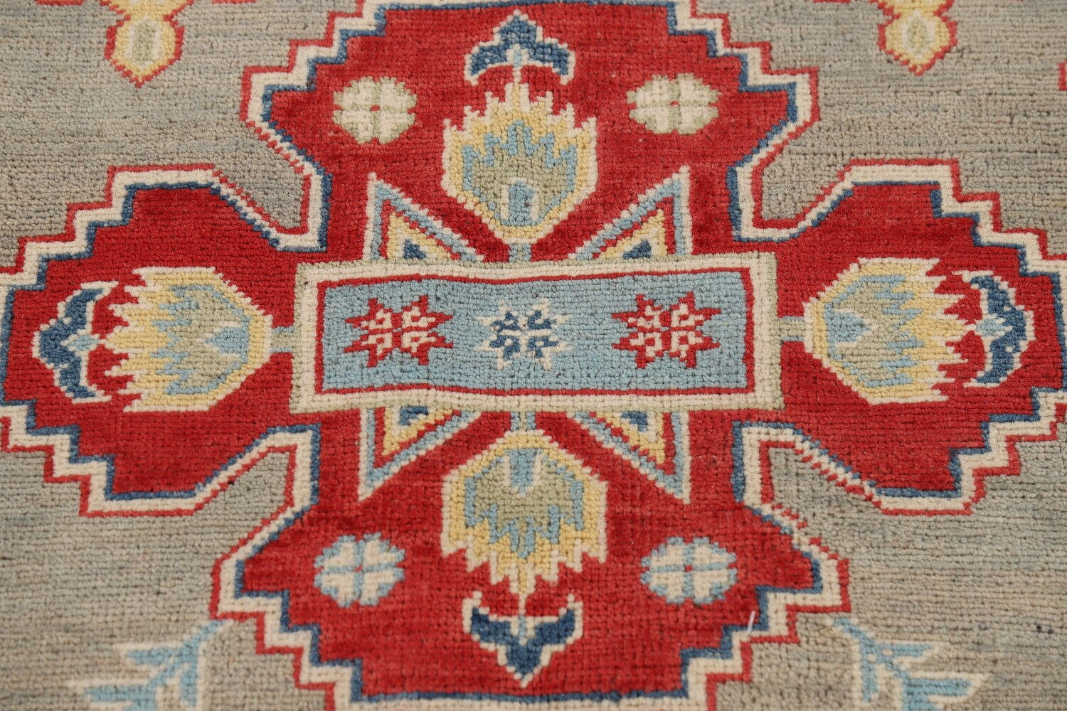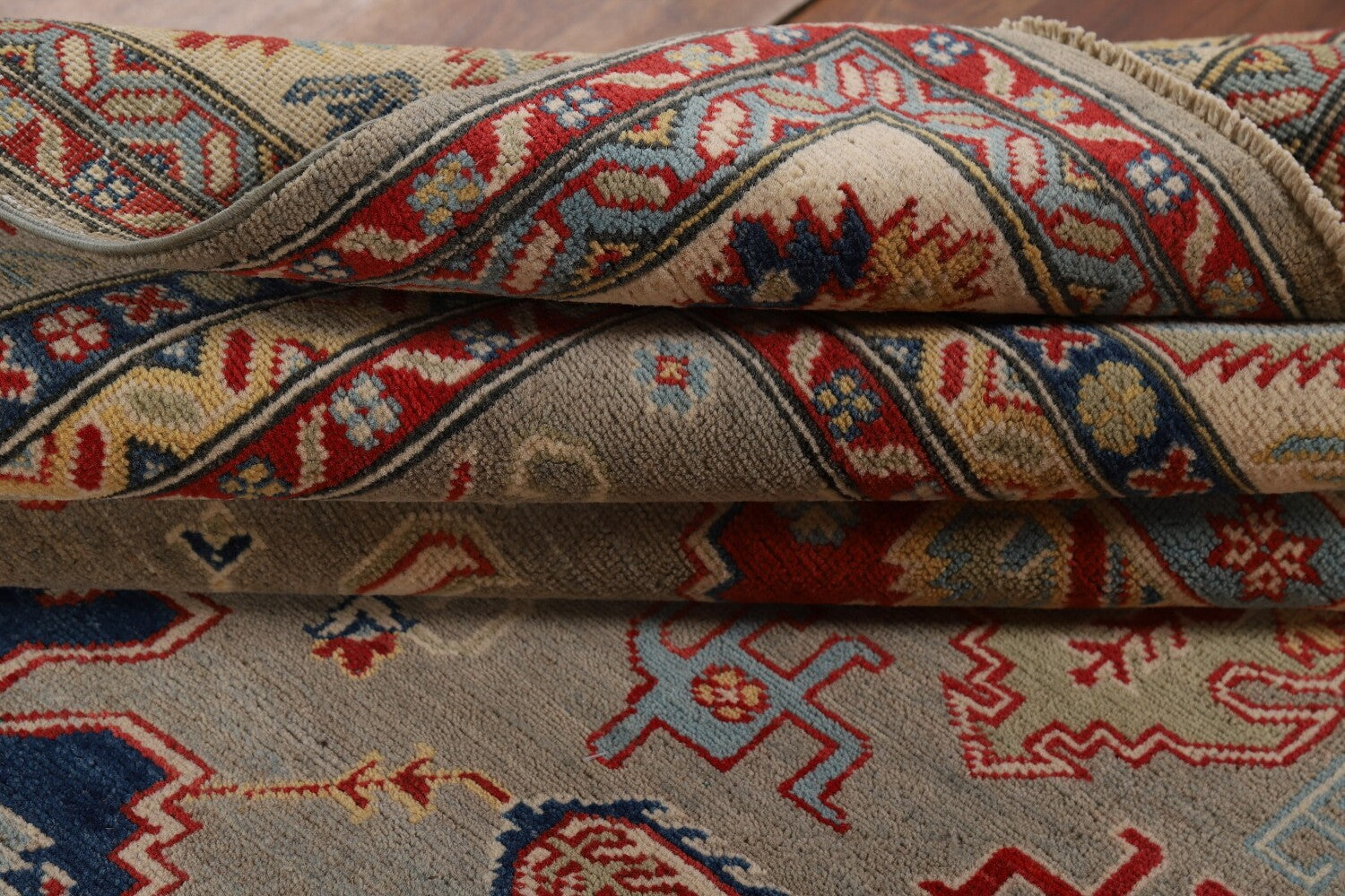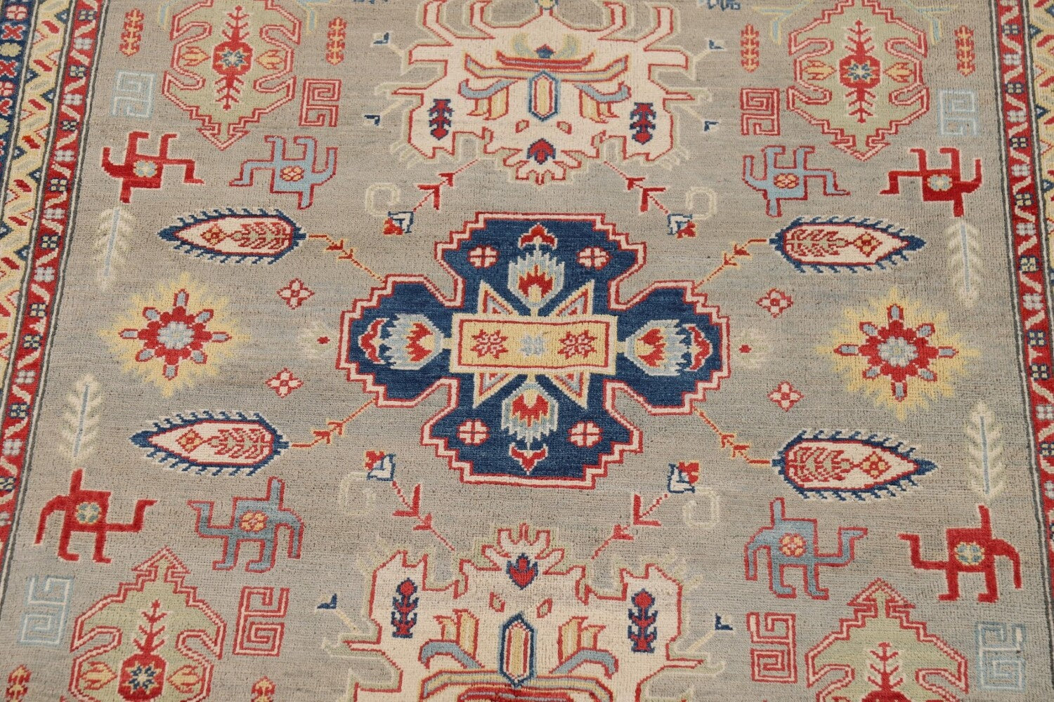 A Beautiful Genuine Pakistan Kazak rug is Hand Knotted by skillful weavers in Pakistan with 100% Wool Material. This rug is in New, First Quality condition. dimensions are 9' 9'' X 6' 7'' in foot and 297 X 201 in centimeter. the primary color is Greys & Charcoal.