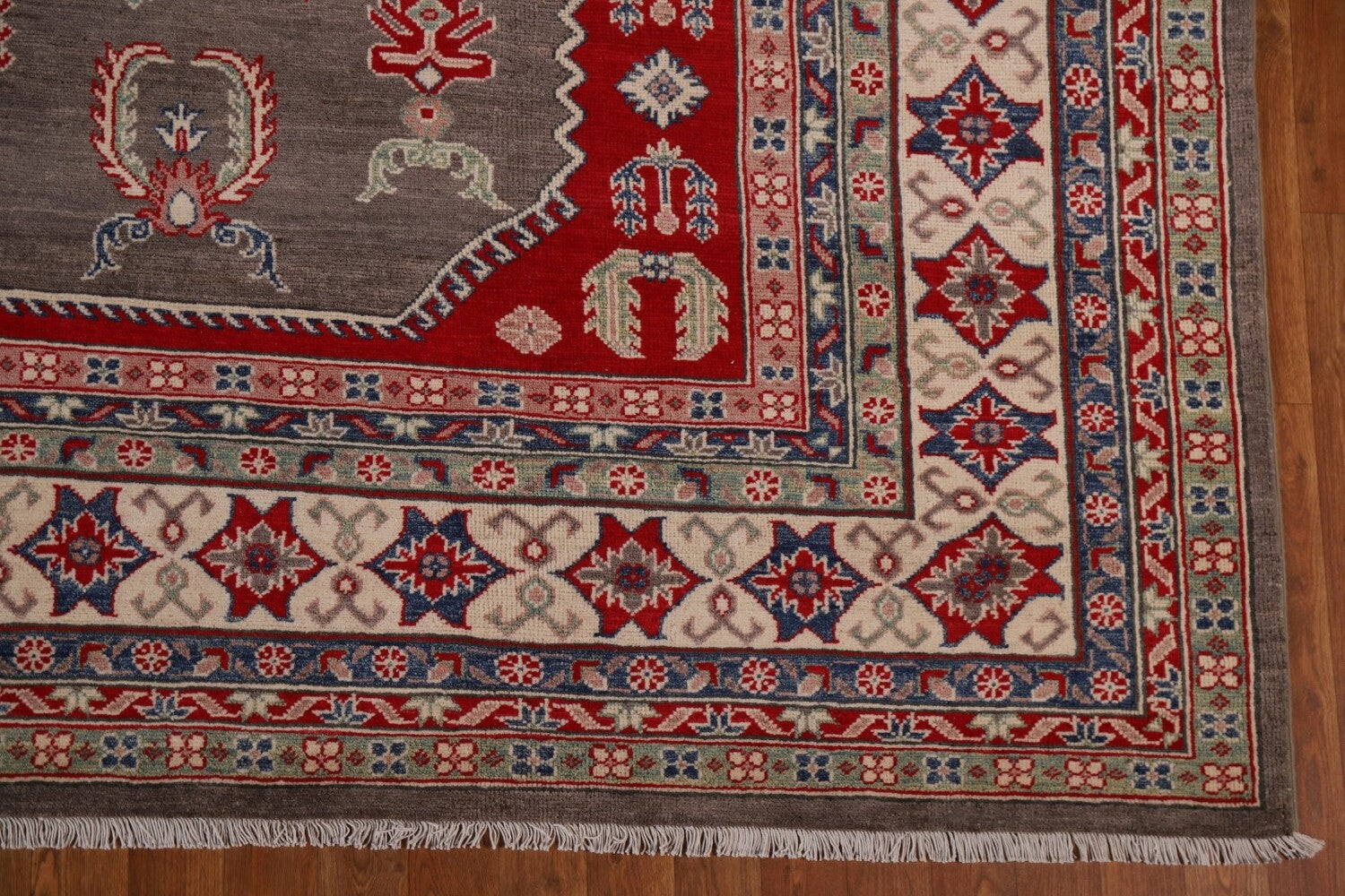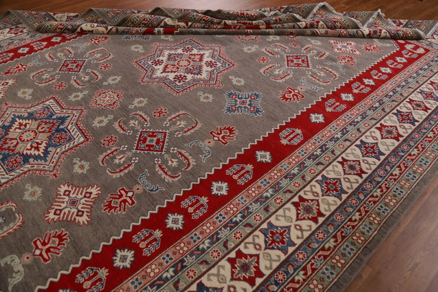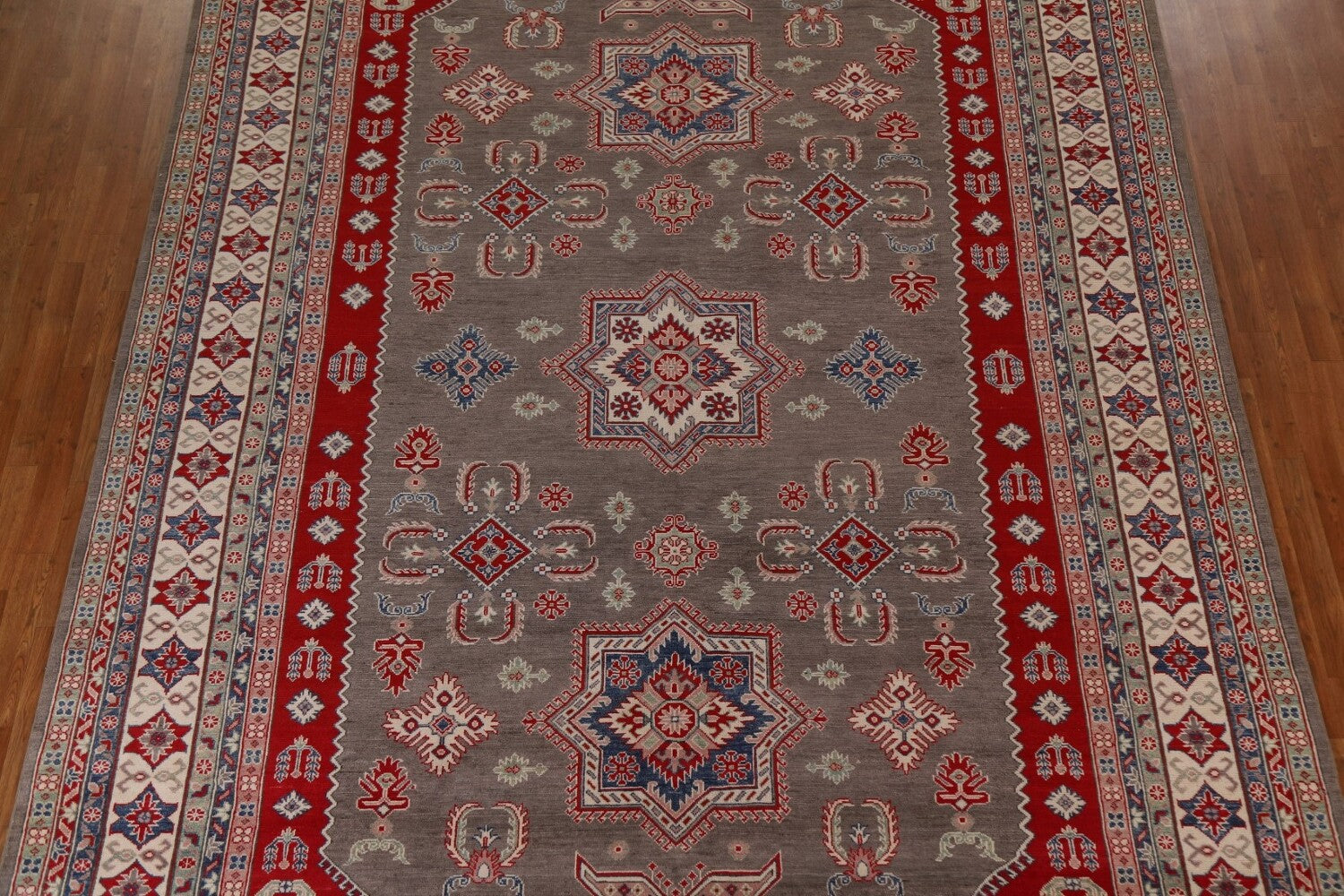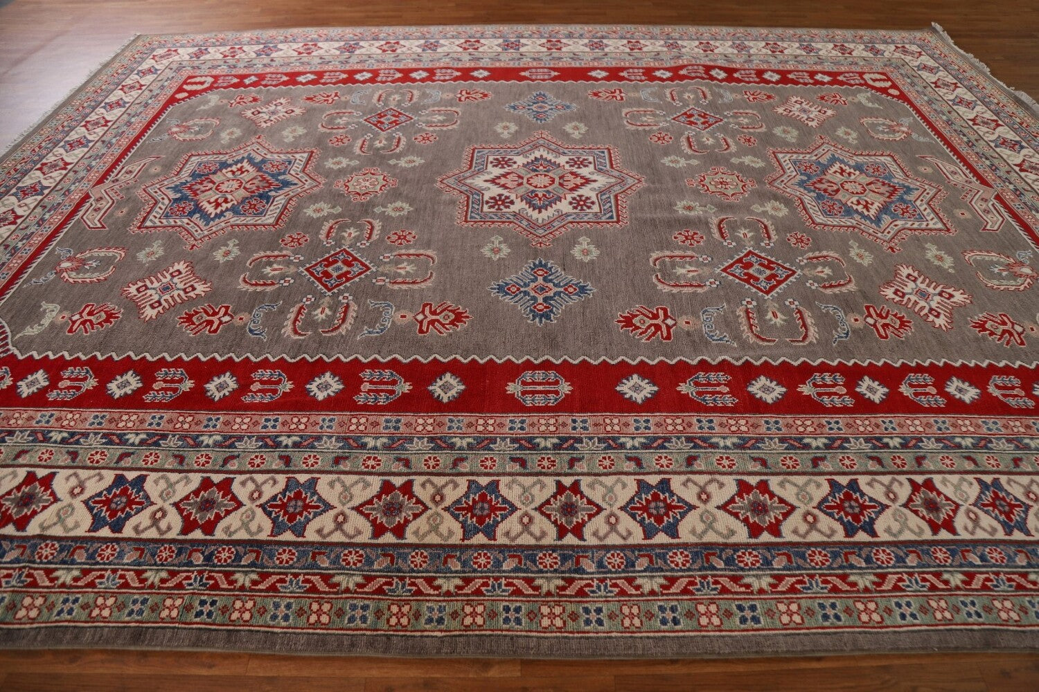 A Beautiful Genuine Pakistan Kazak rug is Hand Knotted by skillful weavers in Pakistan with 100% Wool Material. This rug is in condition. dimensions are 12' 7'' X 9' 9'' in foot and 384 X 297 in centimeter. the primary color is Brown.