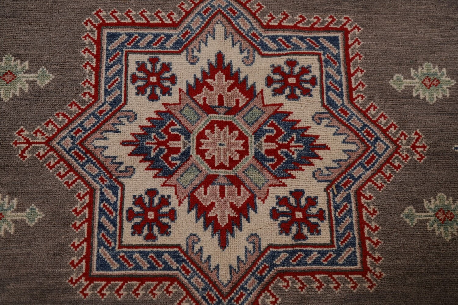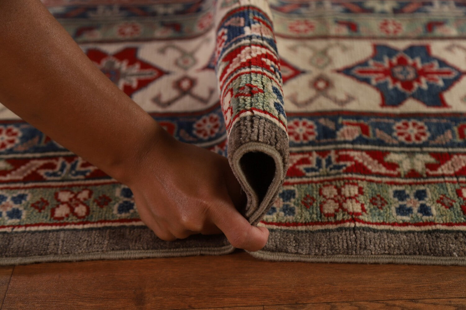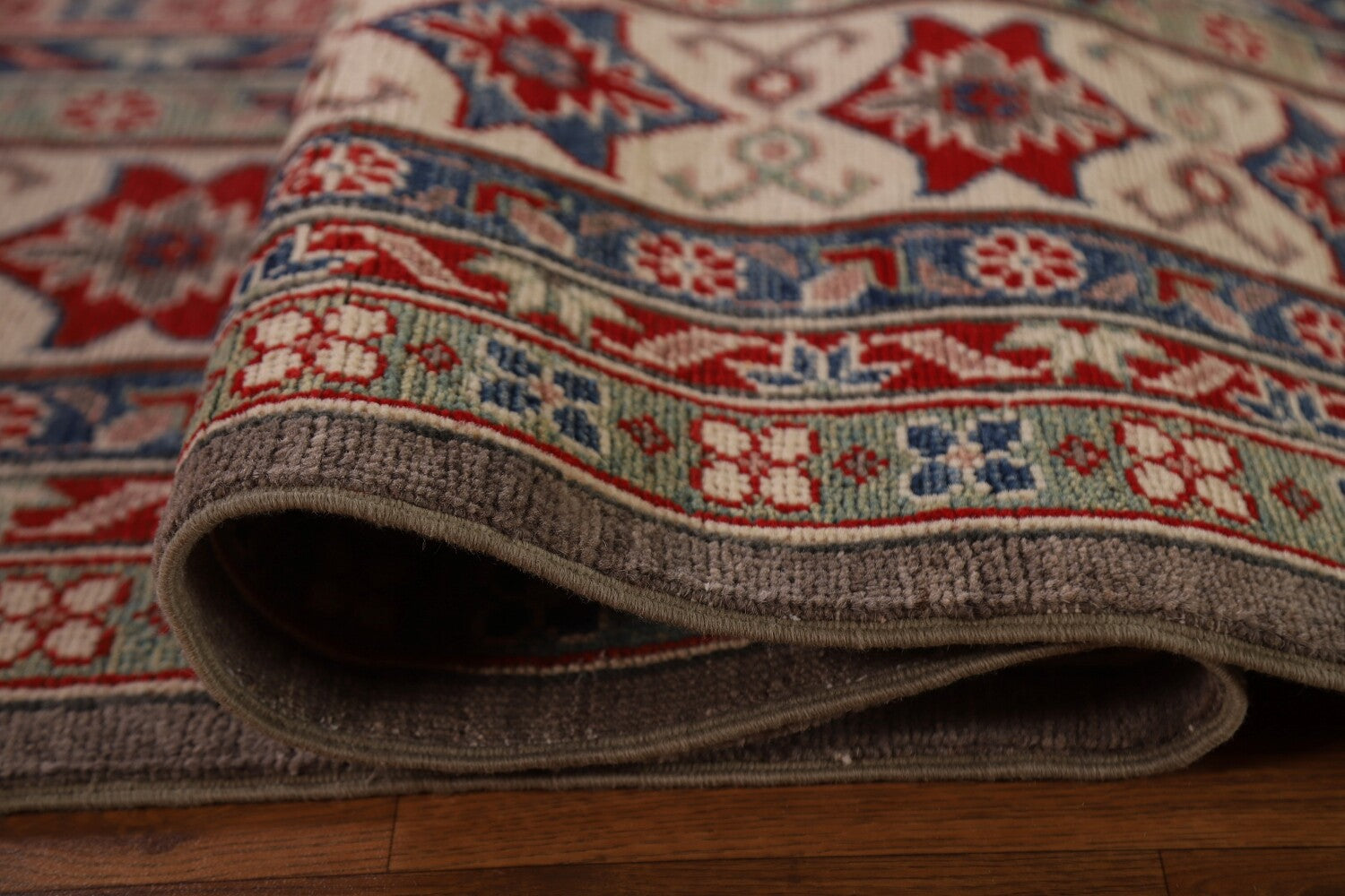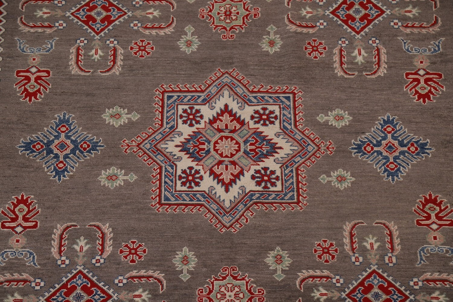 A Beautiful Genuine Pakistan Kazak rug is Hand Knotted by skillful weavers in Pakistan with 100% Wool Material. This rug is in condition. dimensions are 12' 7'' X 9' 9'' in foot and 384 X 297 in centimeter. the primary color is Brown.