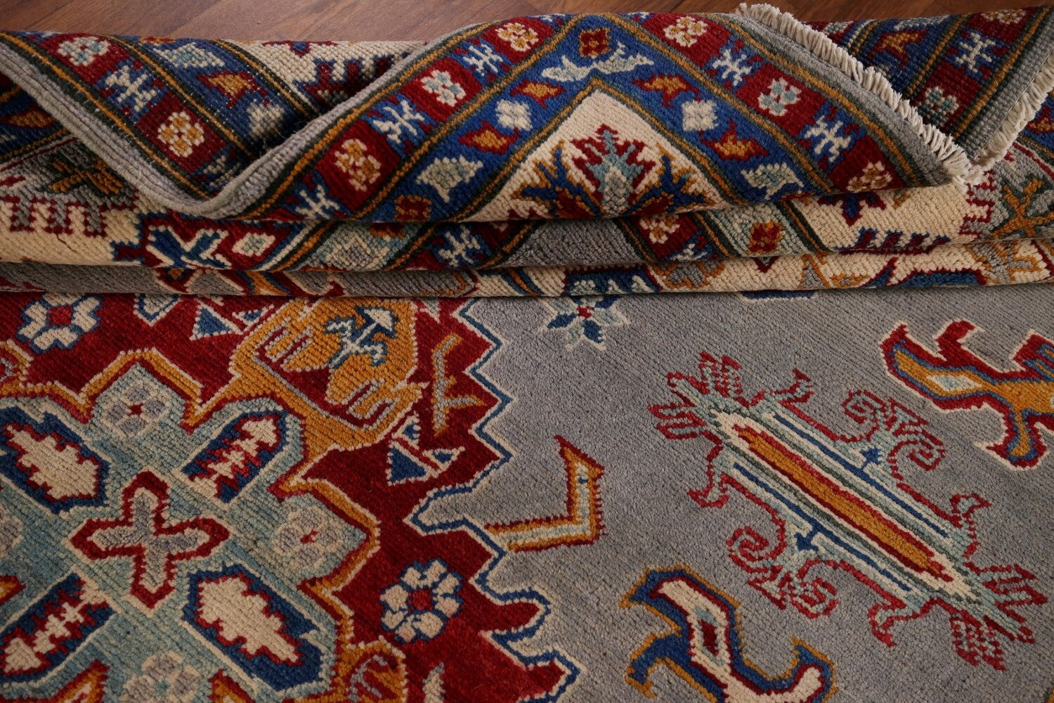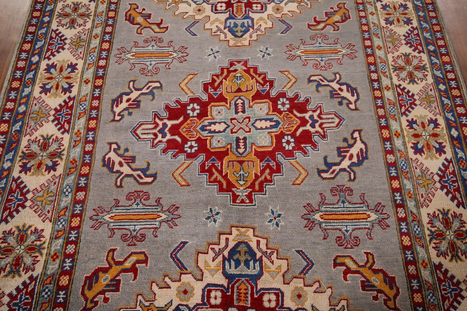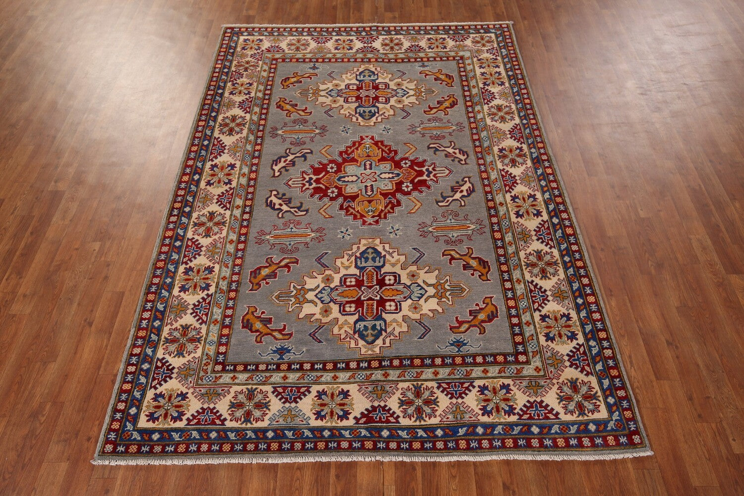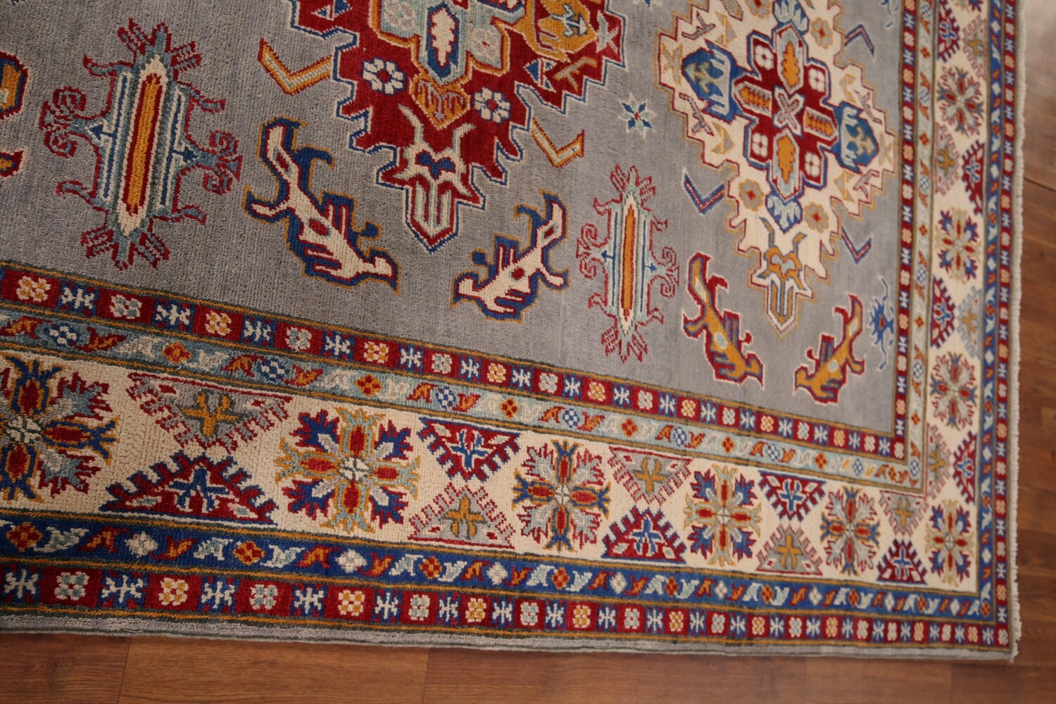 A Beautiful Genuine Pakistan Kazak rug is Hand Knotted by skillful weavers in Pakistan with 100% Wool Material. This rug is in New, First Quality condition. dimensions are 8' 4'' X 5' 10'' in foot and 254 X 178 in centimeter. the primary color is Greys & Charcoal.