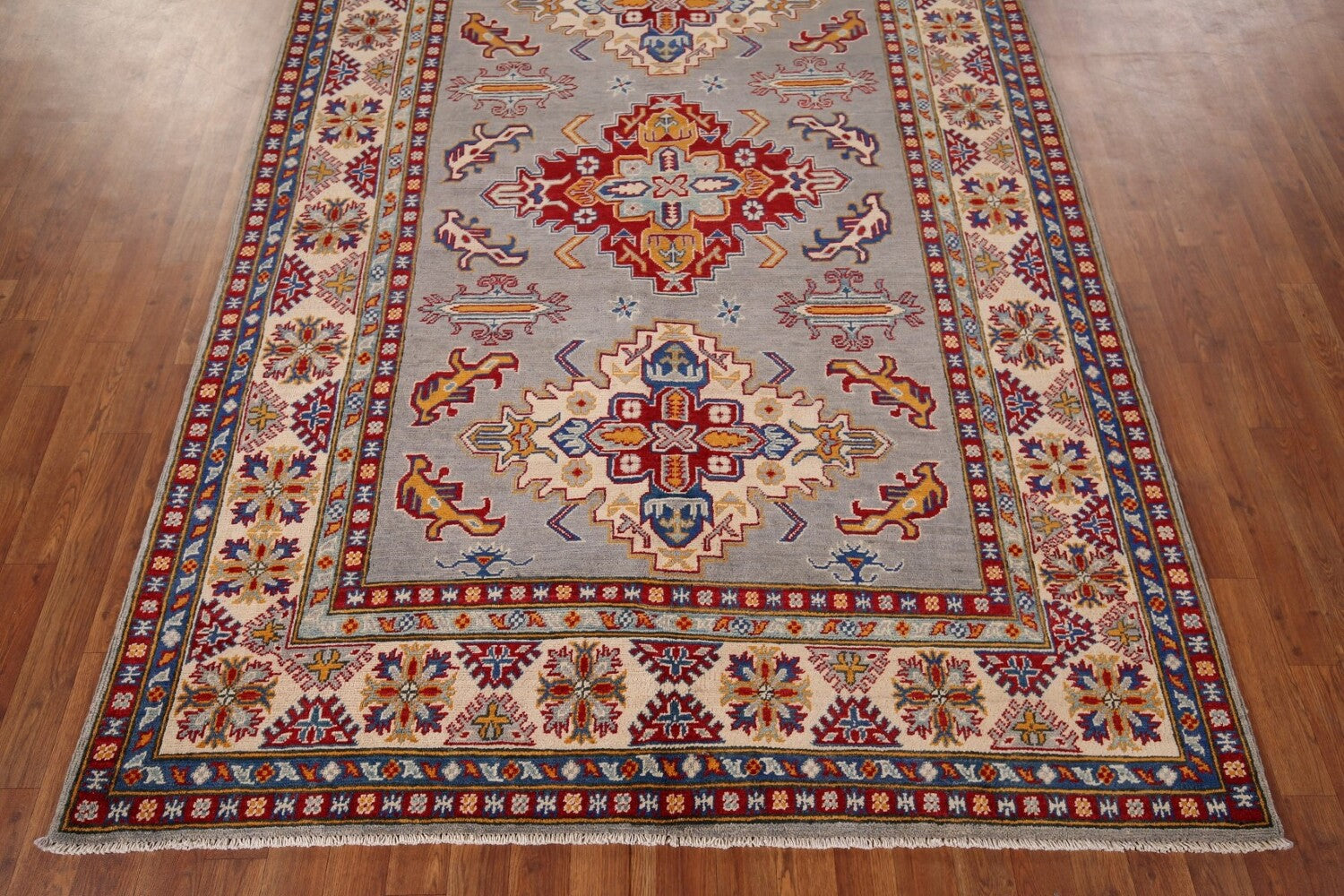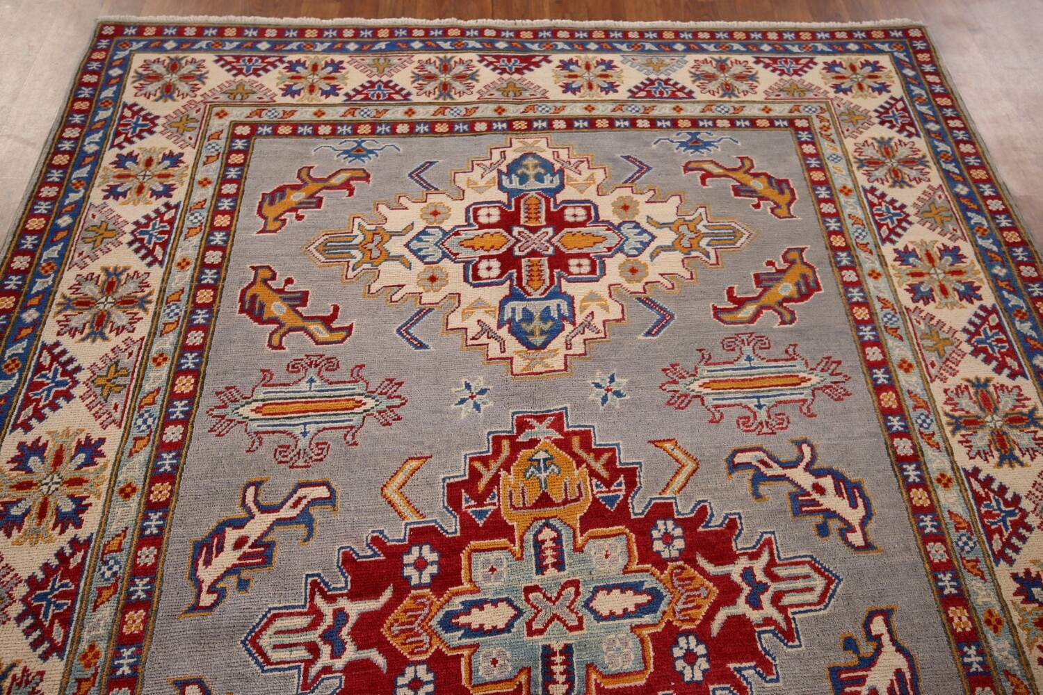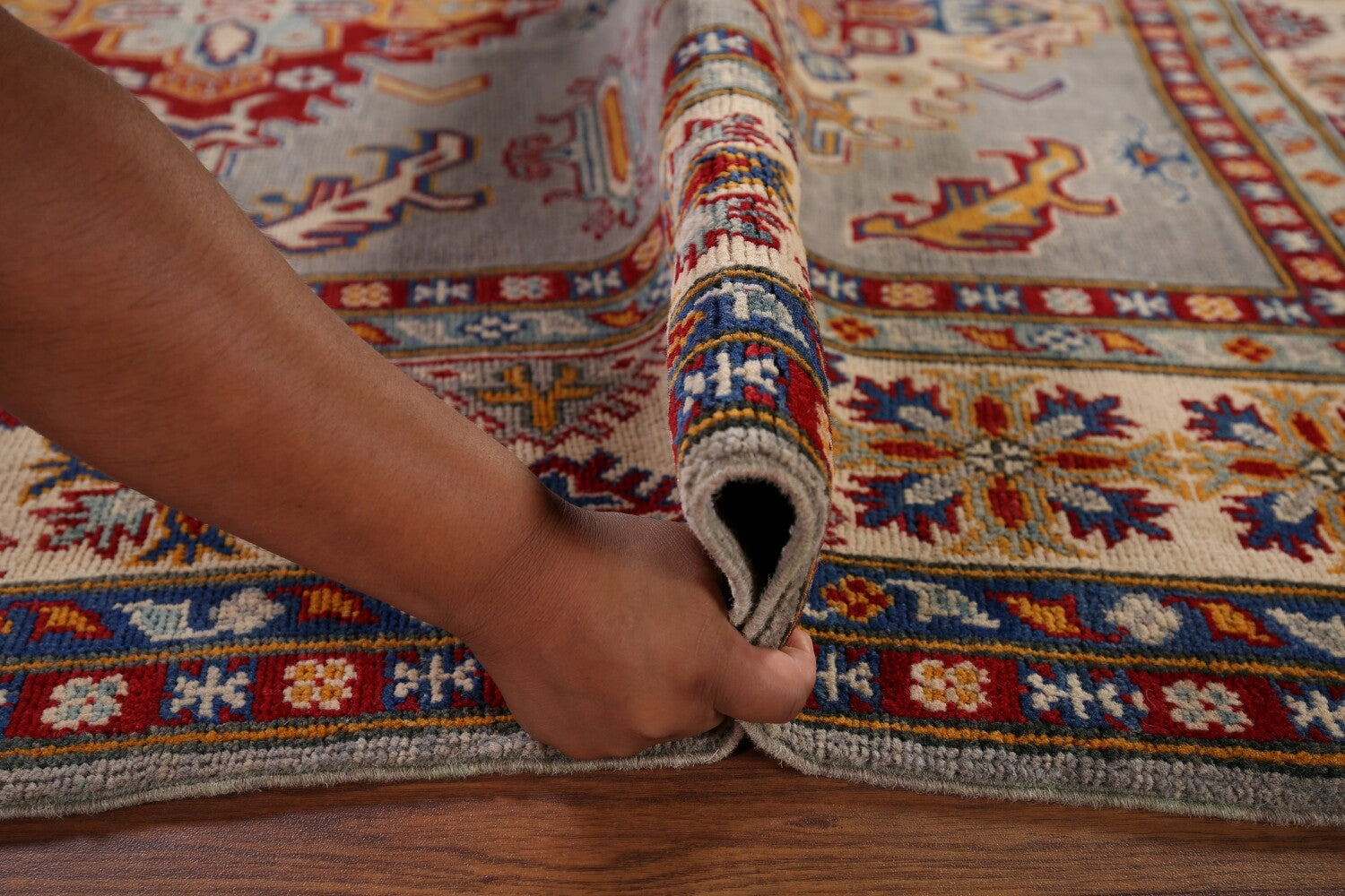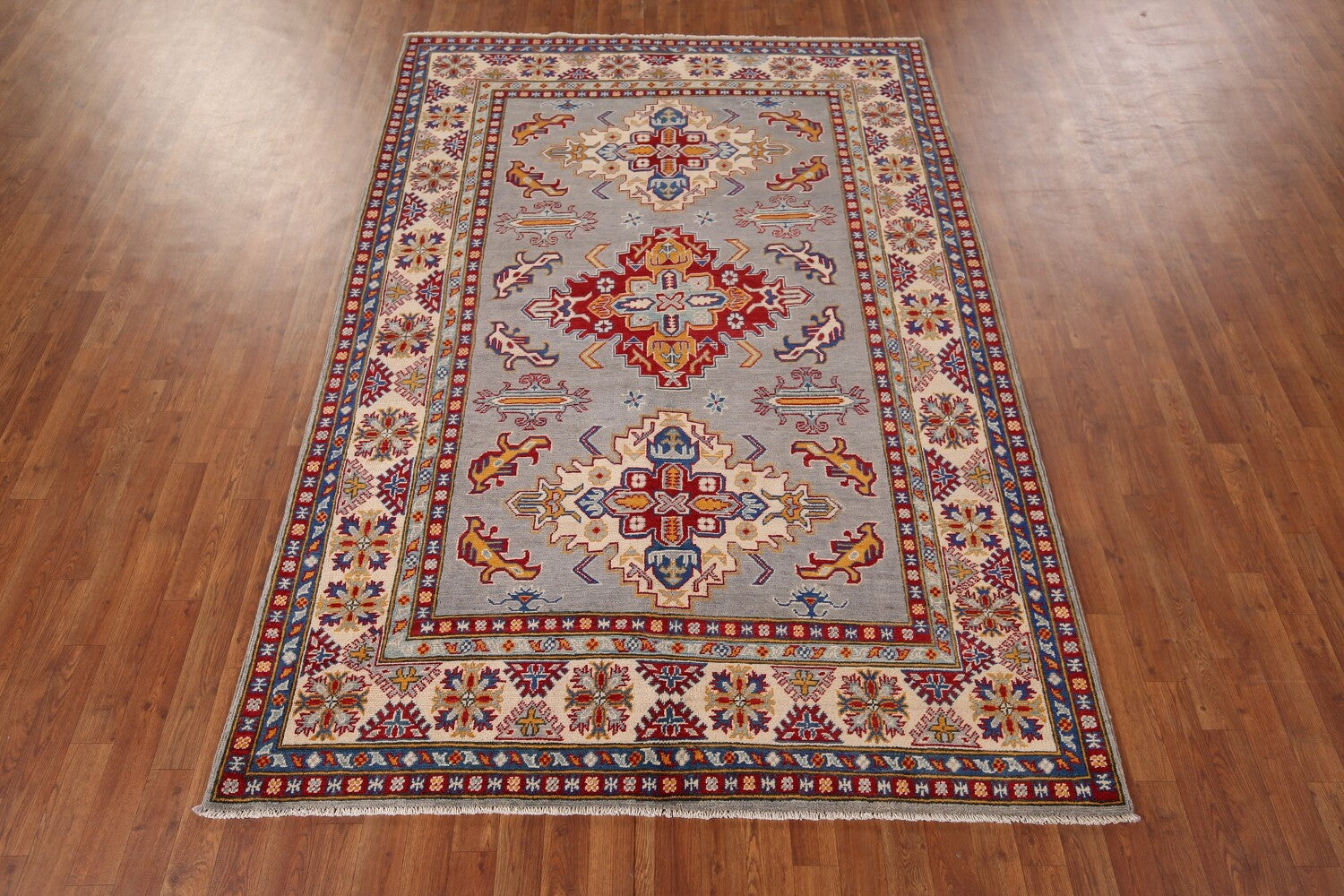 A Beautiful Genuine Pakistan Kazak rug is Hand Knotted by skillful weavers in Pakistan with 100% Wool Material. This rug is in New, First Quality condition. dimensions are 8' 4'' X 5' 10'' in foot and 254 X 178 in centimeter. the primary color is Greys & Charcoal.