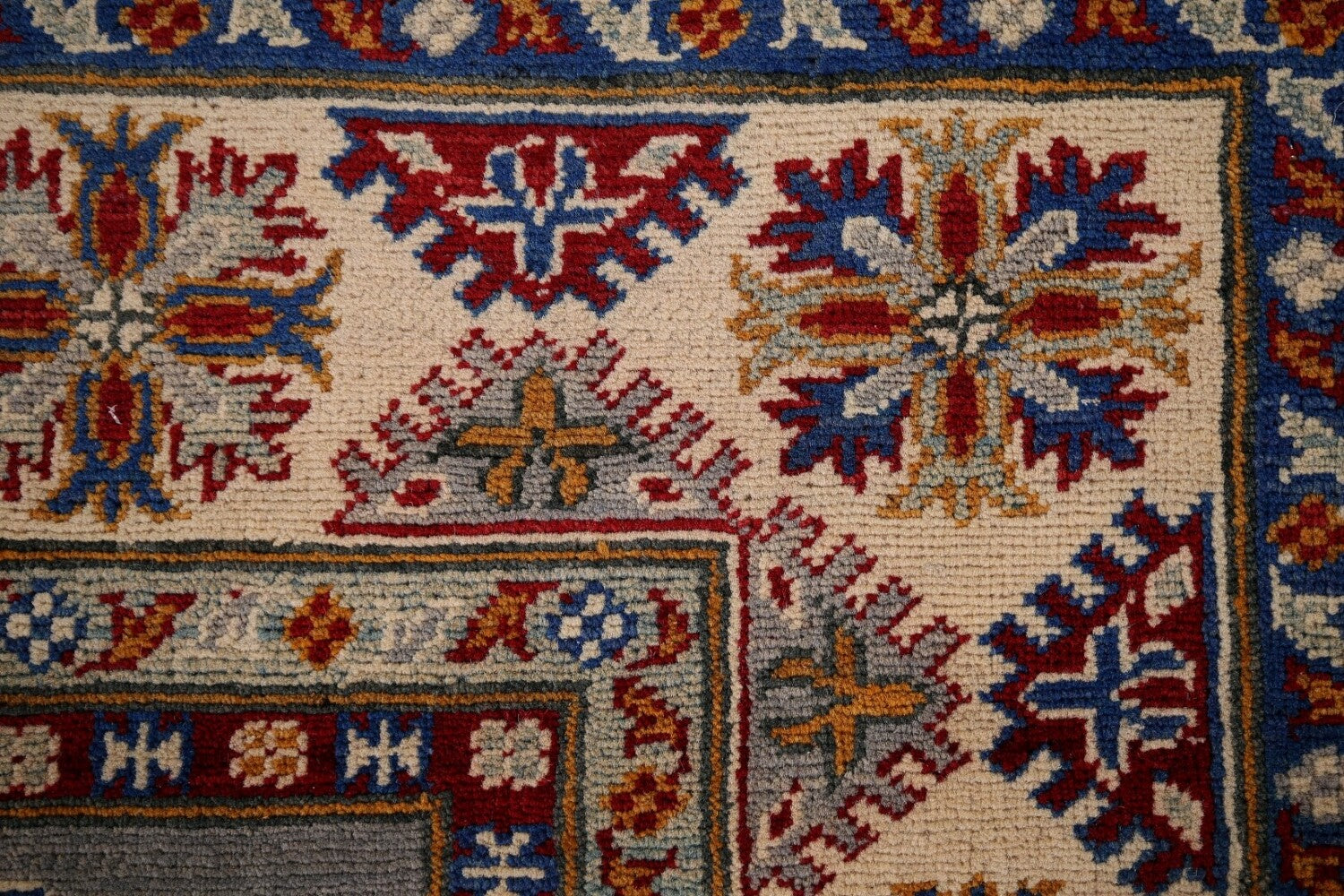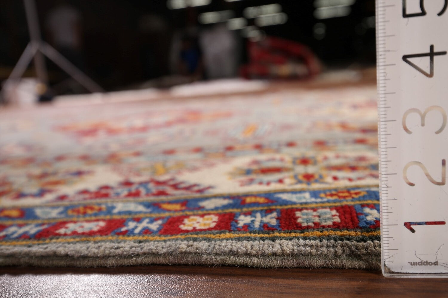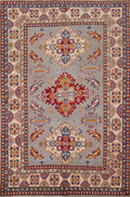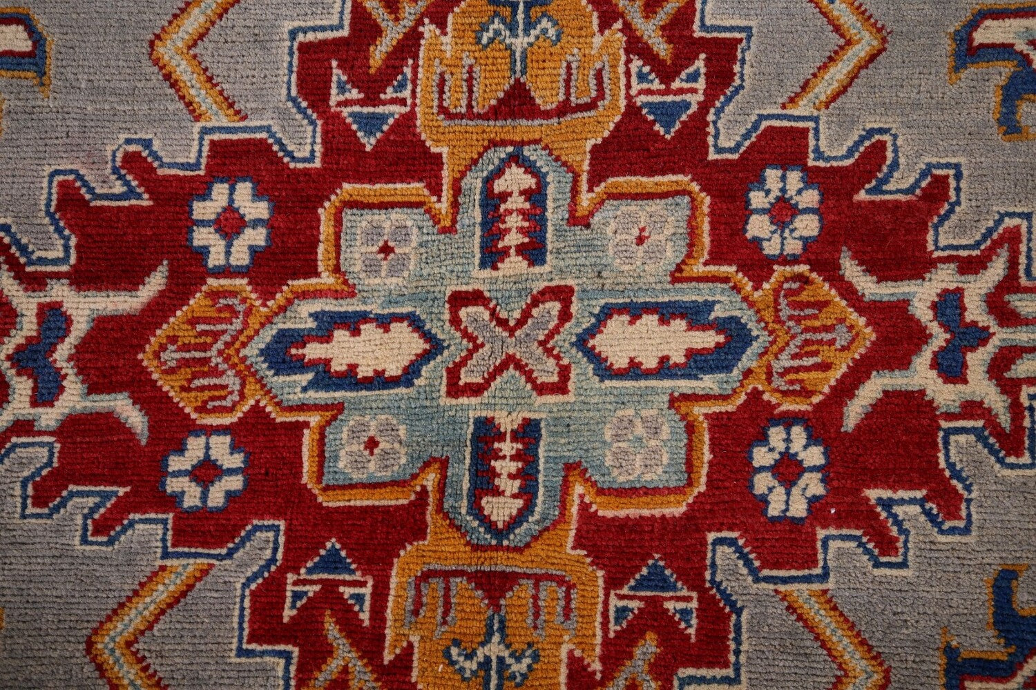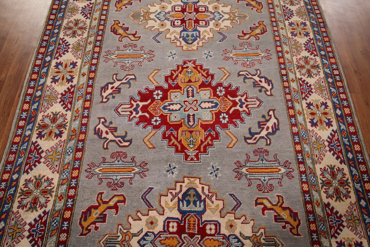 A Beautiful Genuine Pakistan Kazak rug is Hand Knotted by skillful weavers in Pakistan with 100% Wool Material. This rug is in New, First Quality condition. dimensions are 8' 4'' X 5' 10'' in foot and 254 X 178 in centimeter. the primary color is Greys & Charcoal.