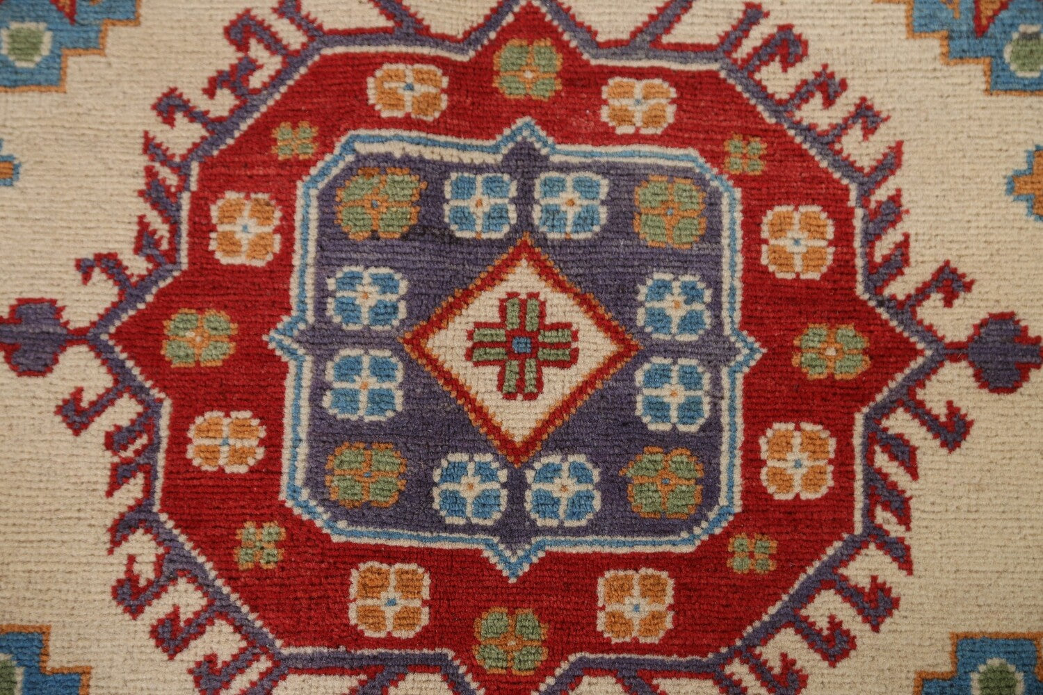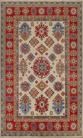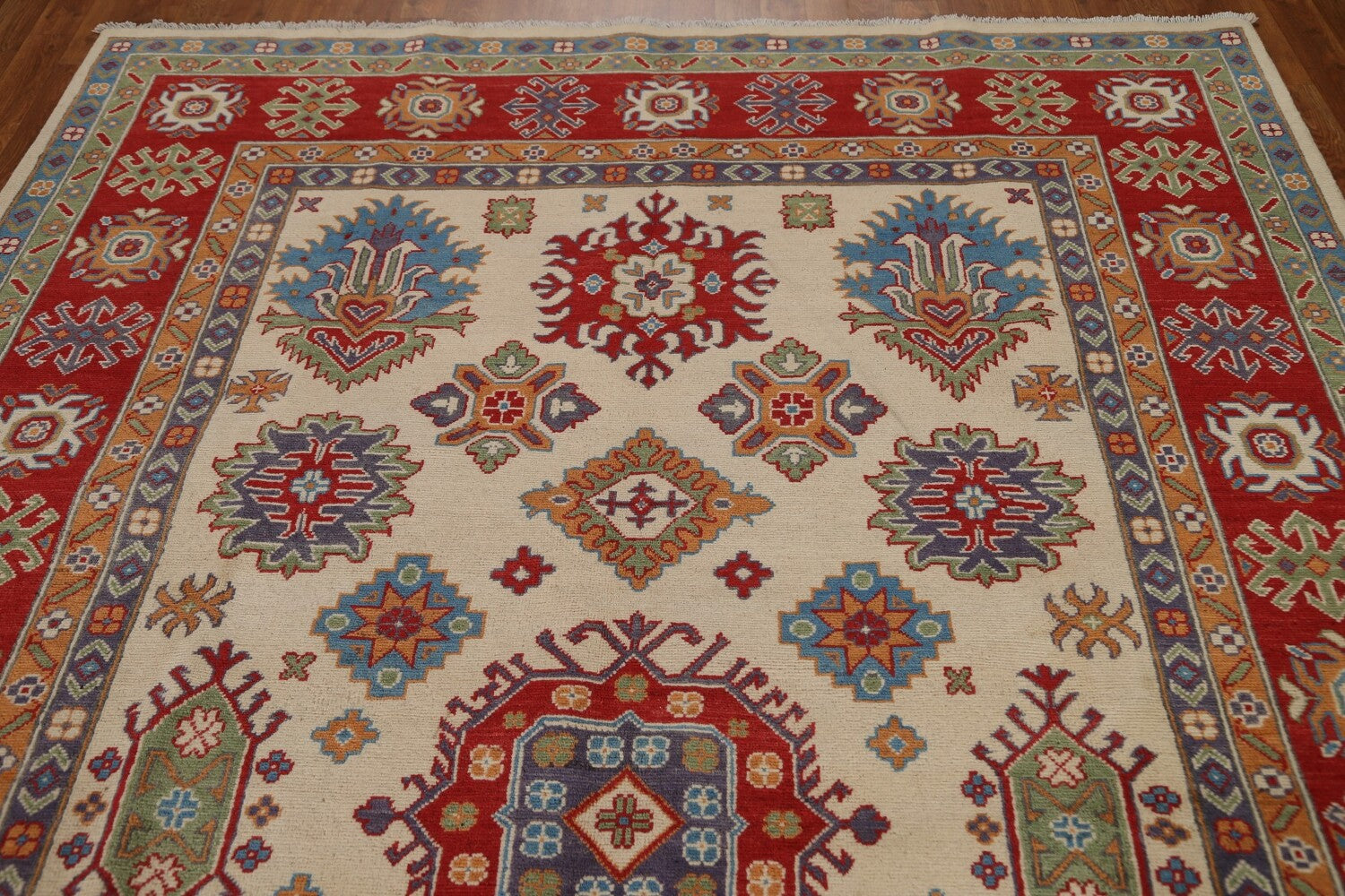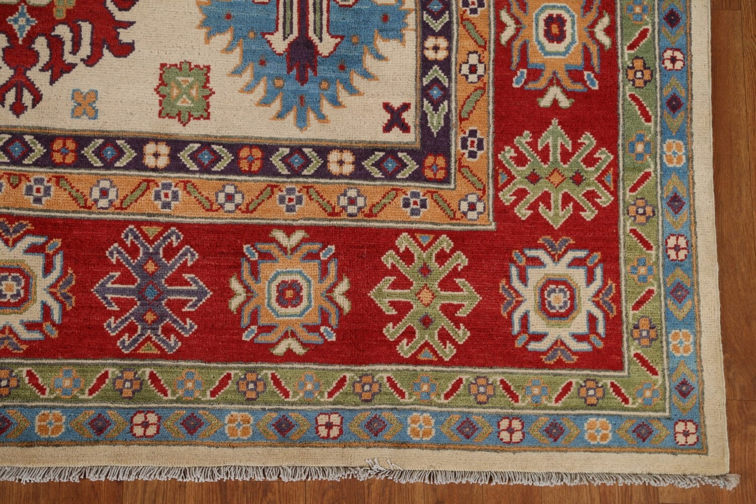 A Beautiful Genuine Pakistan Kazak rug is Hand Knotted by skillful weavers in Pakistan with 100% Wool Material. This rug is in New, First Quality condition. dimensions are 10' 0'' X 6' 9'' in foot and 305 X 206 in centimeter. the primary color is Beige & Ivories.
