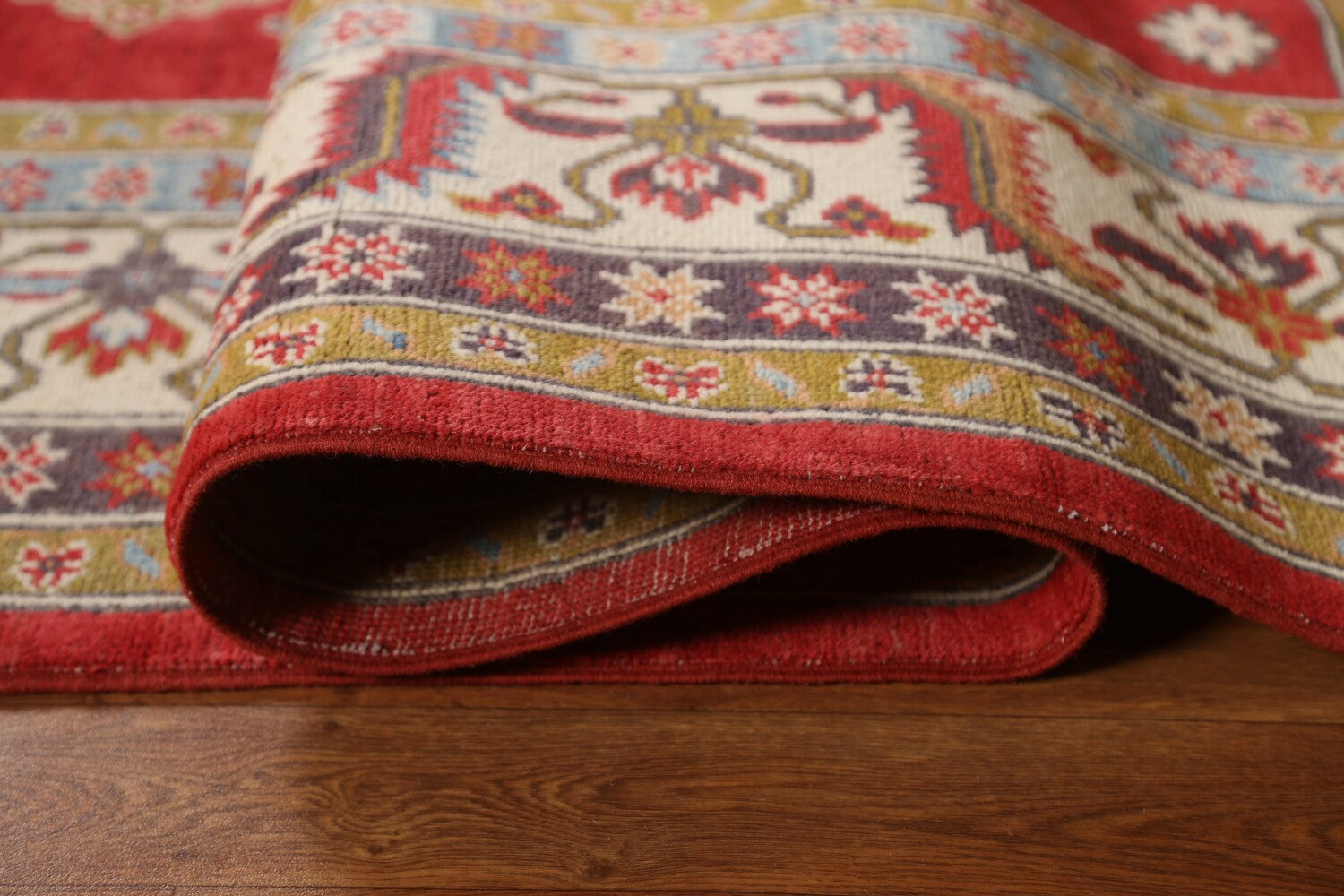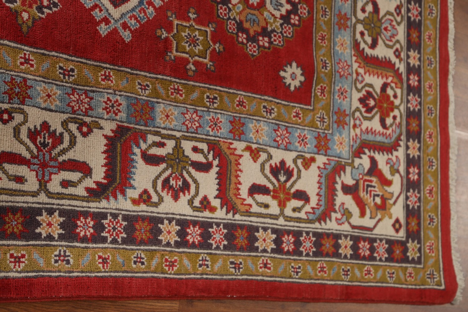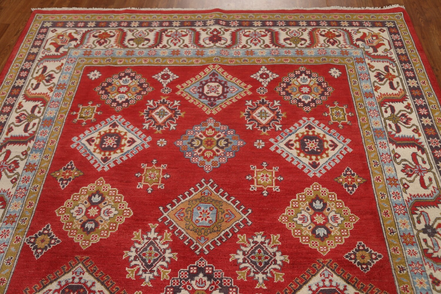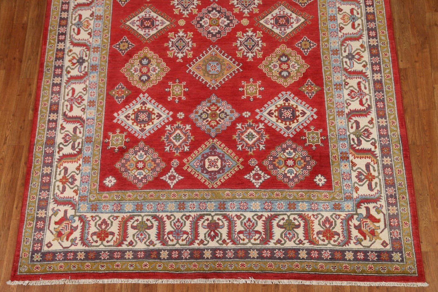 A Beautiful Genuine Pakistan Kazak rug is Hand Knotted by skillful weavers in Pakistan with 100% Wool Material. This rug is in condition. dimensions are 9' 7'' X 6' 6'' in foot and 292 X 198 in centimeter. the primary color is Red.
