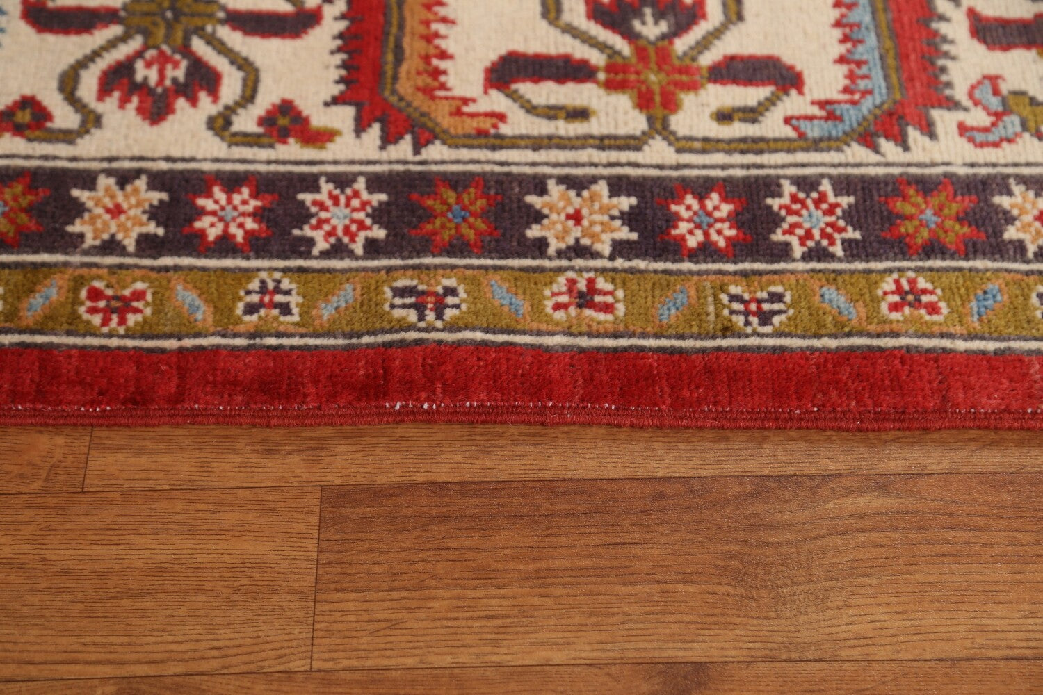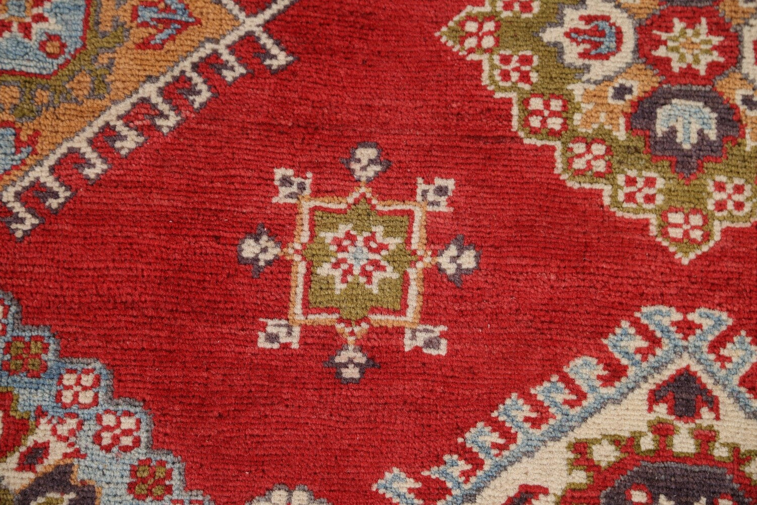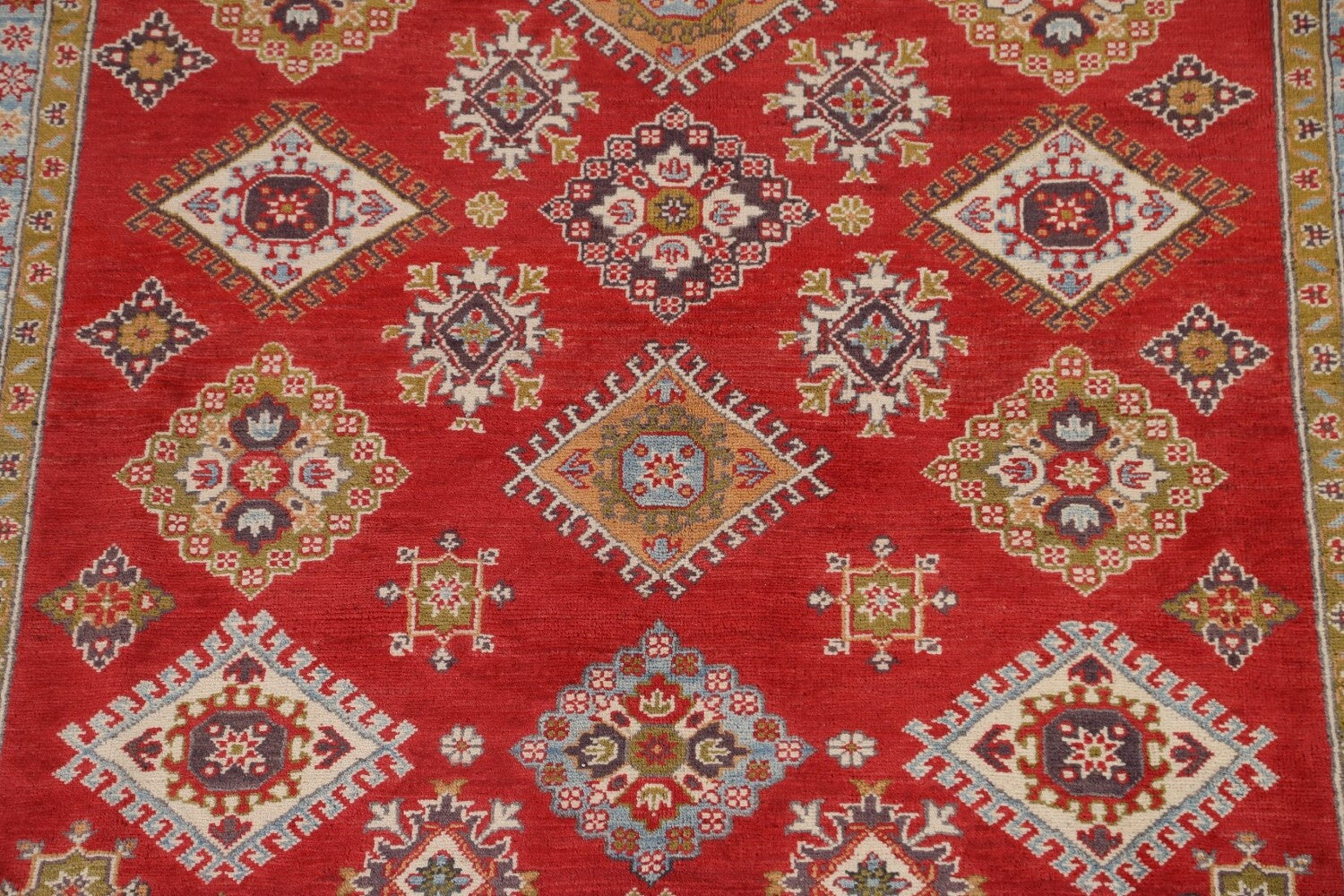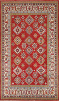 A Beautiful Genuine Pakistan Kazak rug is Hand Knotted by skillful weavers in Pakistan with 100% Wool Material. This rug is in condition. dimensions are 9' 7'' X 6' 6'' in foot and 292 X 198 in centimeter. the primary color is Red.