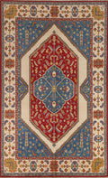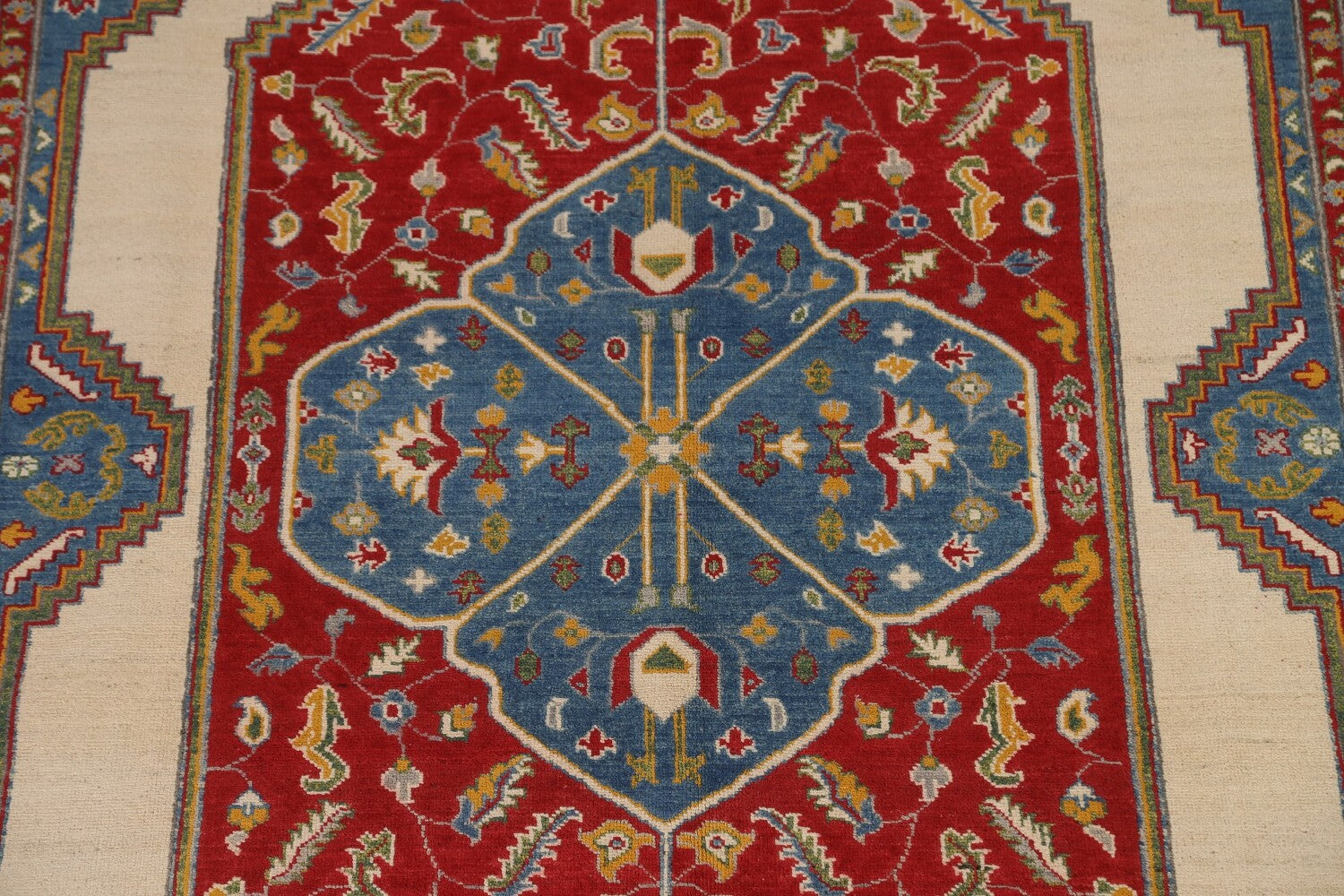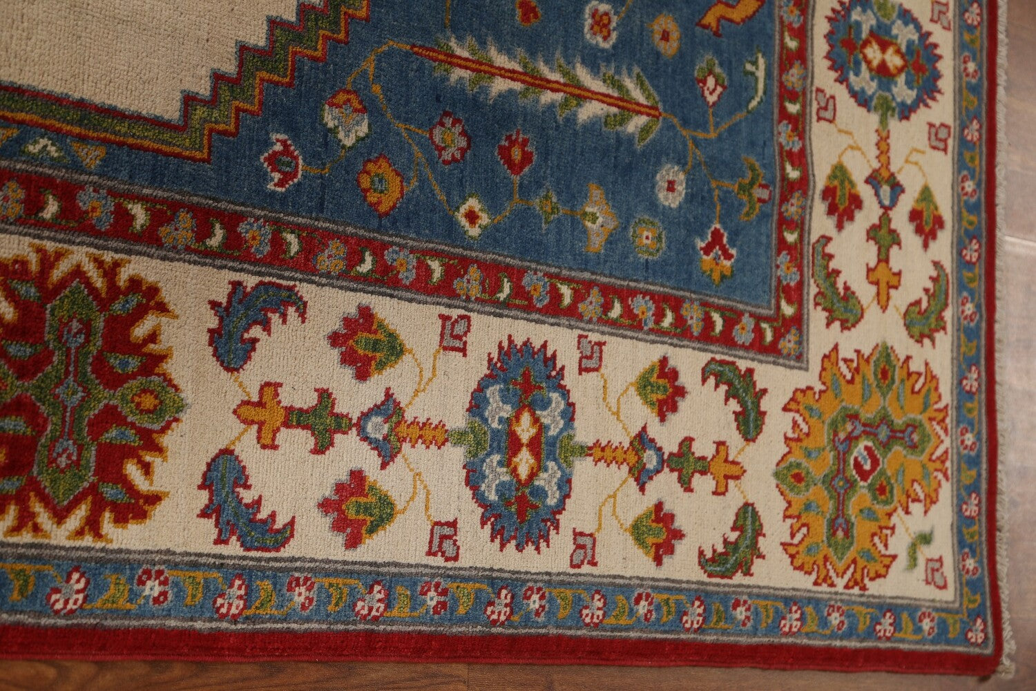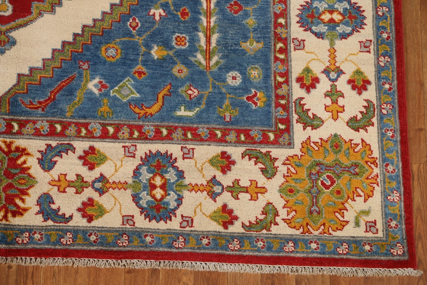 A Beautiful Genuine Pakistan Kazak rug is Hand Knotted by skillful weavers in Pakistan with 100% Wool Material. This rug is in New, First Quality condition. dimensions are 9' 8'' X 6' 8'' in foot and 295 X 203 in centimeter. the primary color is Beige & Ivories.