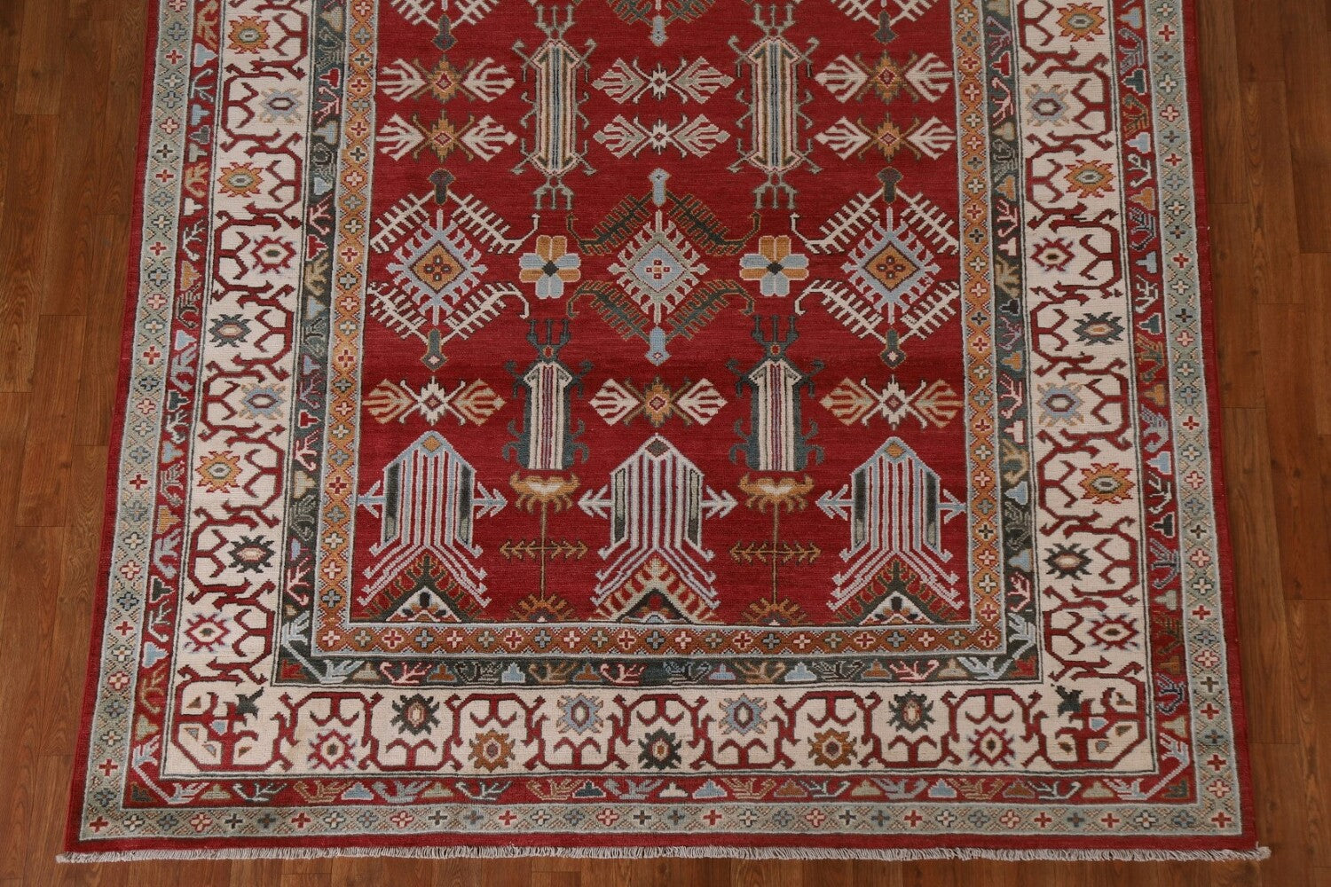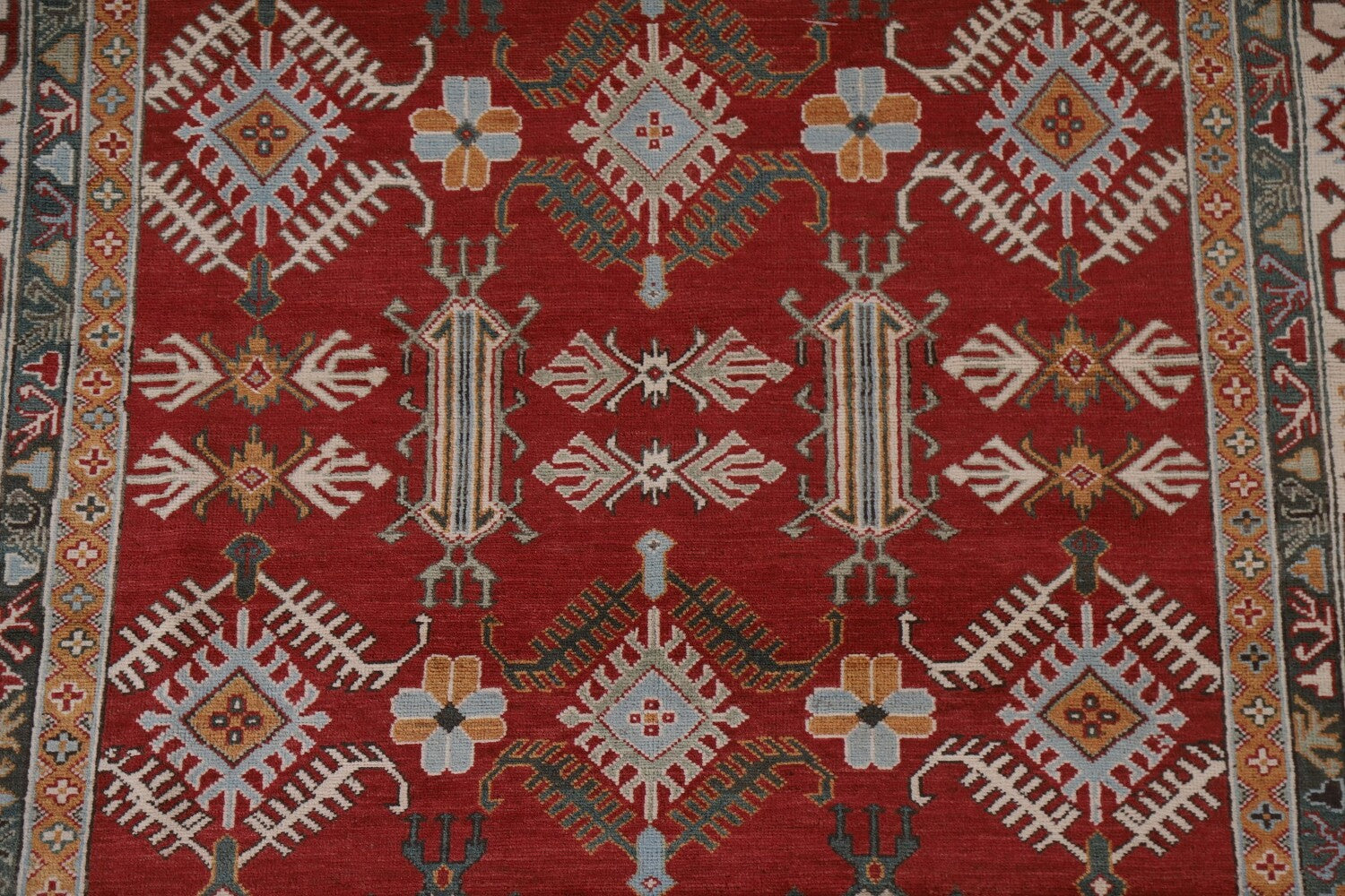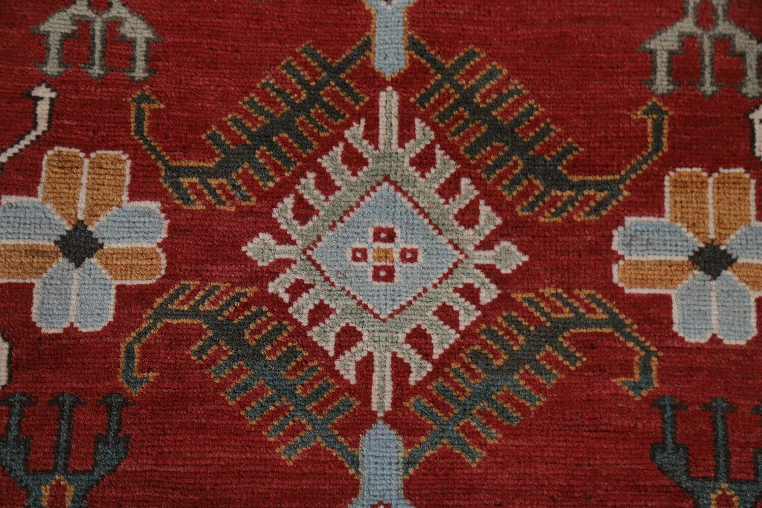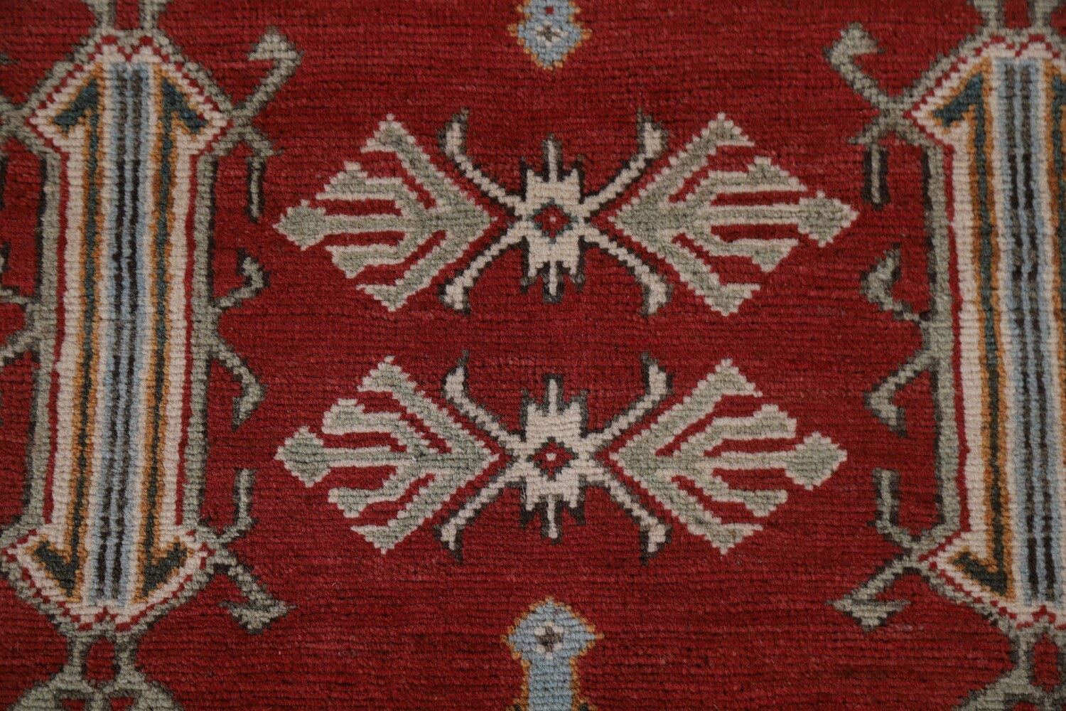 A Beautiful Genuine Pakistan Kazak rug is Hand Knotted by skillful weavers in Pakistan with 100% Wool Material. This rug is in condition. dimensions are 9' 6'' X 6' 6'' in foot and 290 X 198 in centimeter. the primary color is Red.