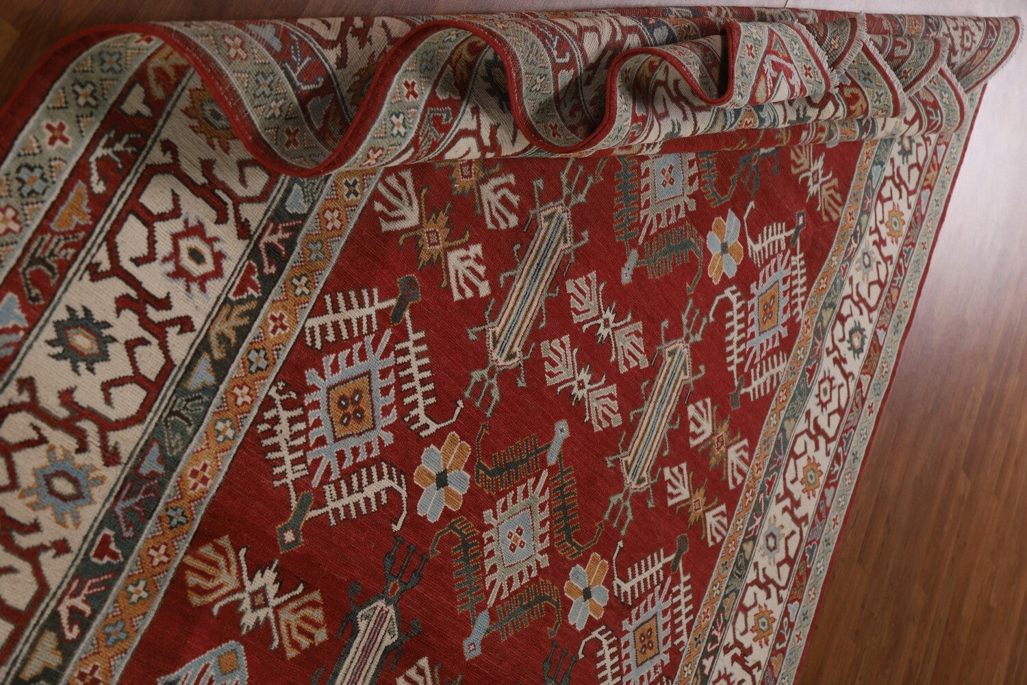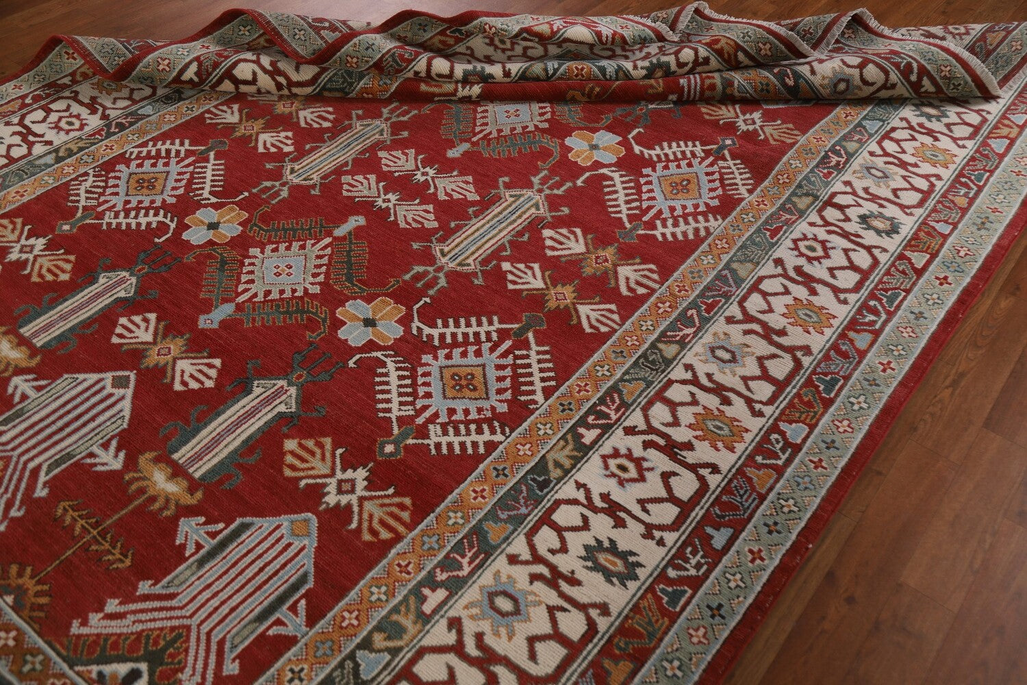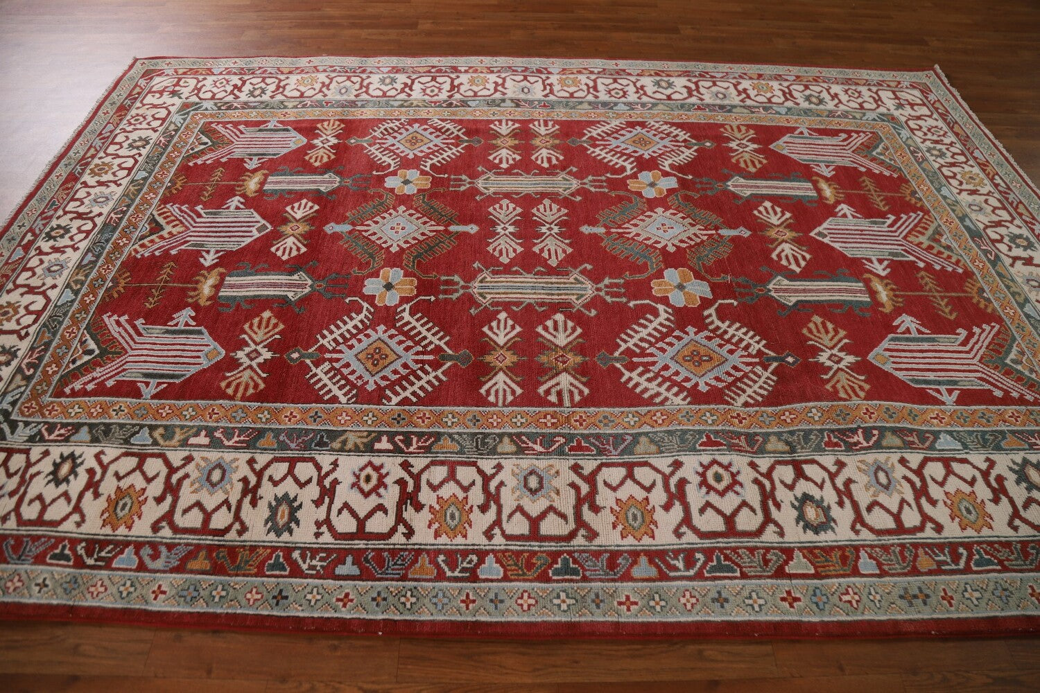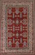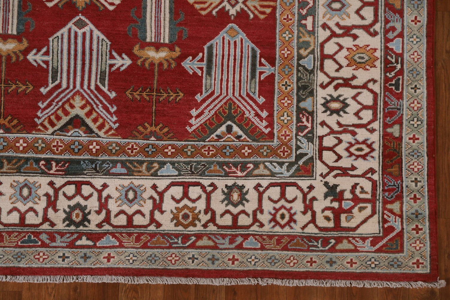 A Beautiful Genuine Pakistan Kazak rug is Hand Knotted by skillful weavers in Pakistan with 100% Wool Material. This rug is in condition. dimensions are 9' 6'' X 6' 6'' in foot and 290 X 198 in centimeter. the primary color is Red.
