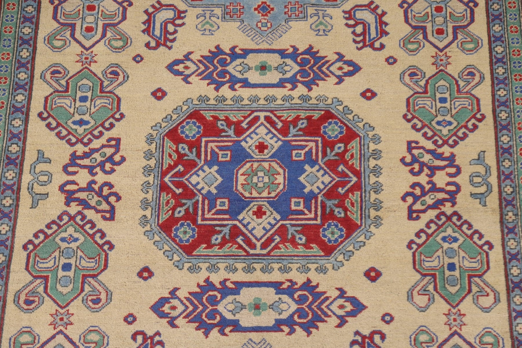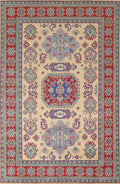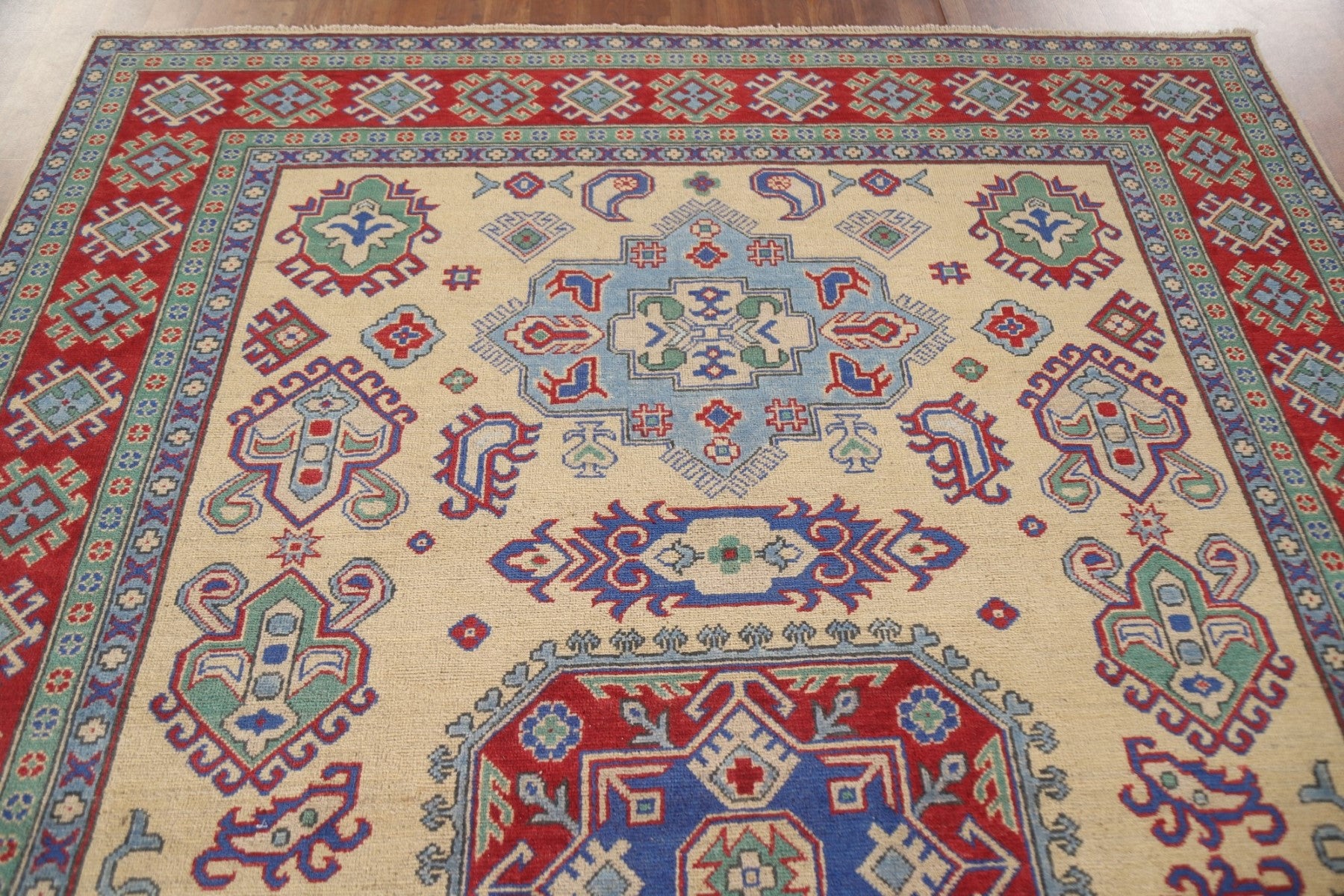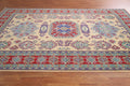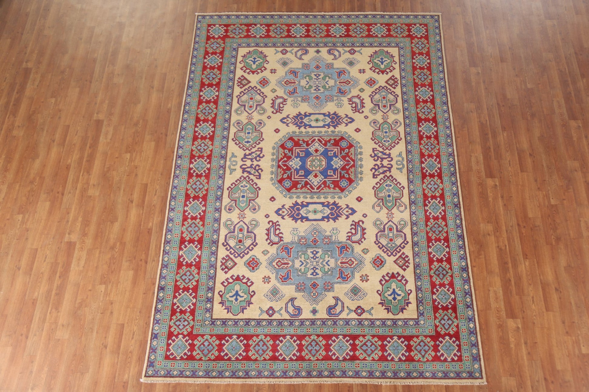 A Beautiful Genuine Pakistan Kazak rug is Hand Knotted by skillful weavers in Pakistan with 100% Wool Material. This rug is in New, First Quality condition. dimensions are 9' 9'' X 6' 8'' in foot and 297 X 203 in centimeter. the primary color is Peach.