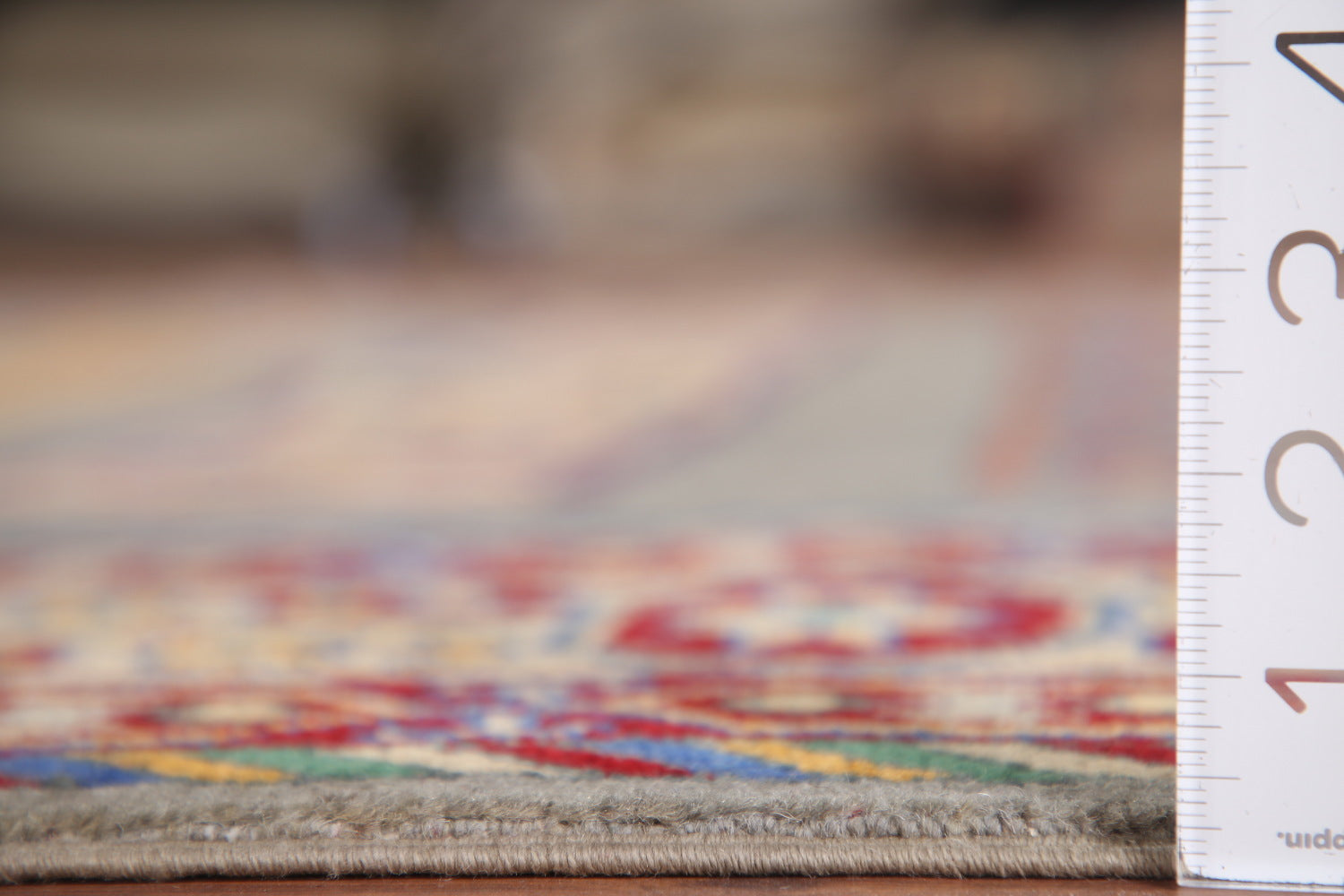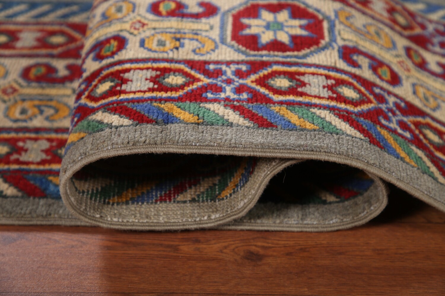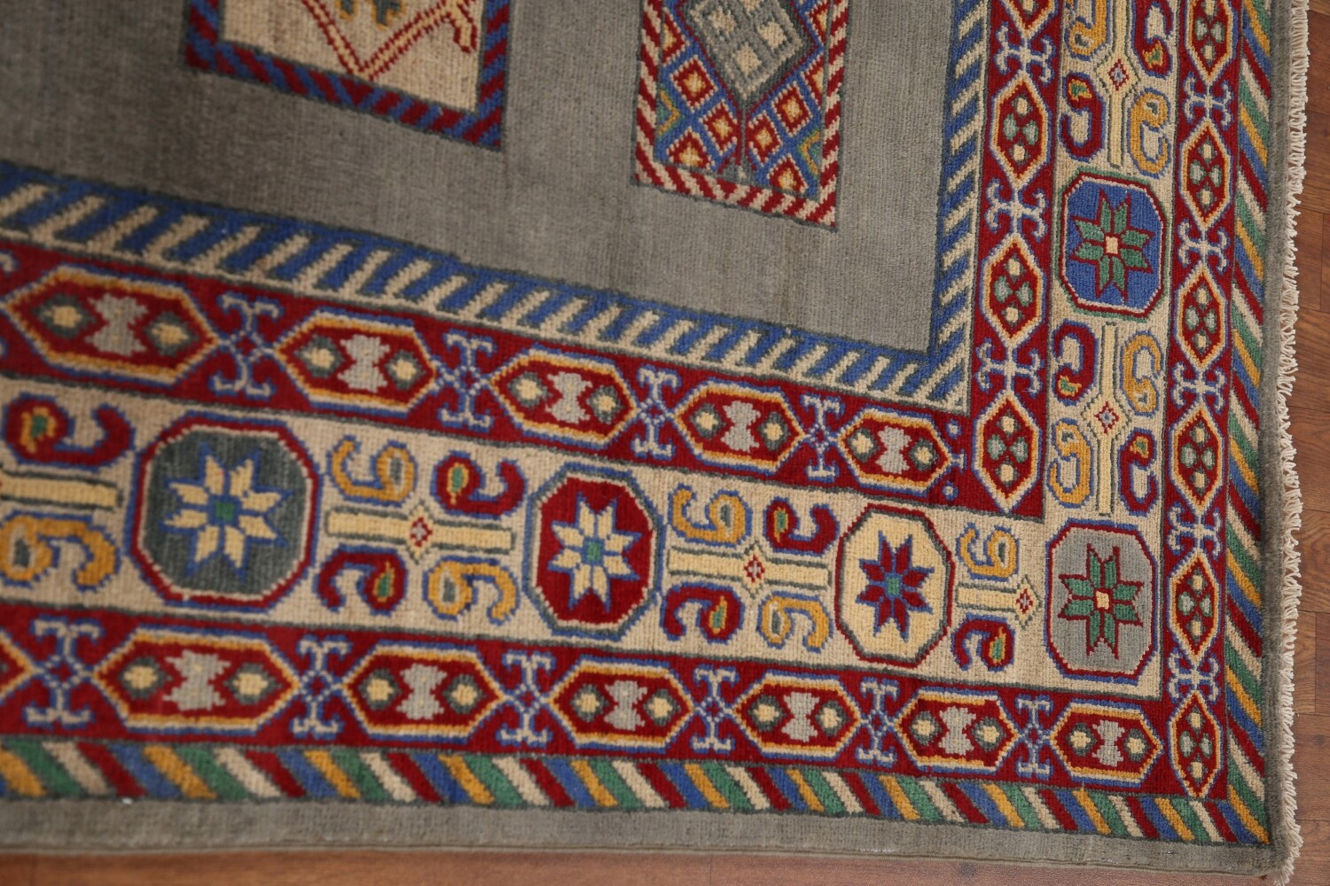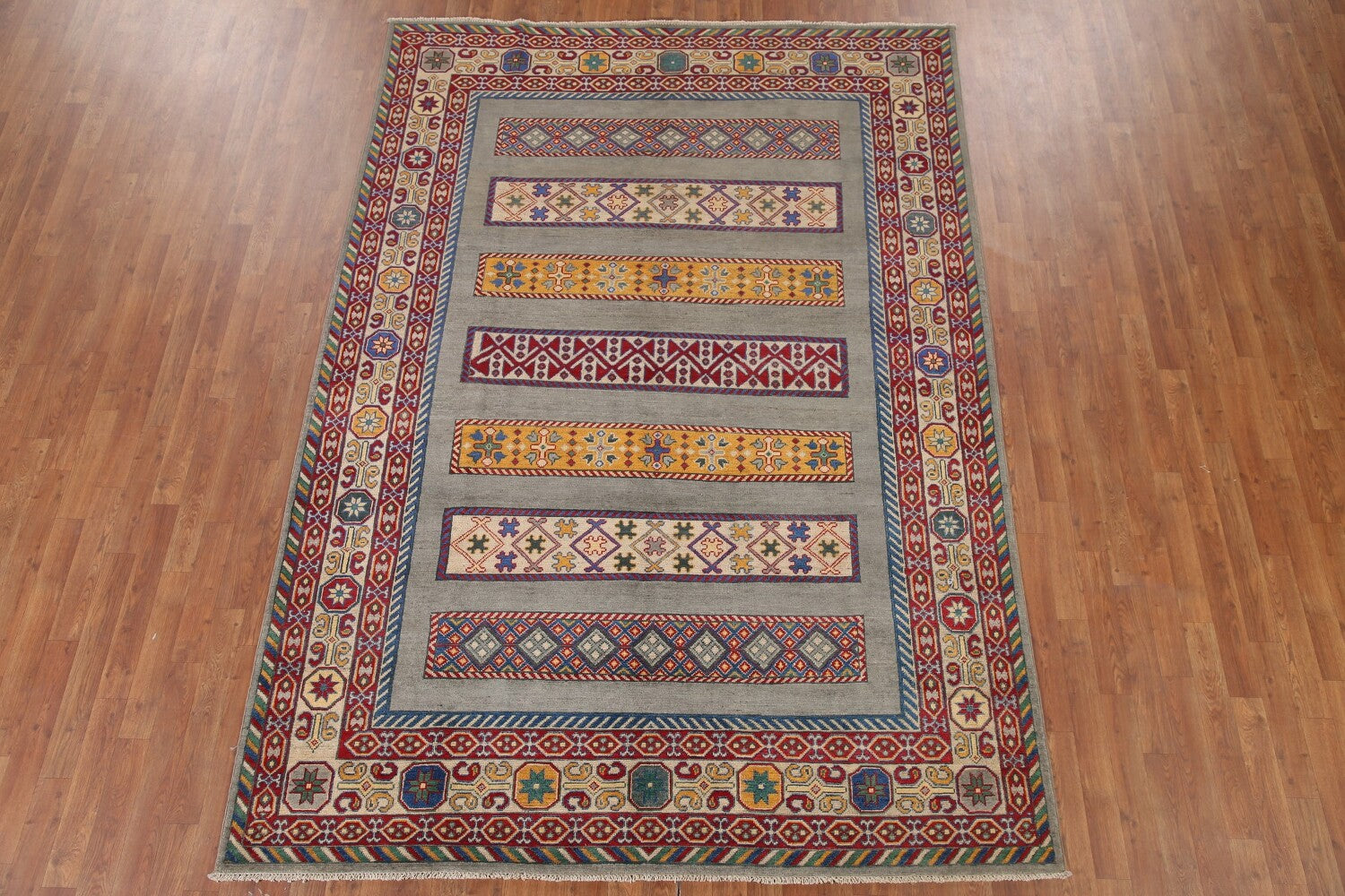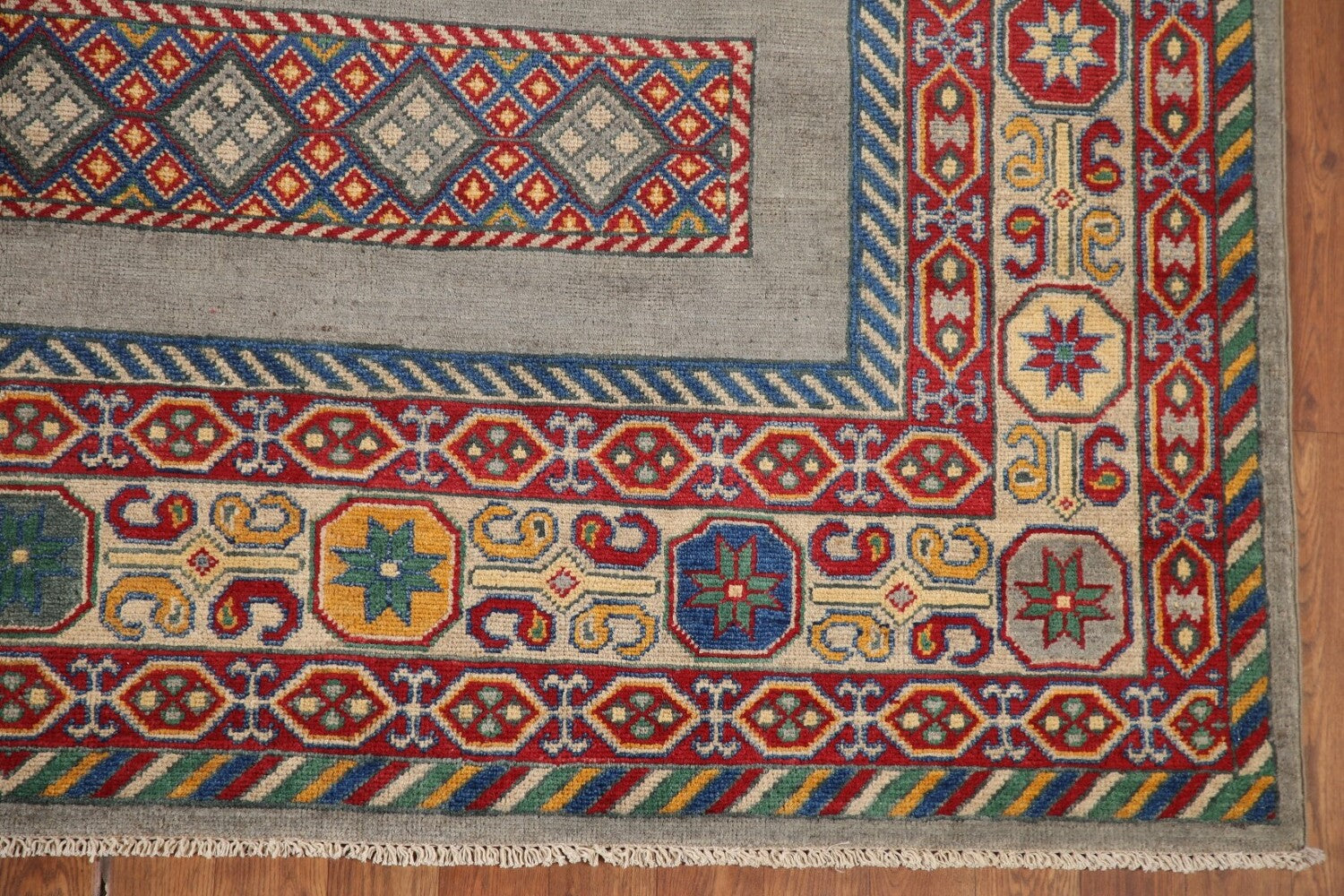 A Beautiful Genuine Pakistan Kazak rug is Hand Knotted by skillful weavers in Pakistan with 100% Wool Material. This rug is in New, First Quality condition. dimensions are 9' 7'' X 6' 8'' in foot and 292 X 203 in centimeter. the primary color is Multi-Colored.