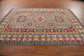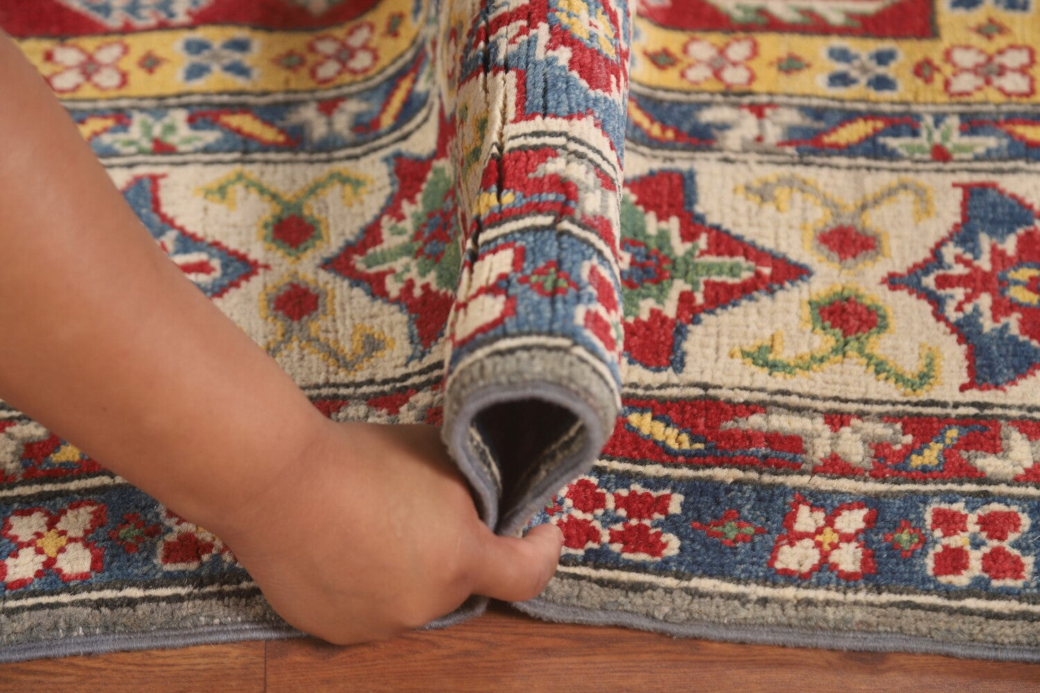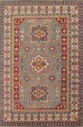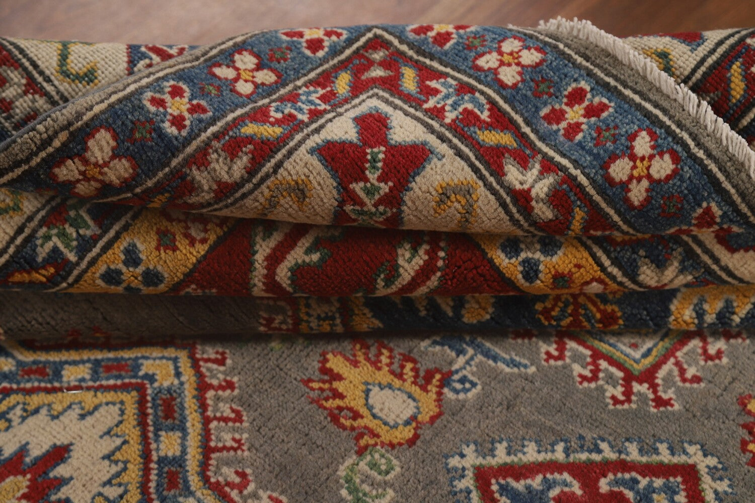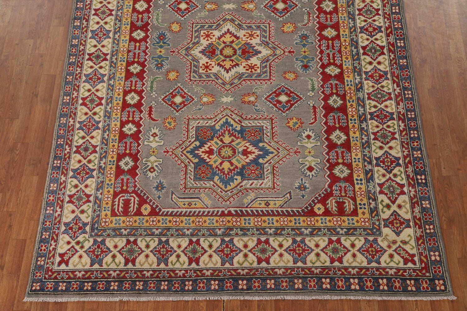 A Beautiful Genuine Pakistan Kazak rug is Hand Knotted by skillful weavers in Pakistan with 100% Wool Material. This rug is in New, First Quality condition. dimensions are 9' 7'' X 6' 8'' in foot and 292 X 203 in centimeter. the primary color is Greys & Charcoal.