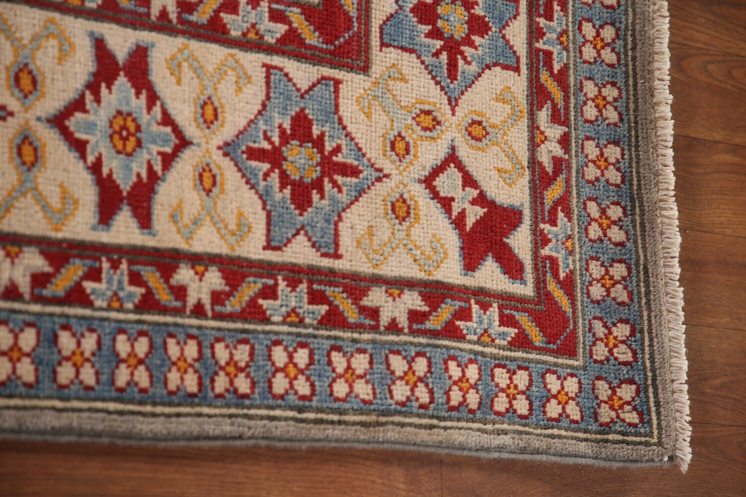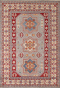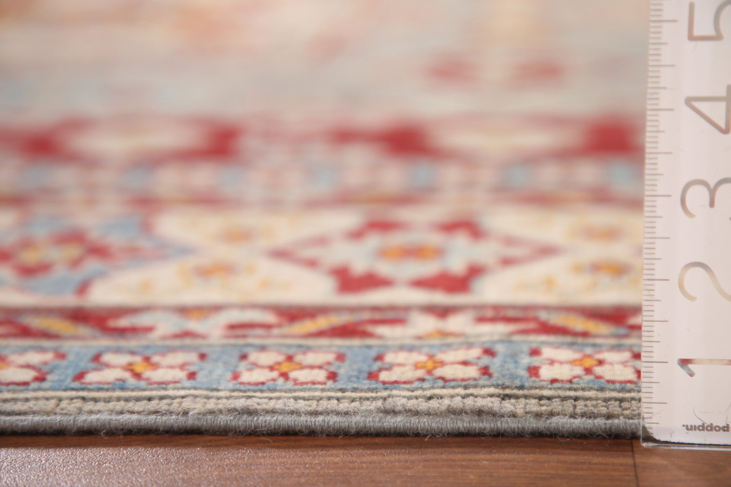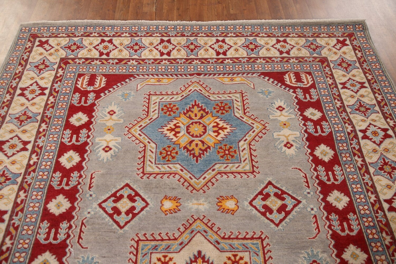 A Beautiful Genuine Pakistan Kazak rug is Hand Knotted by skillful weavers in Pakistan with 100% Wool Material. This rug is in New, First Quality condition. dimensions are 9' 8'' X 6' 9'' in foot and 295 X 206 in centimeter. the primary color is Greys & Charcoal.