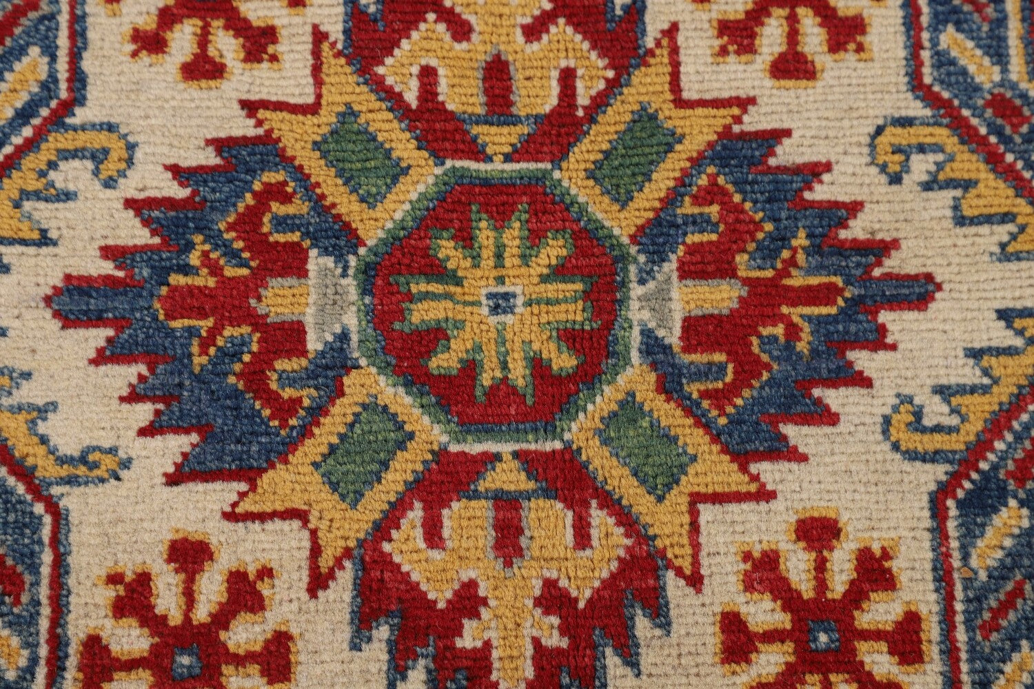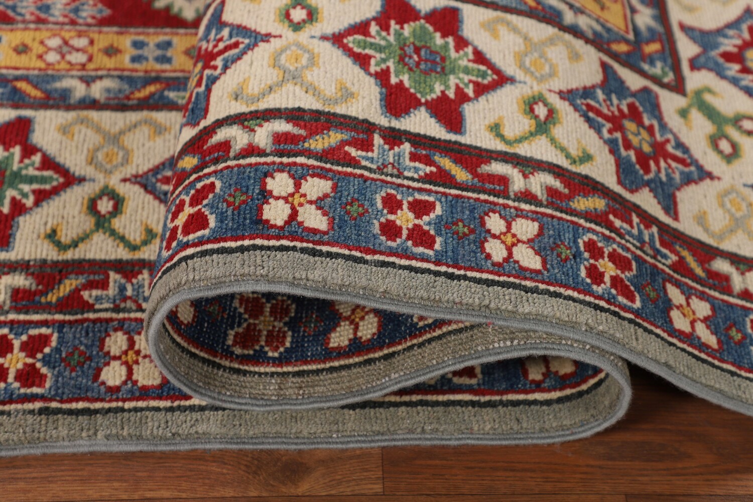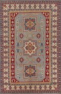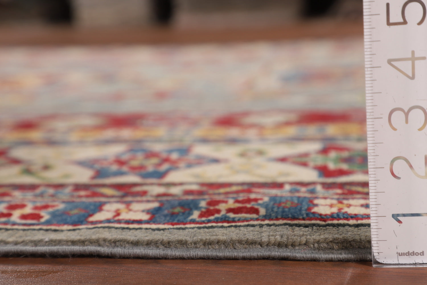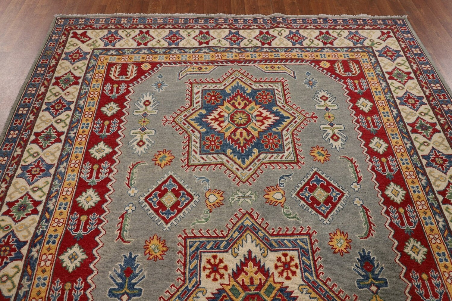 A Beautiful Genuine Pakistan Kazak rug is Hand Knotted by skillful weavers in Pakistan with 100% Wool Material. This rug is in New, First Quality condition. dimensions are 10' 3'' X 6' 10'' in foot and 312 X 208 in centimeter. the primary color is Greys & Charcoal.