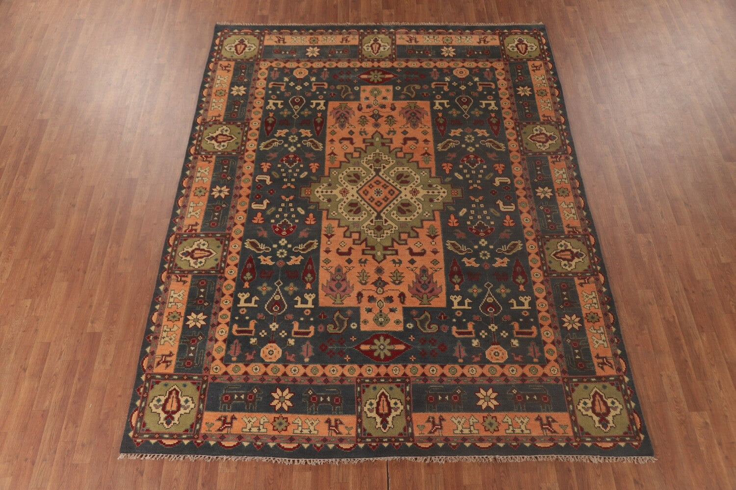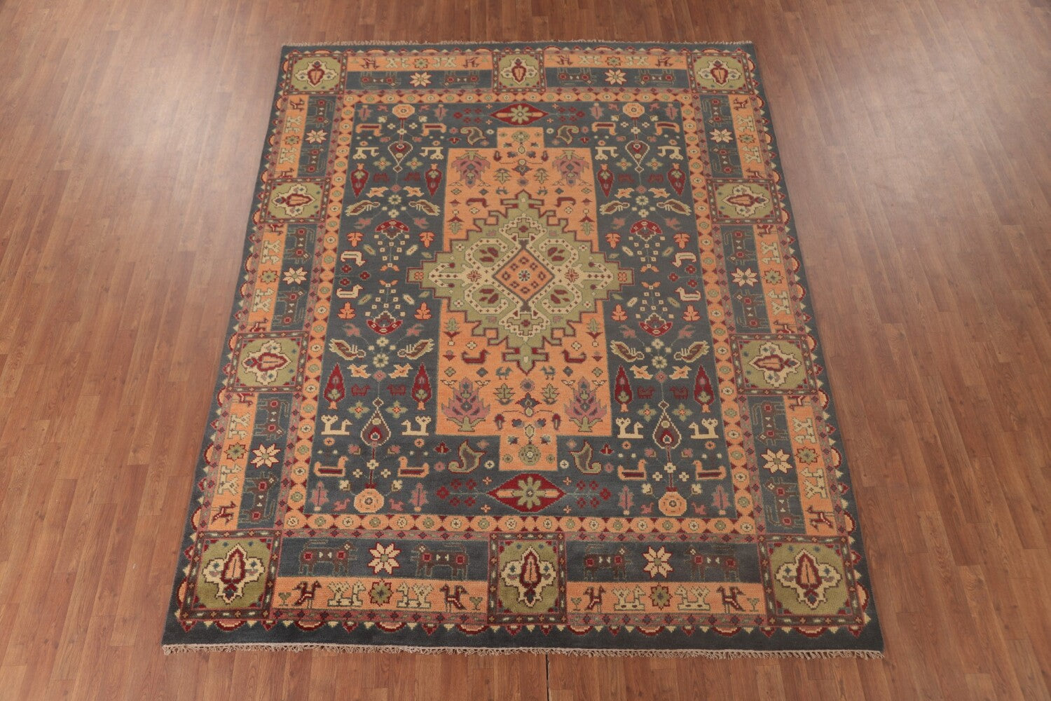 A Beautiful Genuine India Kazak rug is Hand Knotted by skillful weavers in India with 100% Wool Material. This rug is in New, First Quality condition. dimensions are 9' 9'' X 7' 9'' in foot and 297 X 236 in centimeter. the primary color is Greys & Charcoal.