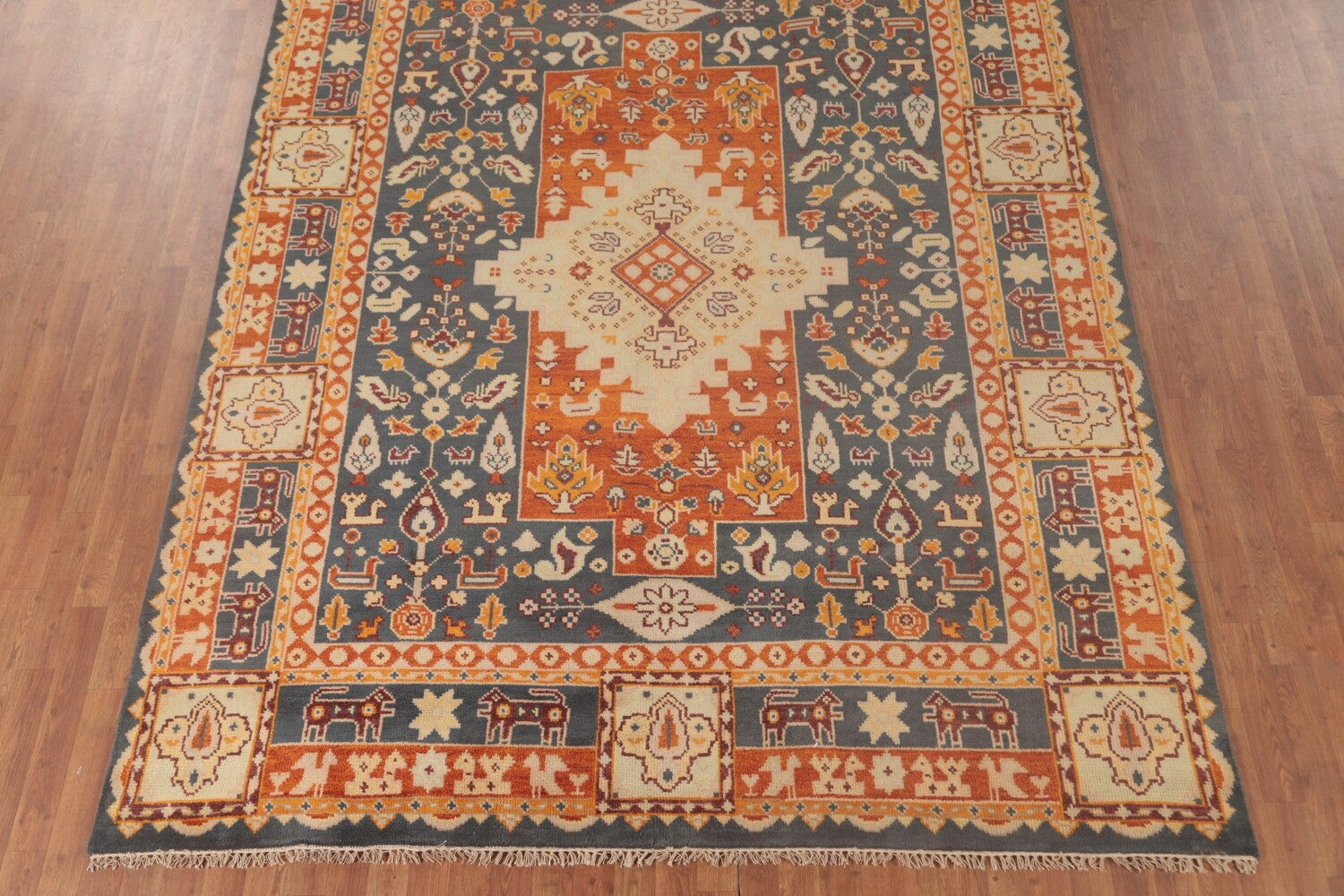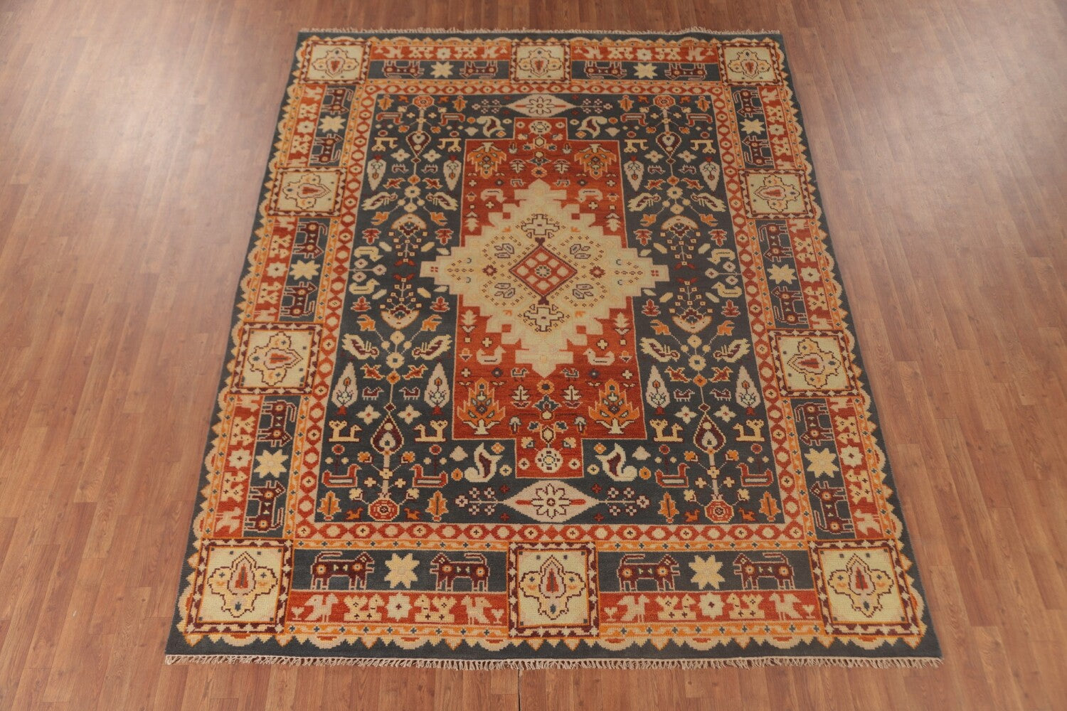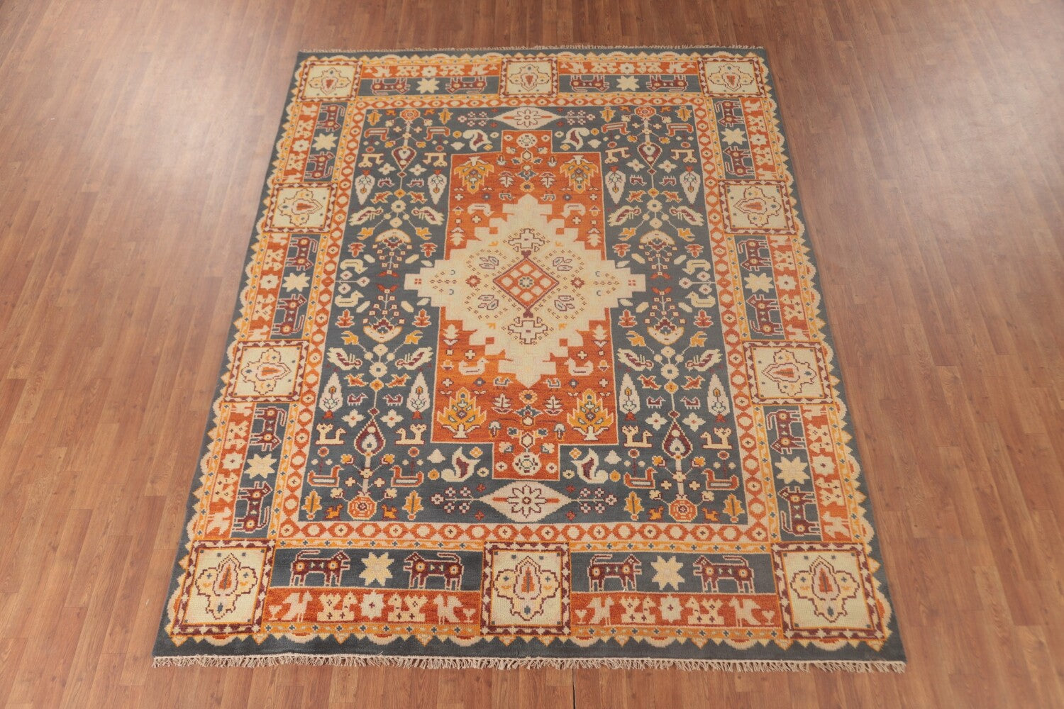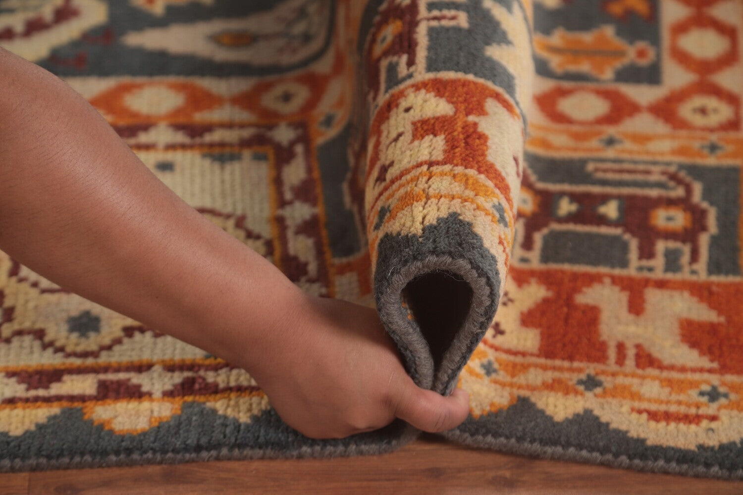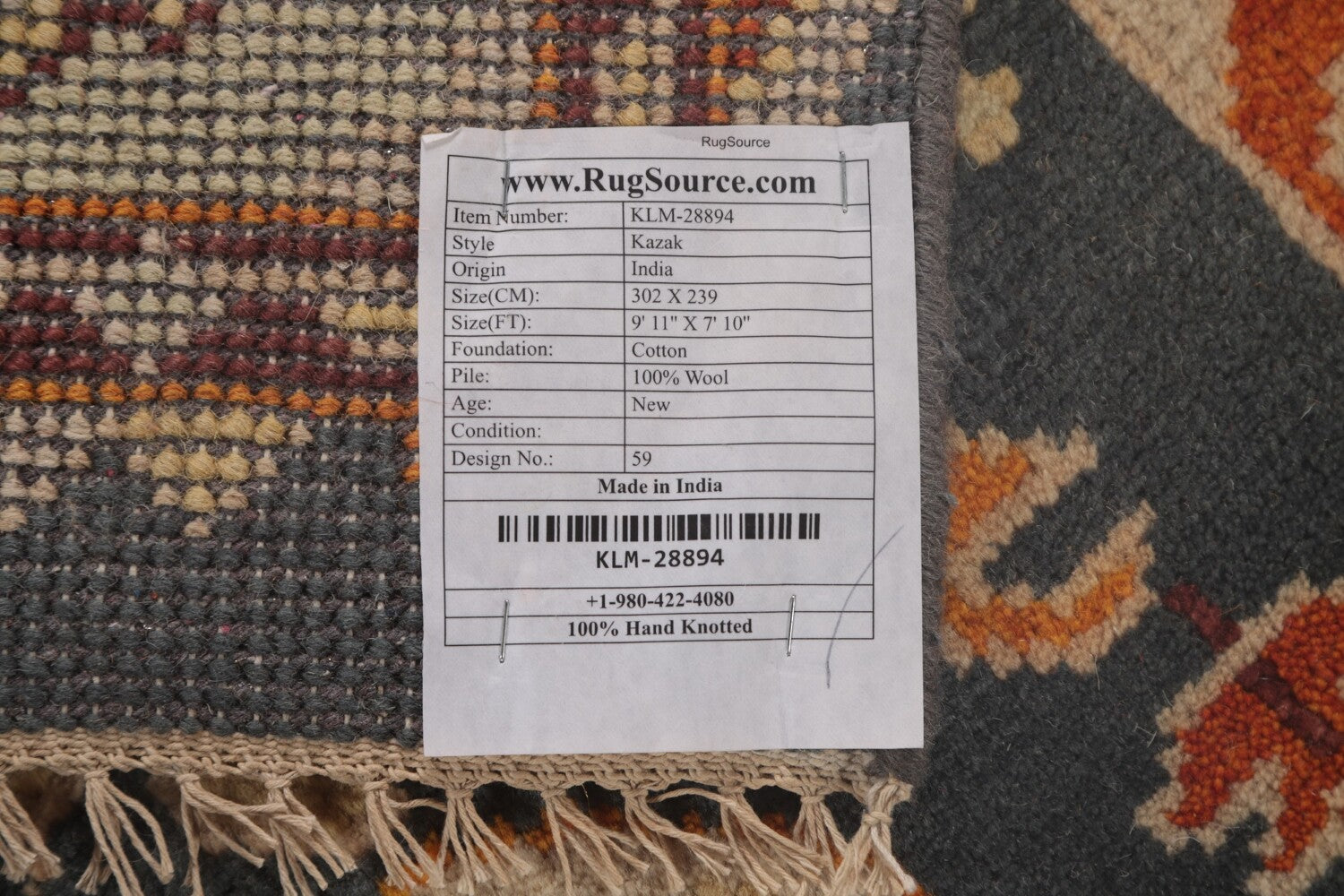 A Beautiful Genuine India Kazak rug is Hand Knotted by skillful weavers in India with 100% Wool Material. This rug is in New, First Quality condition. dimensions are 9' 11'' X 7' 10'' in foot and 302 X 239 in centimeter. the primary color is Greys & Charcoal.