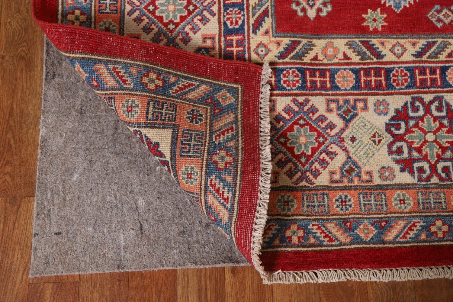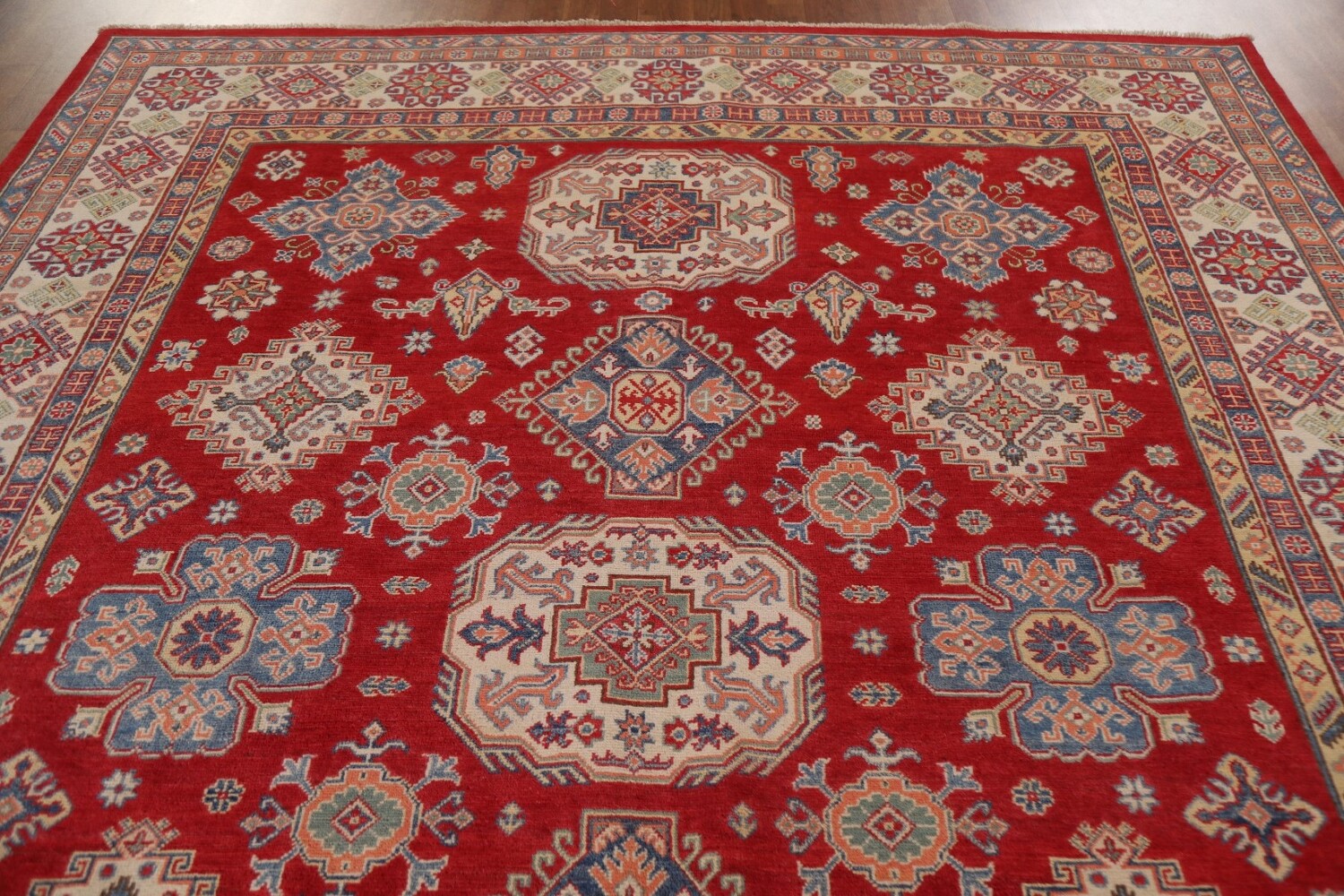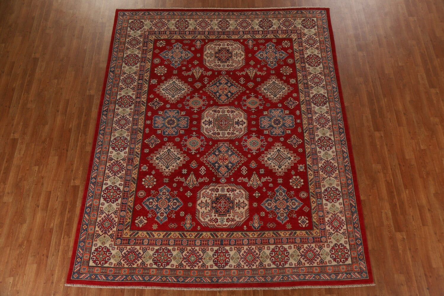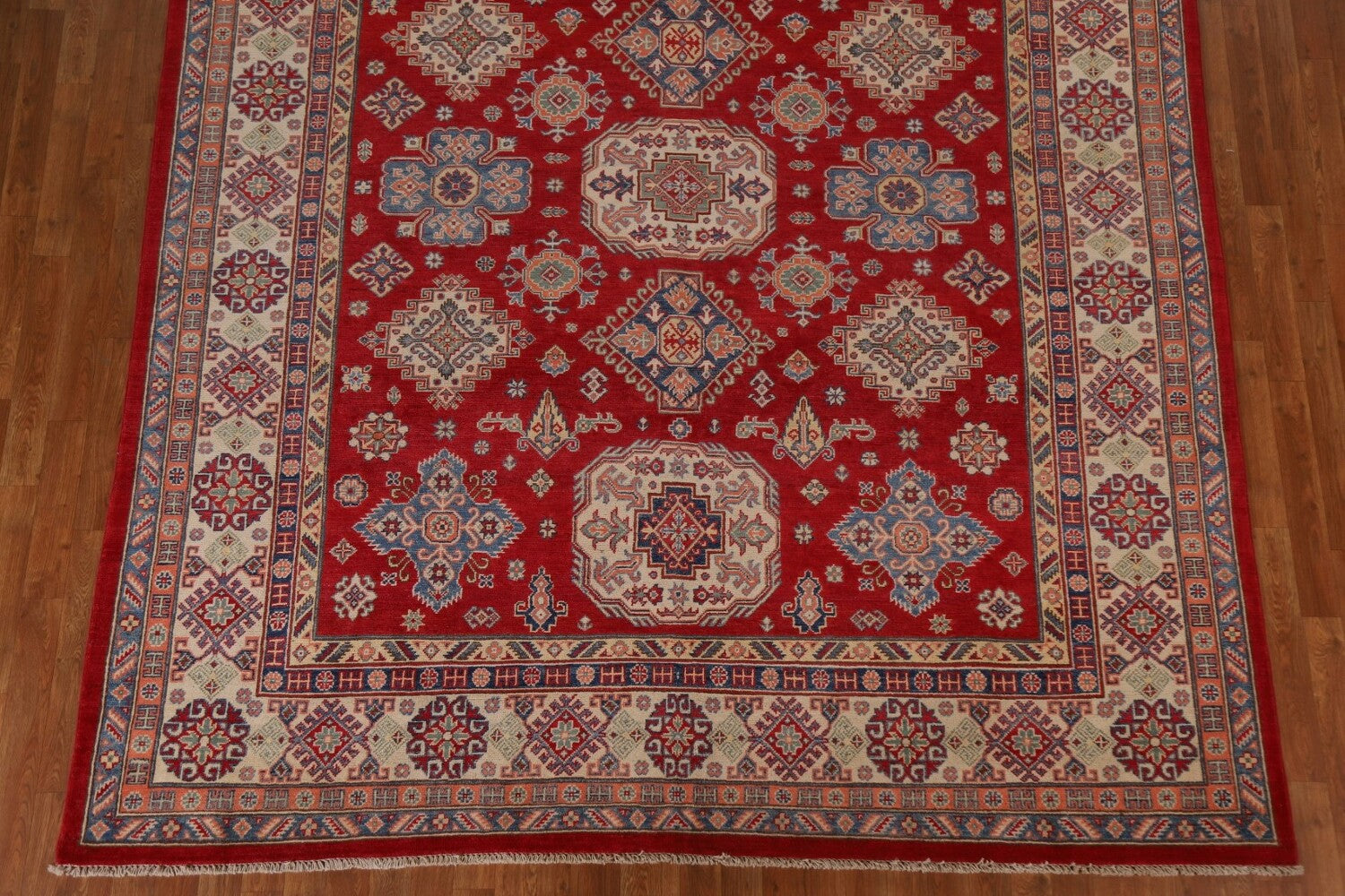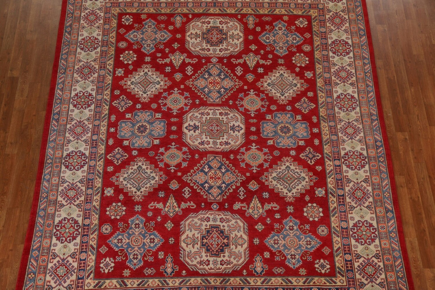 A Beautiful Genuine Pakistan Kazak rug is Hand Knotted by skillful weavers in Pakistan with 100% Wool Material. This rug is in condition. dimensions are 10' 1'' X 8' 2'' in foot and 307 X 249 in centimeter. the primary color is Red.