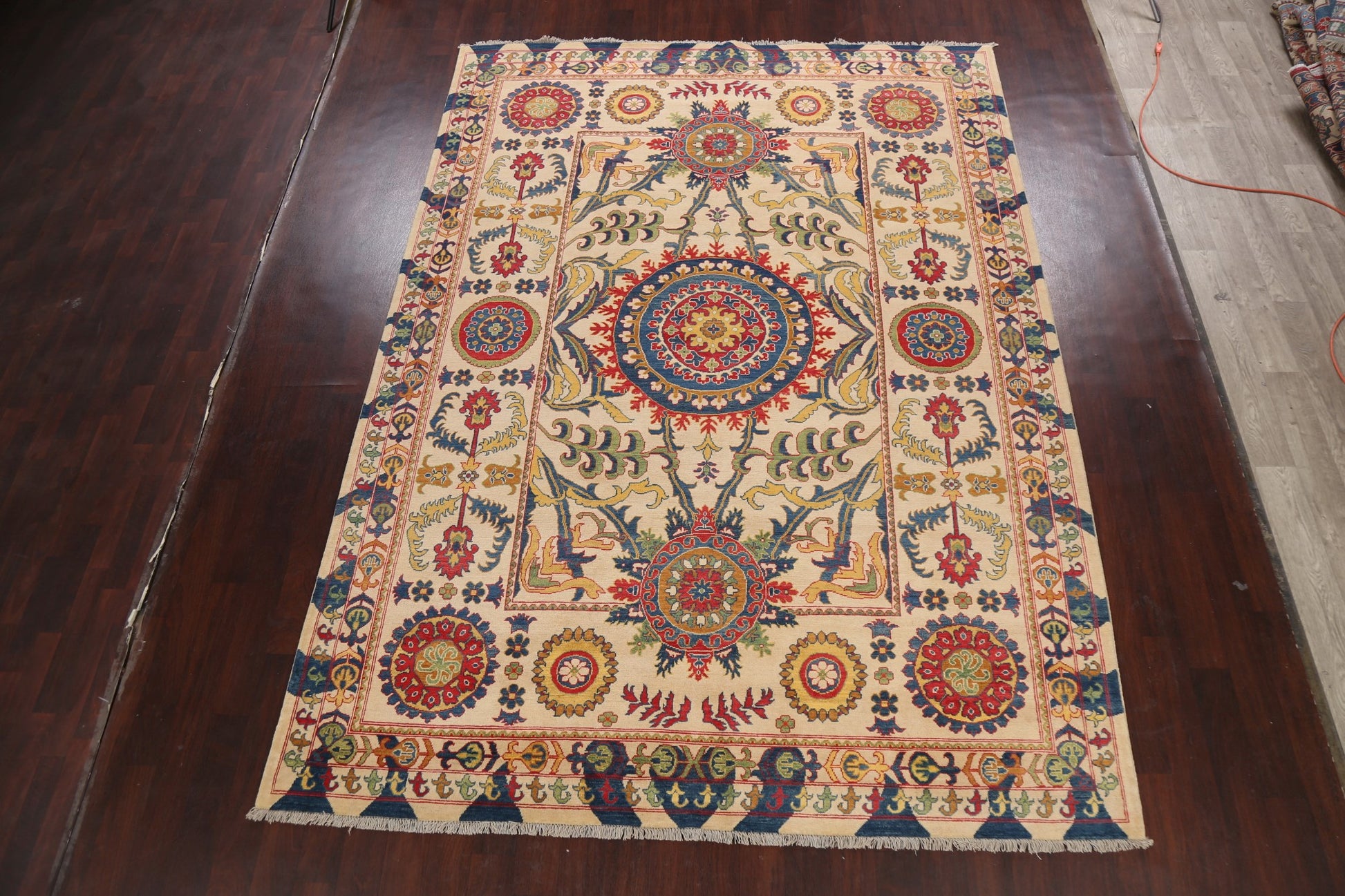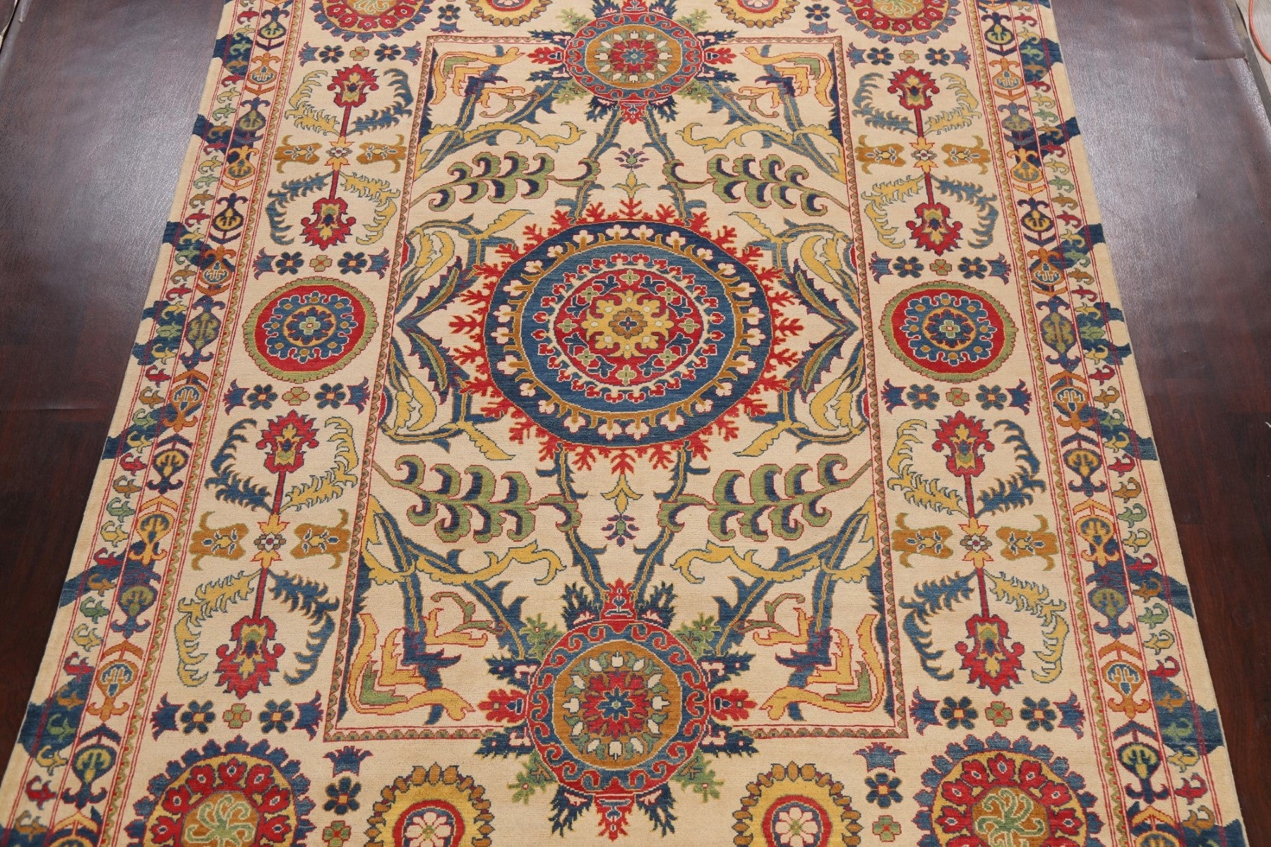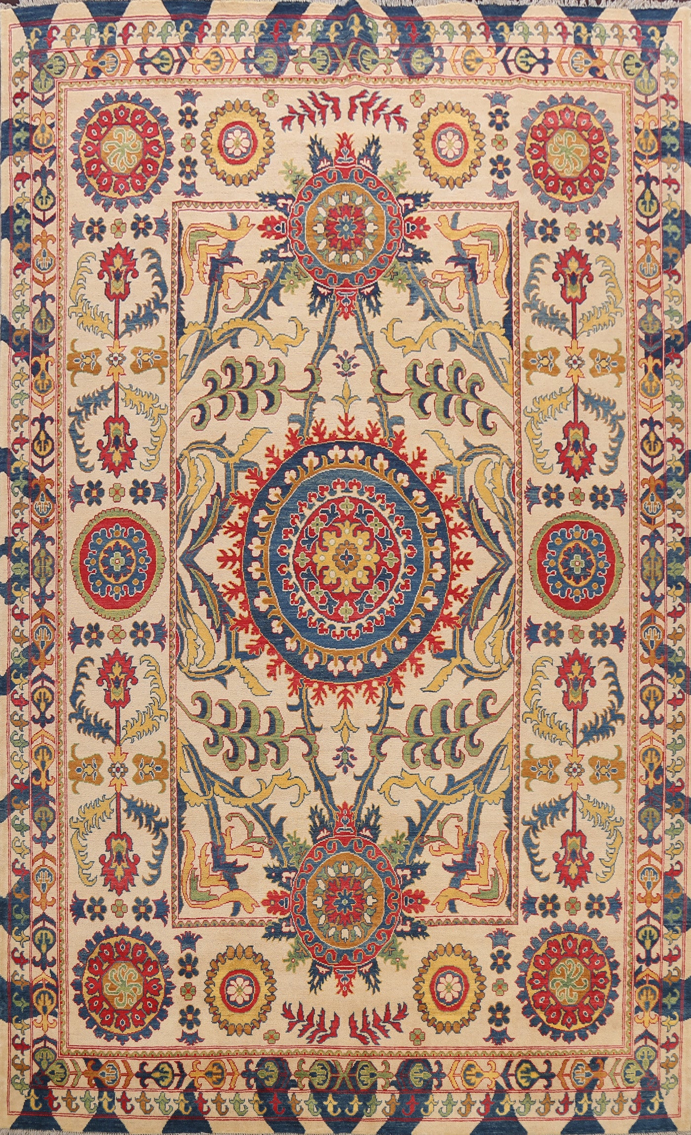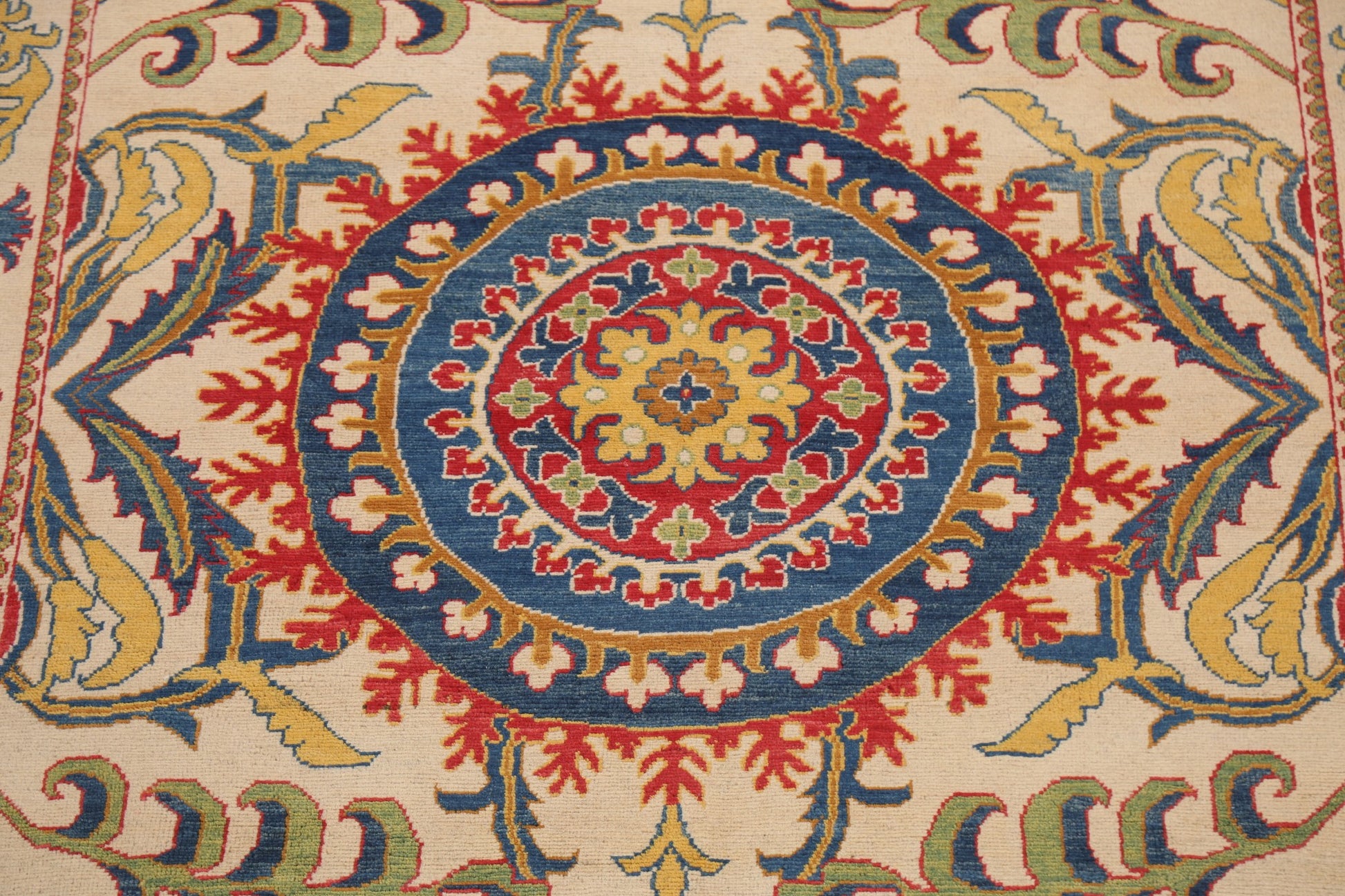 A Beautiful Genuine Pakistan Kazak rug is Hand Knotted by skillful weavers in Pakistan with 100% Wool Material. This rug is in New, First Quality condition. dimensions are 11' 6'' X 8' 4'' in foot and 351 X 254 in centimeter. the primary color is Beige & Ivories.