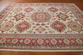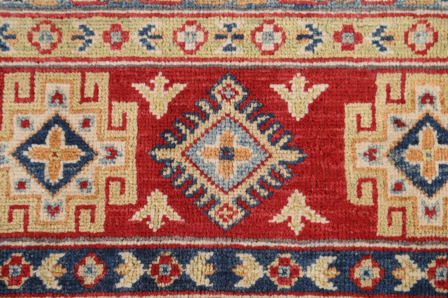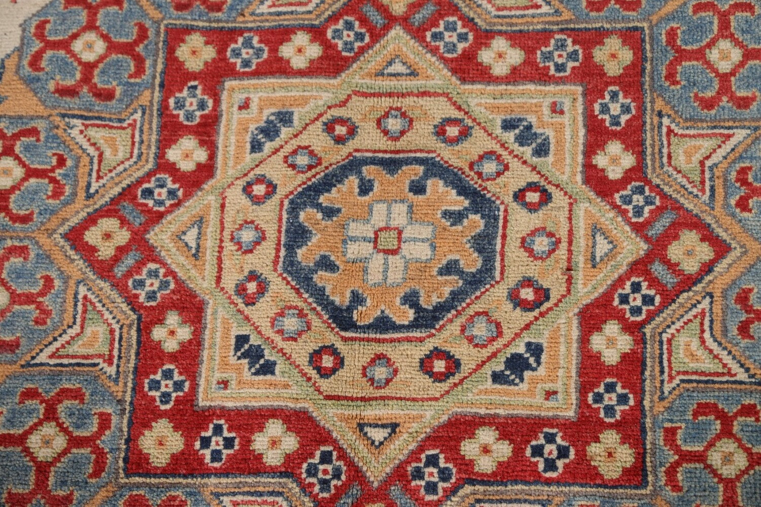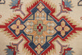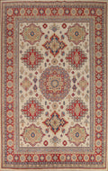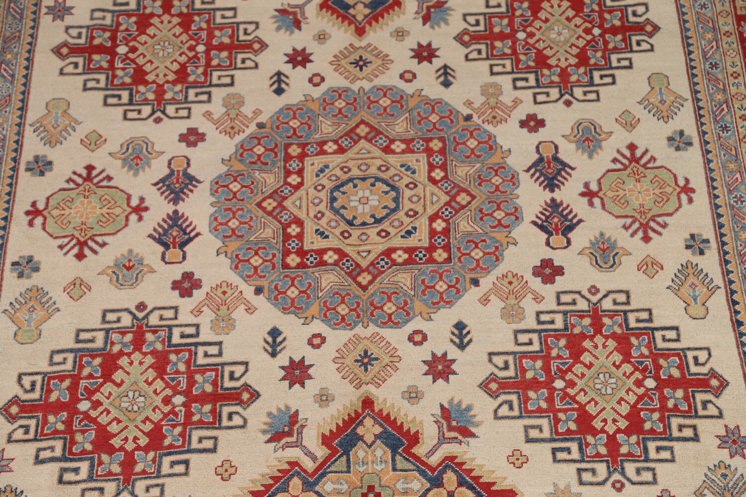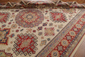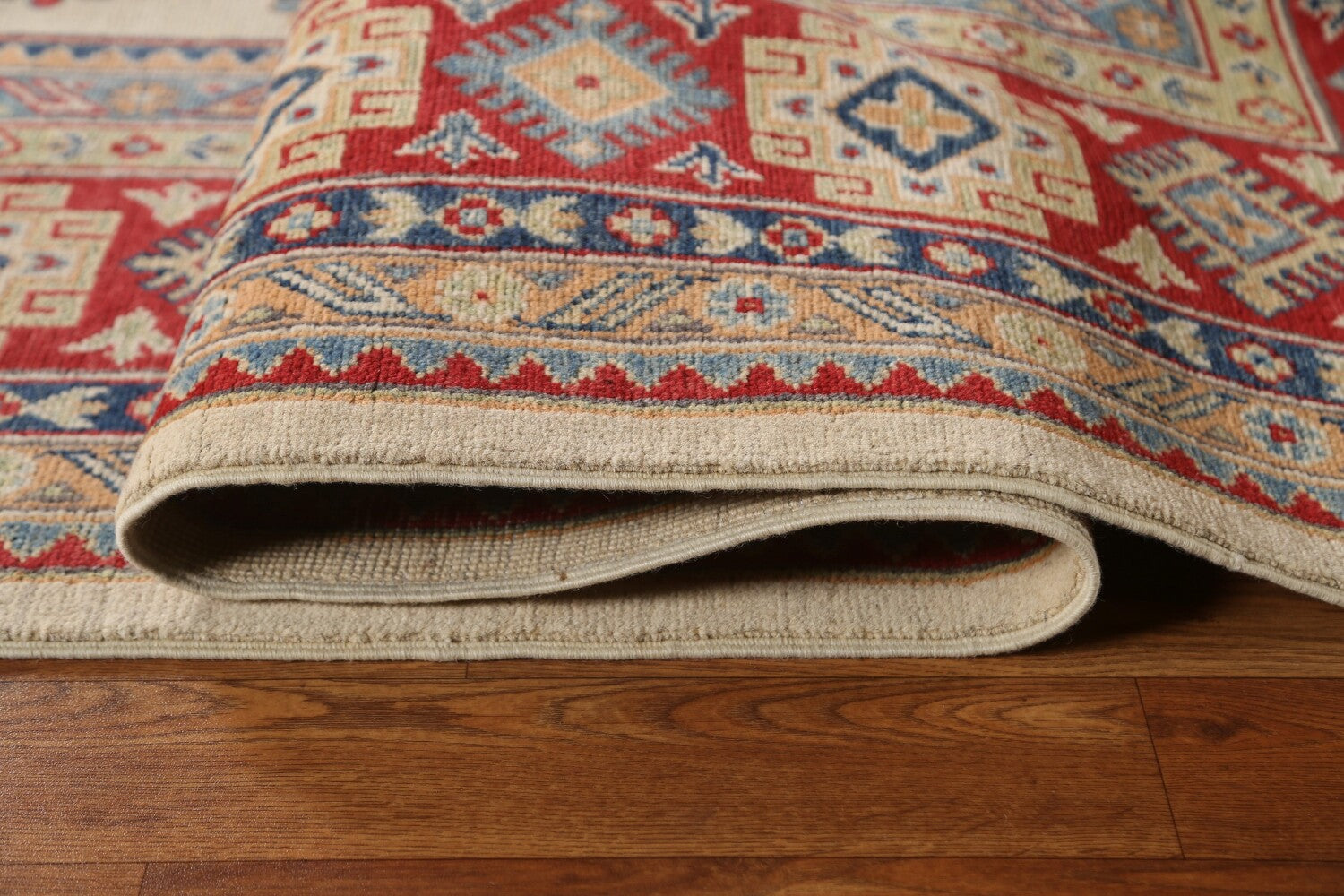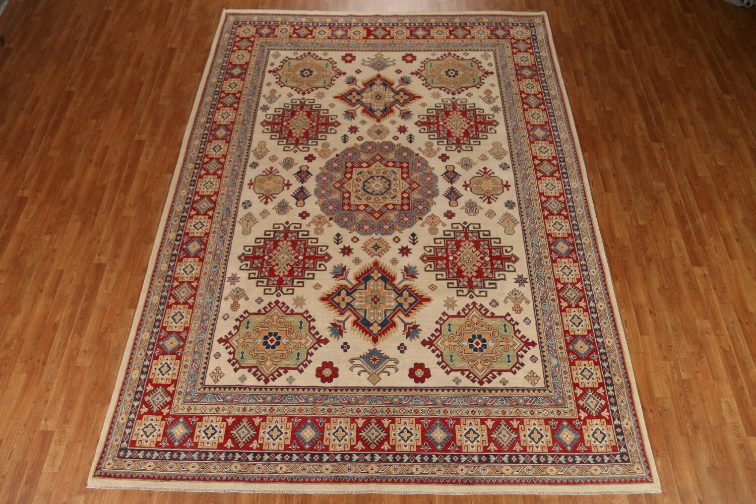 A Beautiful Genuine Pakistan Kazak rug is Hand Knotted by skillful weavers in Pakistan with 100% Wool Material. This rug is in condition. dimensions are 12' 2'' X 8' 11'' in foot and 371 X 272 in centimeter. the primary color is Beige & Ivories.
