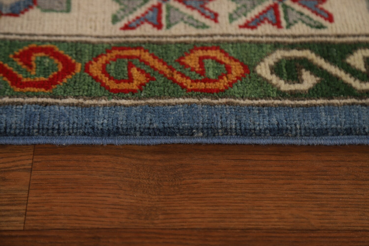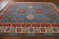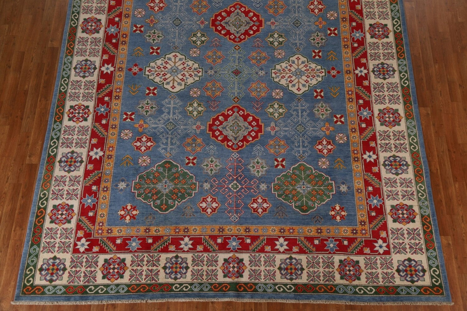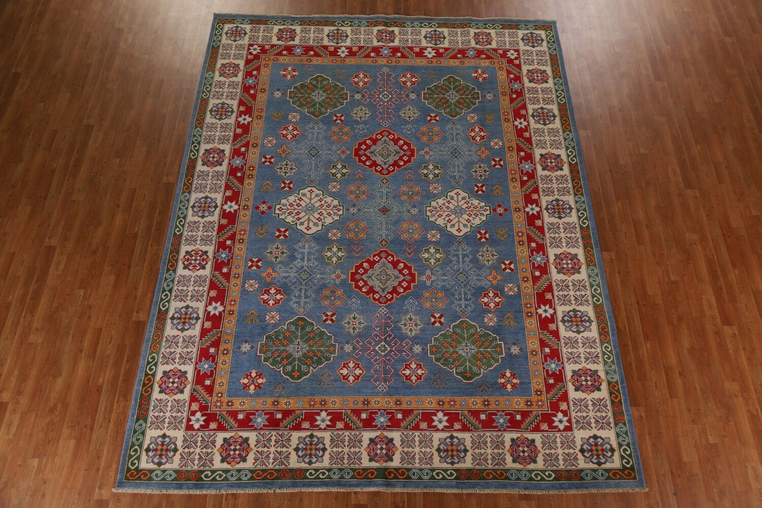 A Beautiful Genuine Pakistan Kazak rug is Hand Knotted by skillful weavers in Pakistan with 100% Wool Material. This rug is in condition. dimensions are 11' 8'' X 9' 1'' in foot and 356 X 277 in centimeter. the primary color is Navy Blue & Blues.