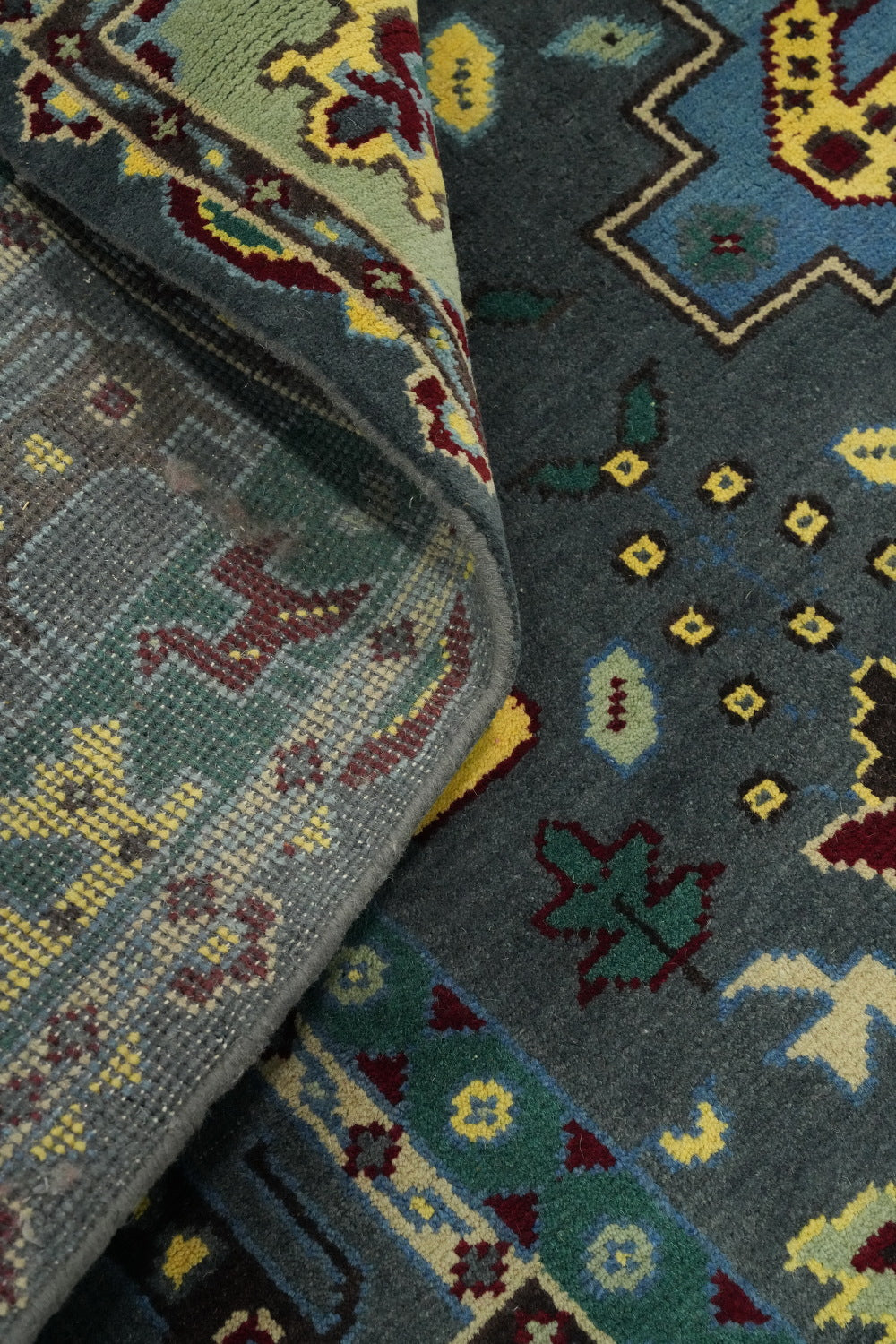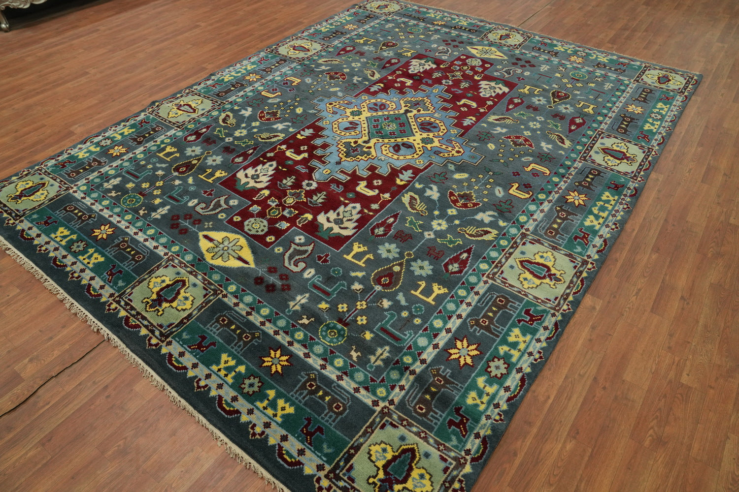 A Beautiful Genuine India Kazak rug is Hand Knotted by skillful weavers in India with 100% Wool Material. This rug is in New, First Quality condition. dimensions are 11' 7'' X 8' 9'' in foot and 353 X 267 in centimeter. the primary color is Greys & Charcoal.