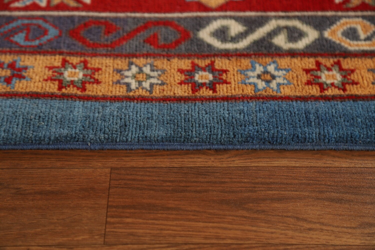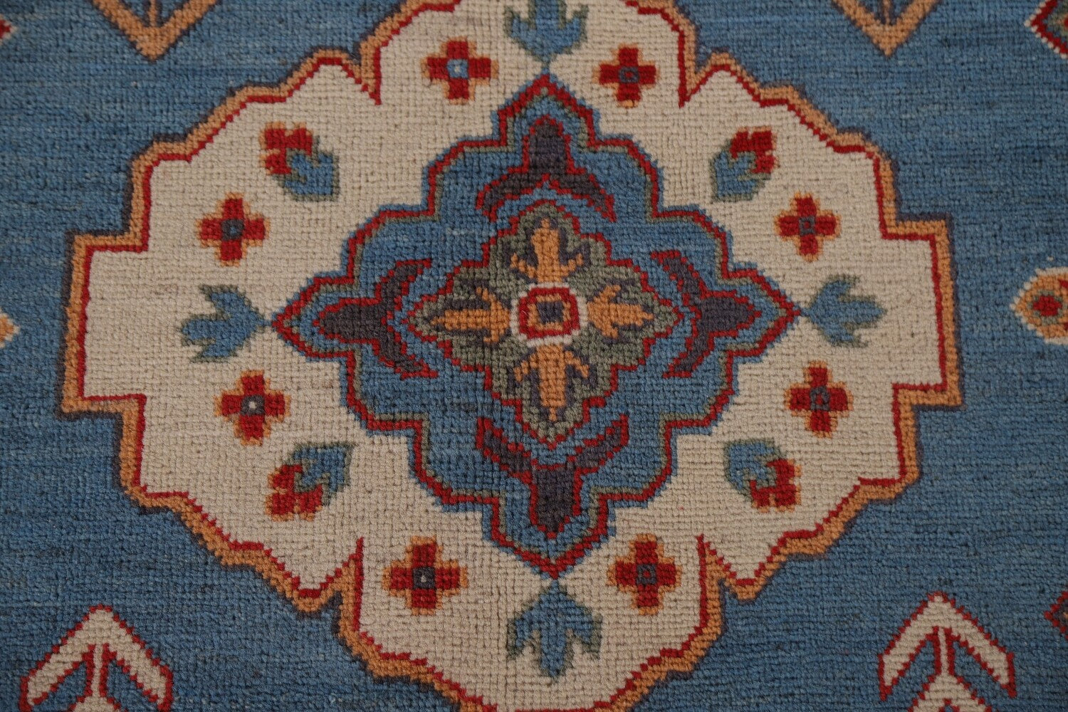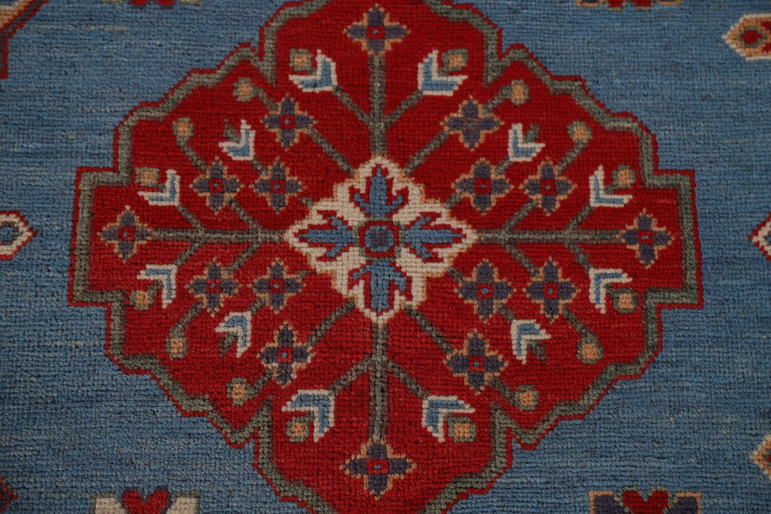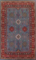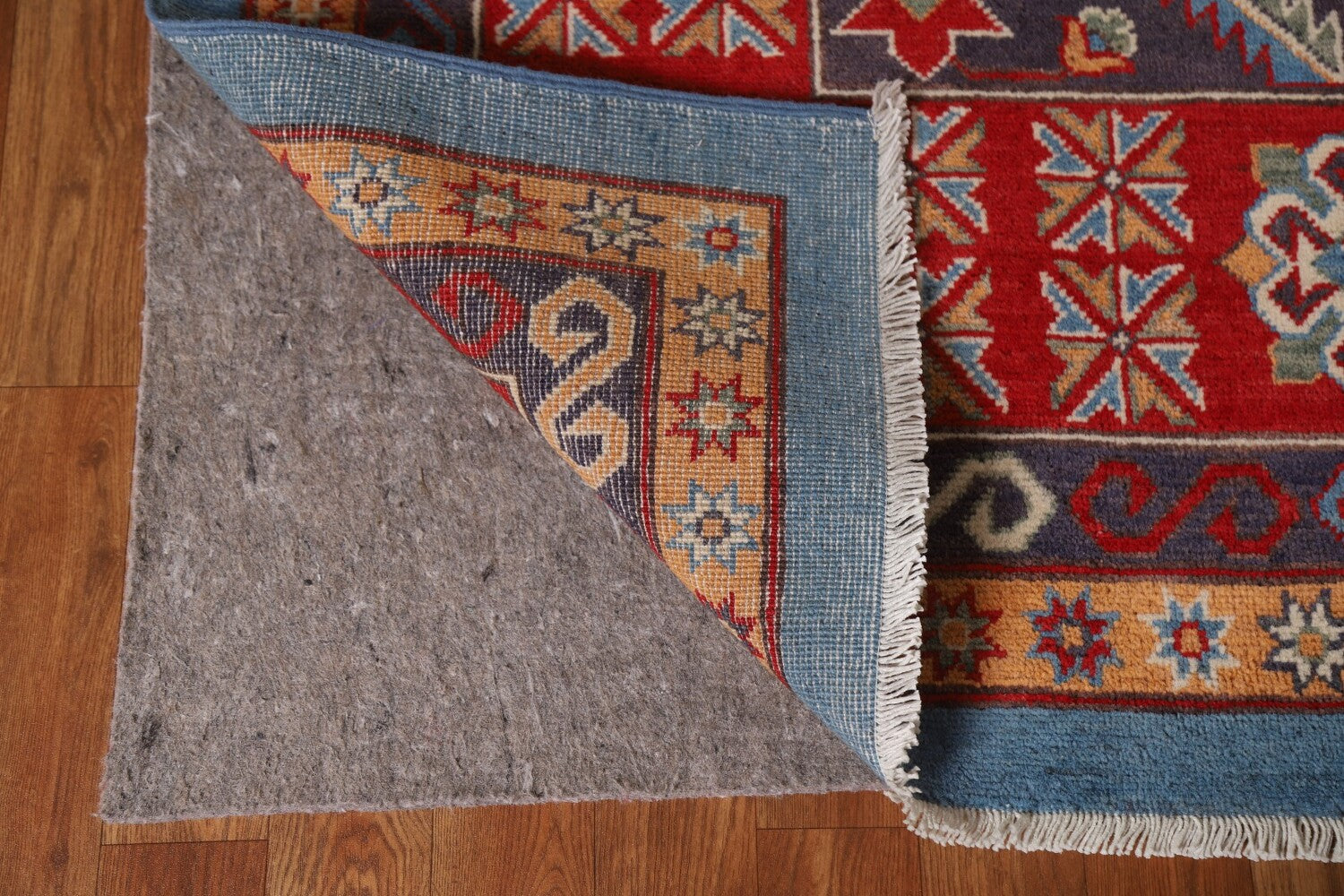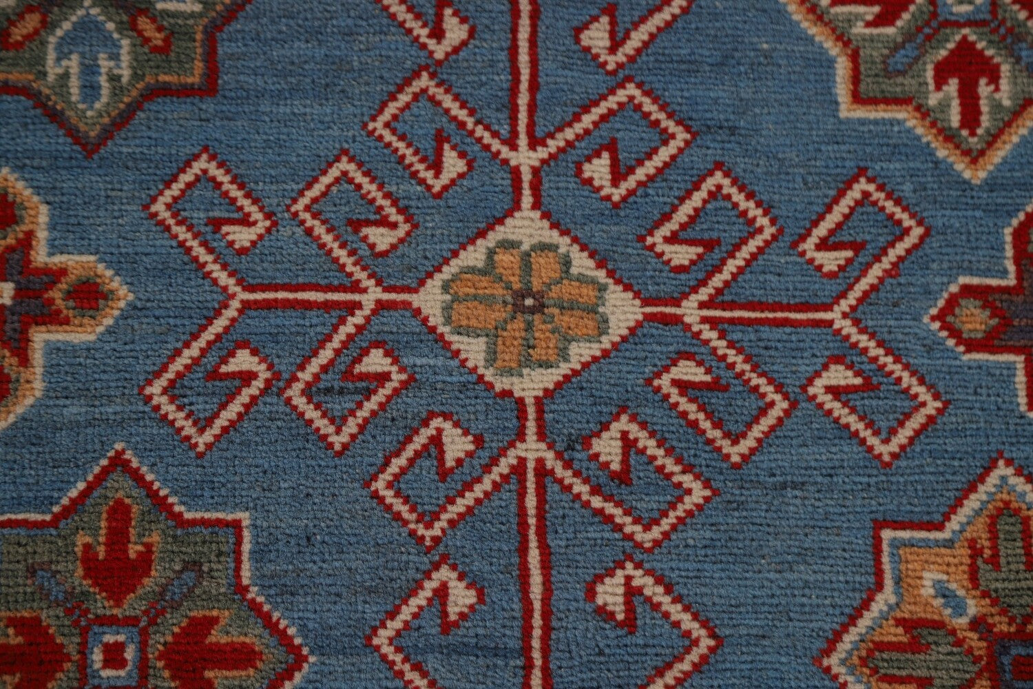 A Beautiful Genuine Pakistan Kazak rug is Hand Knotted by skillful weavers in Pakistan with 100% Wool Material. This rug is in condition. dimensions are 14' 10'' X 9' 11'' in foot and 452 X 302 in centimeter. the primary color is Navy Blue & Blues.