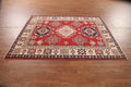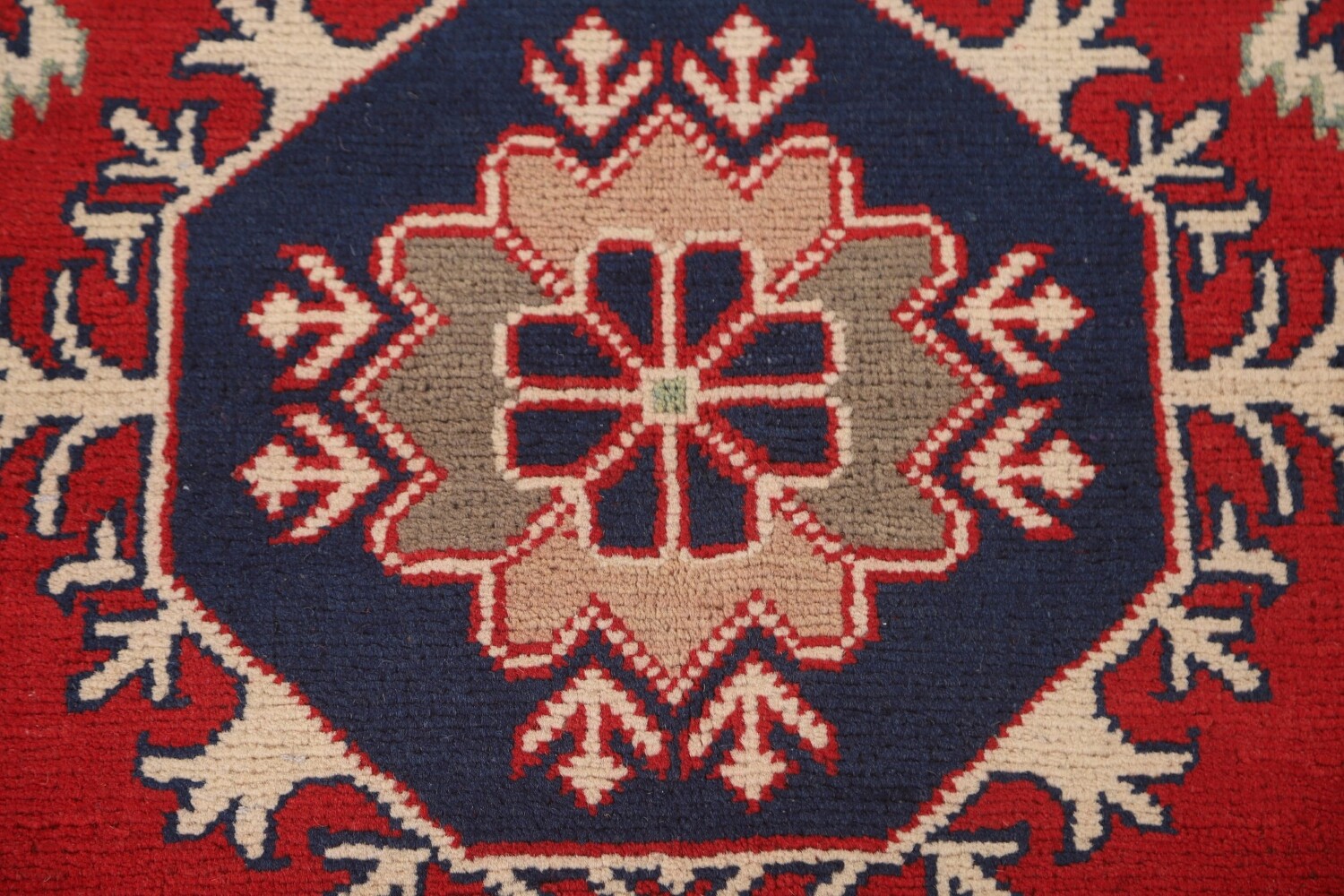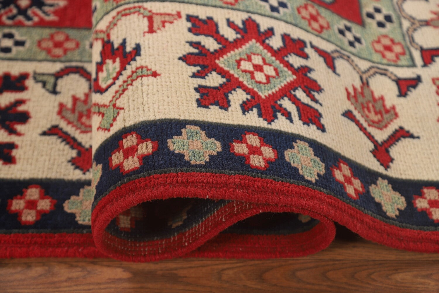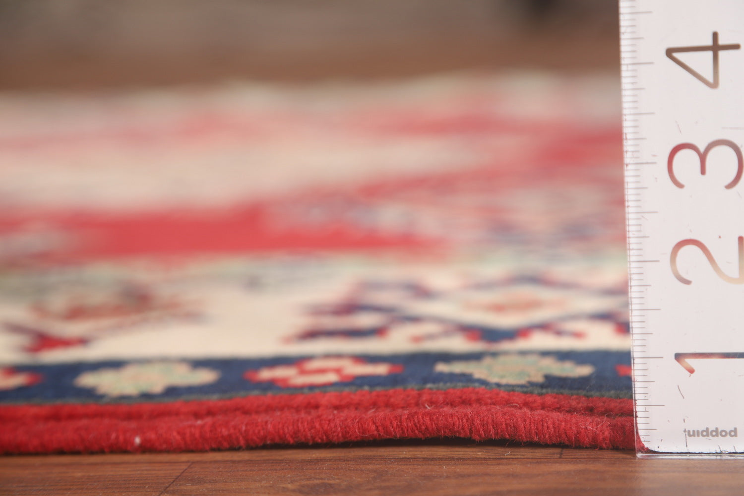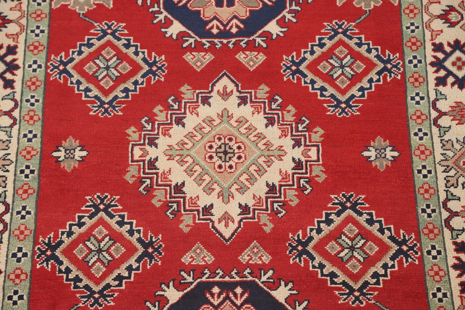 A Beautiful Genuine Pakistan Kazak rug is Hand Knotted by skillful weavers in Pakistan with 100% Wool Material. This rug is in New, First Quality condition. dimensions are 6' 8'' X 5' 1'' in foot and 203 X 155 in centimeter. the primary color is Red.