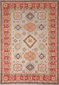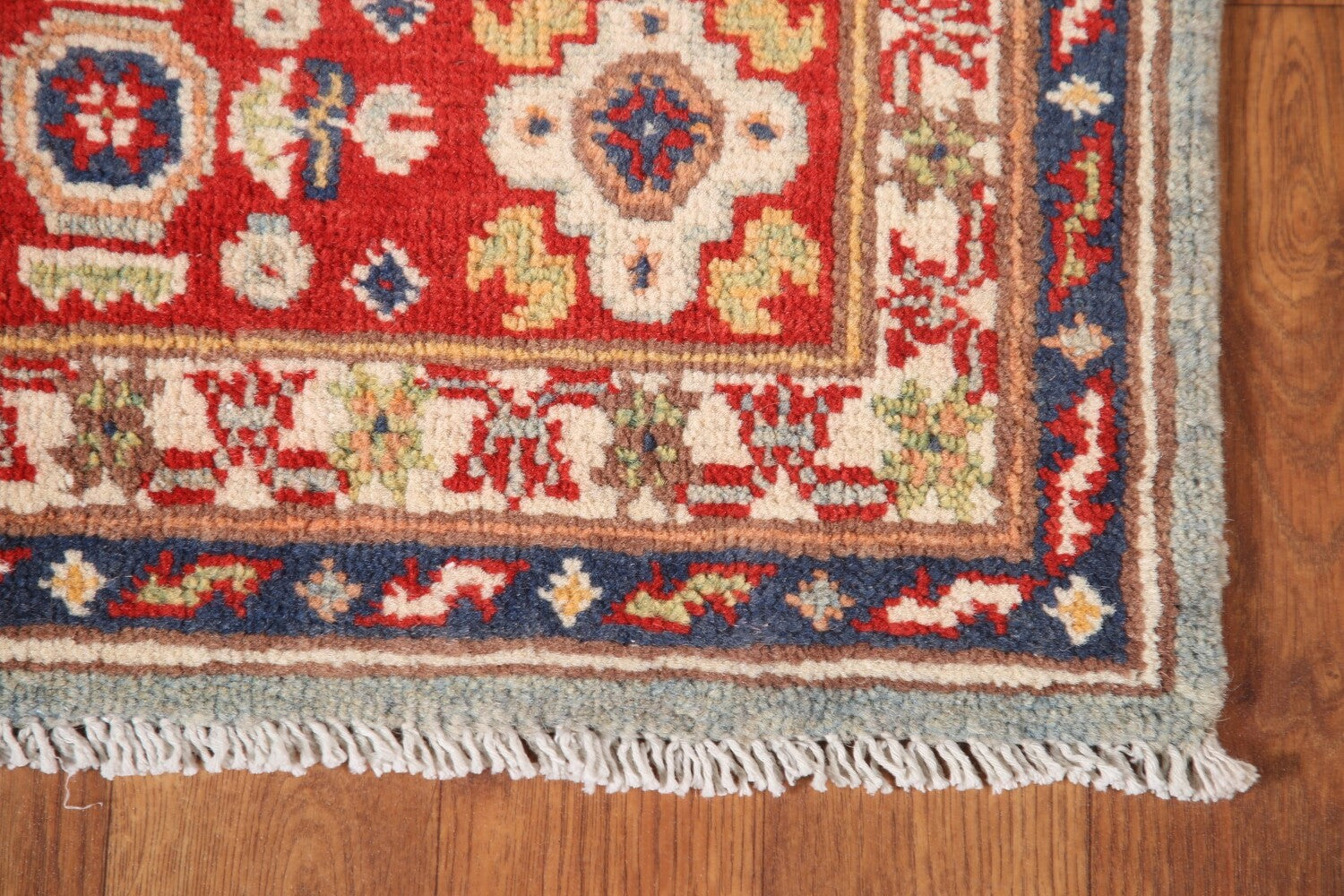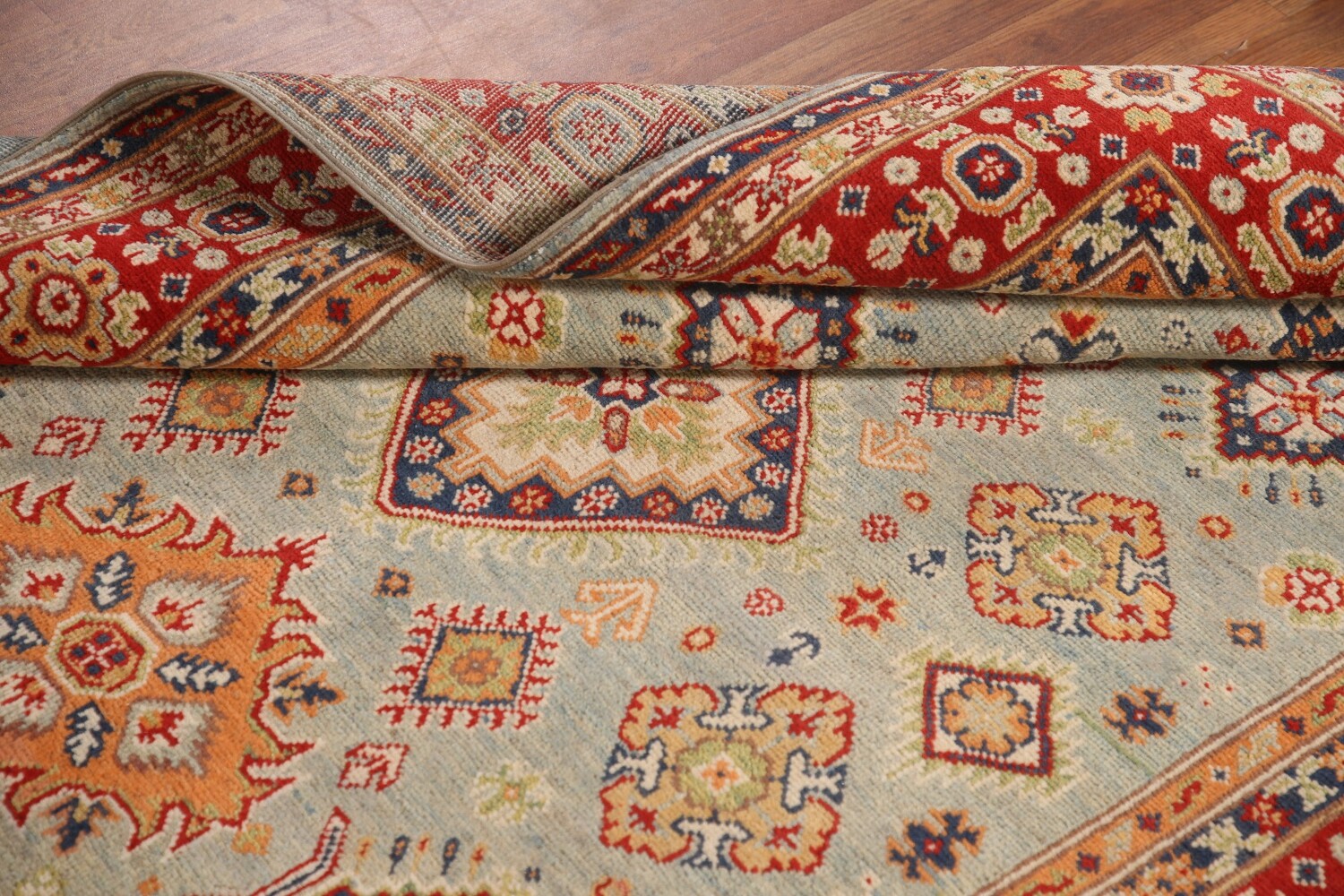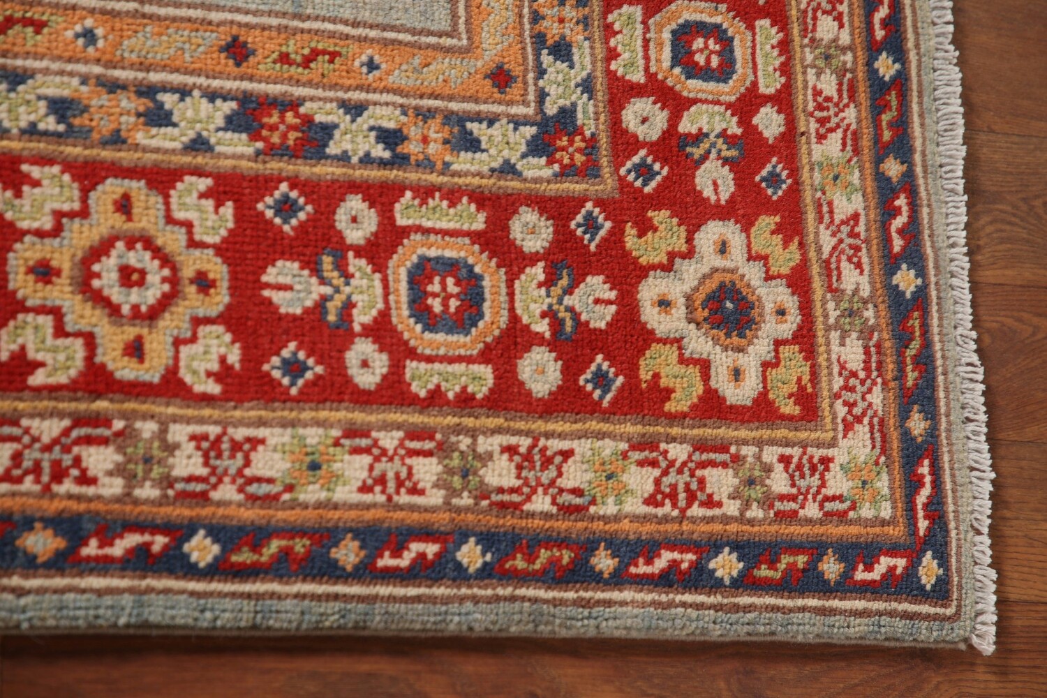 A Beautiful Genuine Pakistan Kazak rug is Hand Knotted by skillful weavers in Pakistan with 100% Wool Material. This rug is in New, First Quality condition. dimensions are 6' 11'' X 4' 10'' in foot and 211 X 147 in centimeter. the primary color is Navy Blue & Blues.