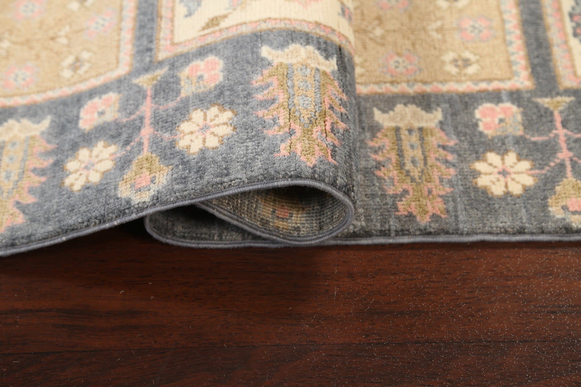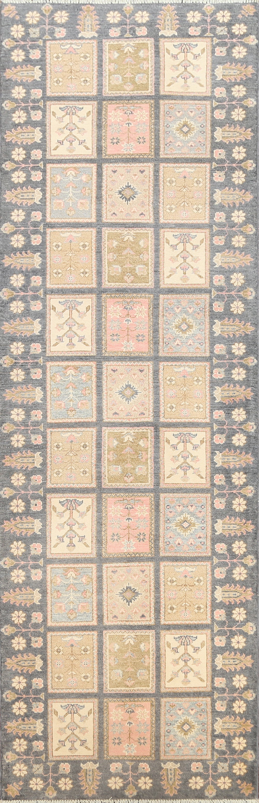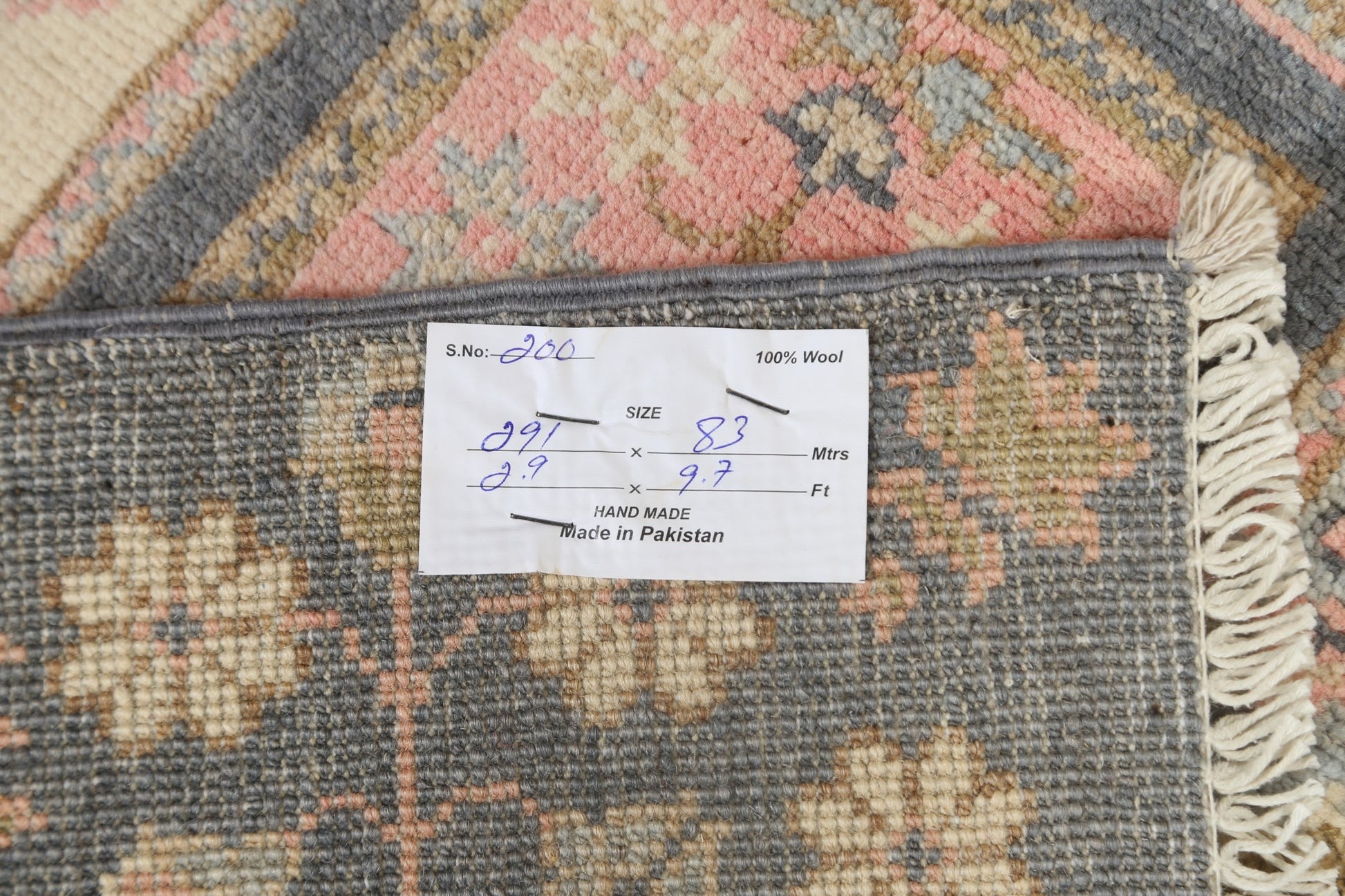 A Beautiful Genuine Pakistan Kazak rug is Hand Knotted by skillful weavers in Pakistan with 100% Wool Material. This rug is in New, First Quality condition. dimensions are 9' 7'' X 2' 9'' in foot and 292 X 84 in centimeter. the primary color is Greys & Charcoal.