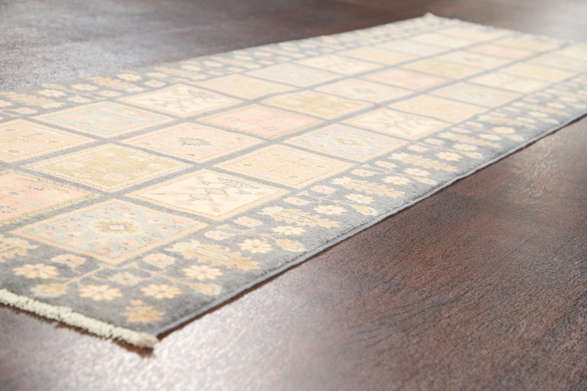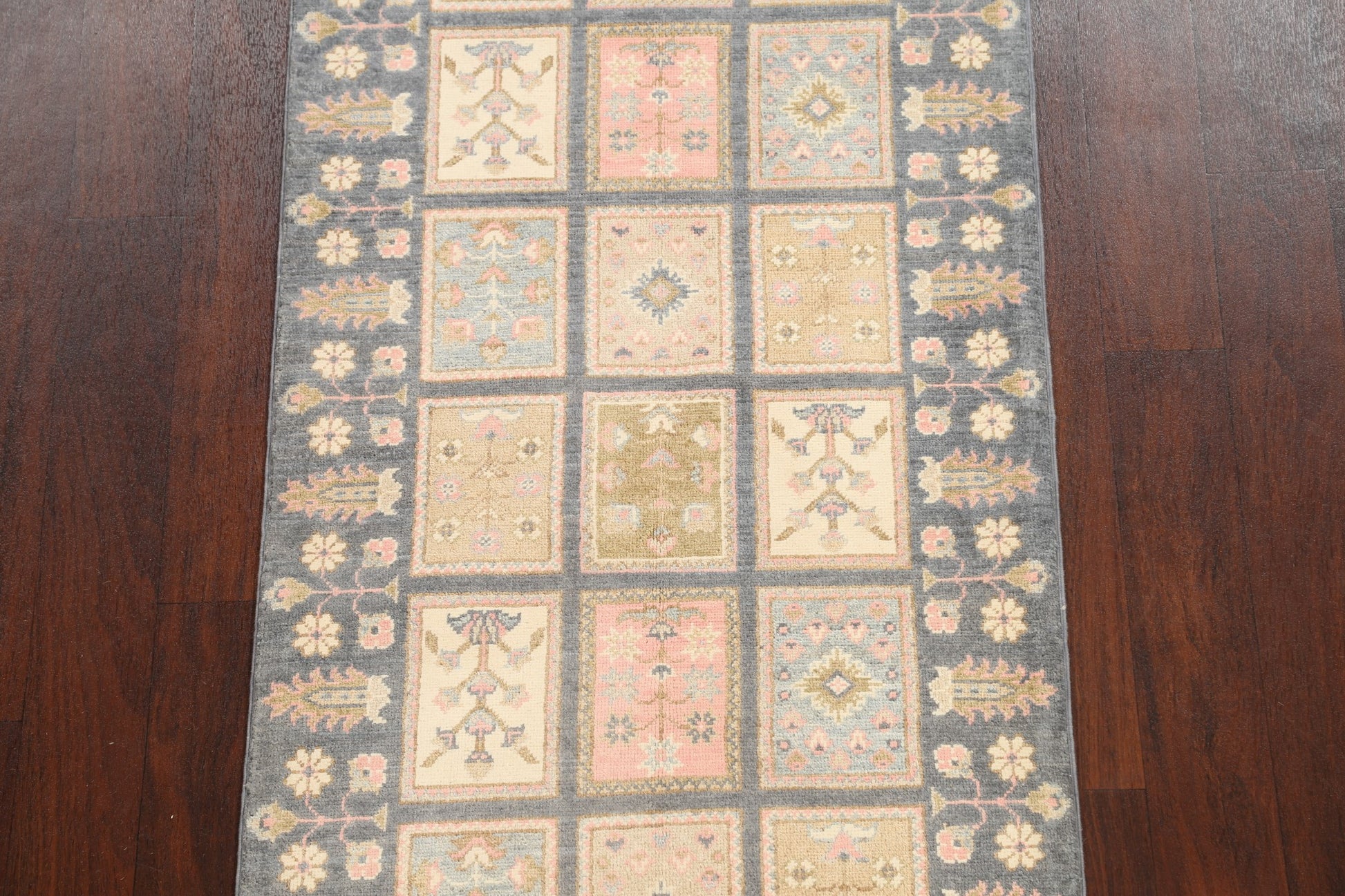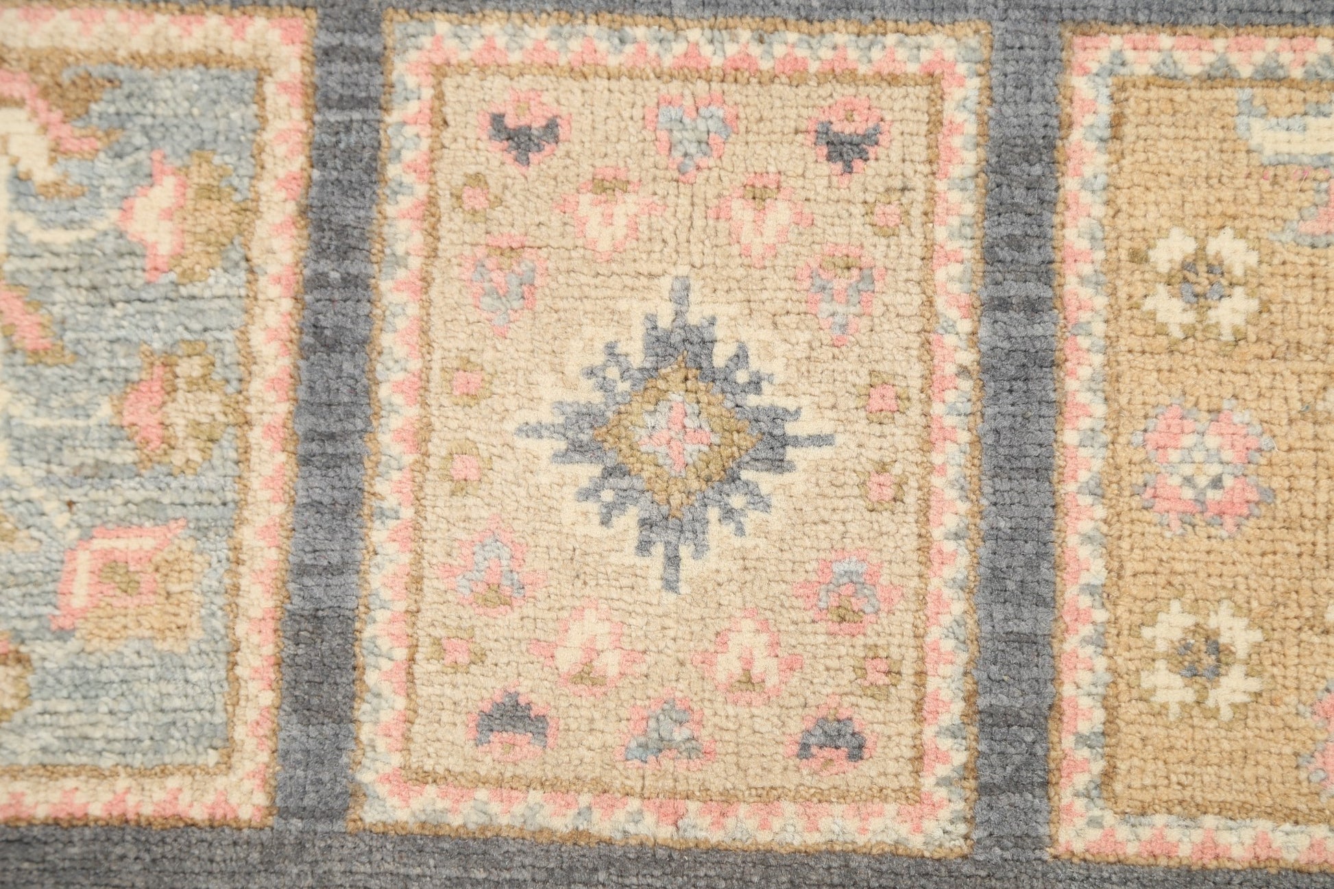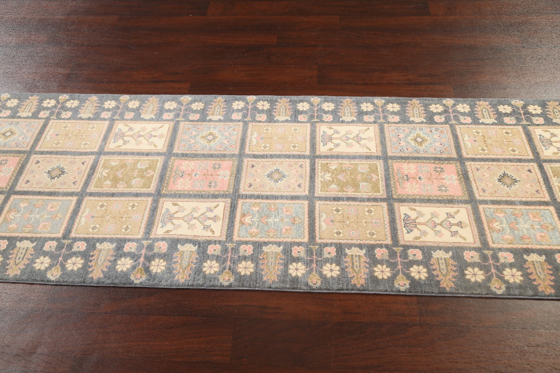 A Beautiful Genuine Pakistan Kazak rug is Hand Knotted by skillful weavers in Pakistan with 100% Wool Material. This rug is in New, First Quality condition. dimensions are 9' 7'' X 2' 9'' in foot and 292 X 84 in centimeter. the primary color is Greys & Charcoal.