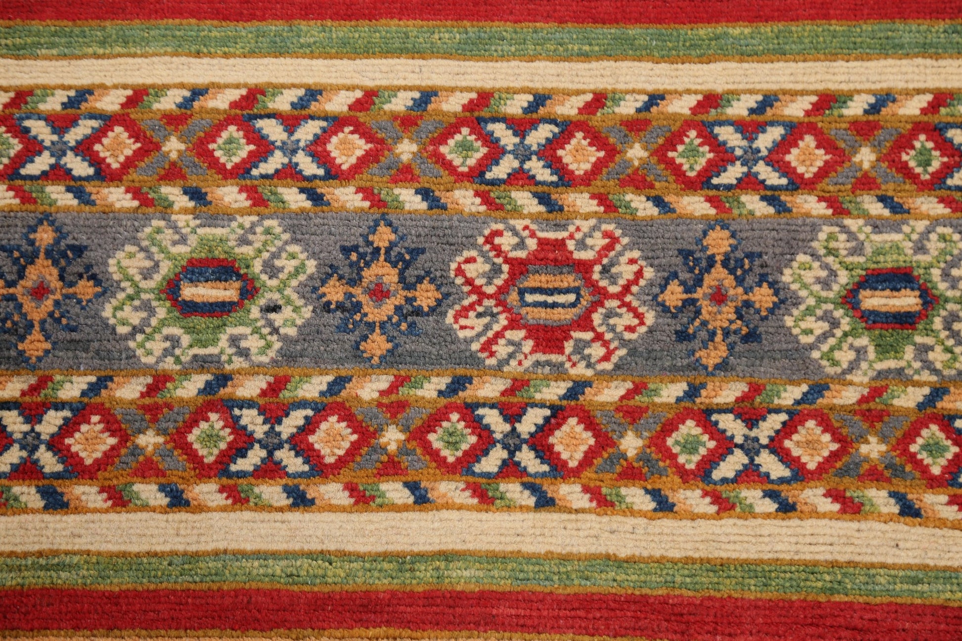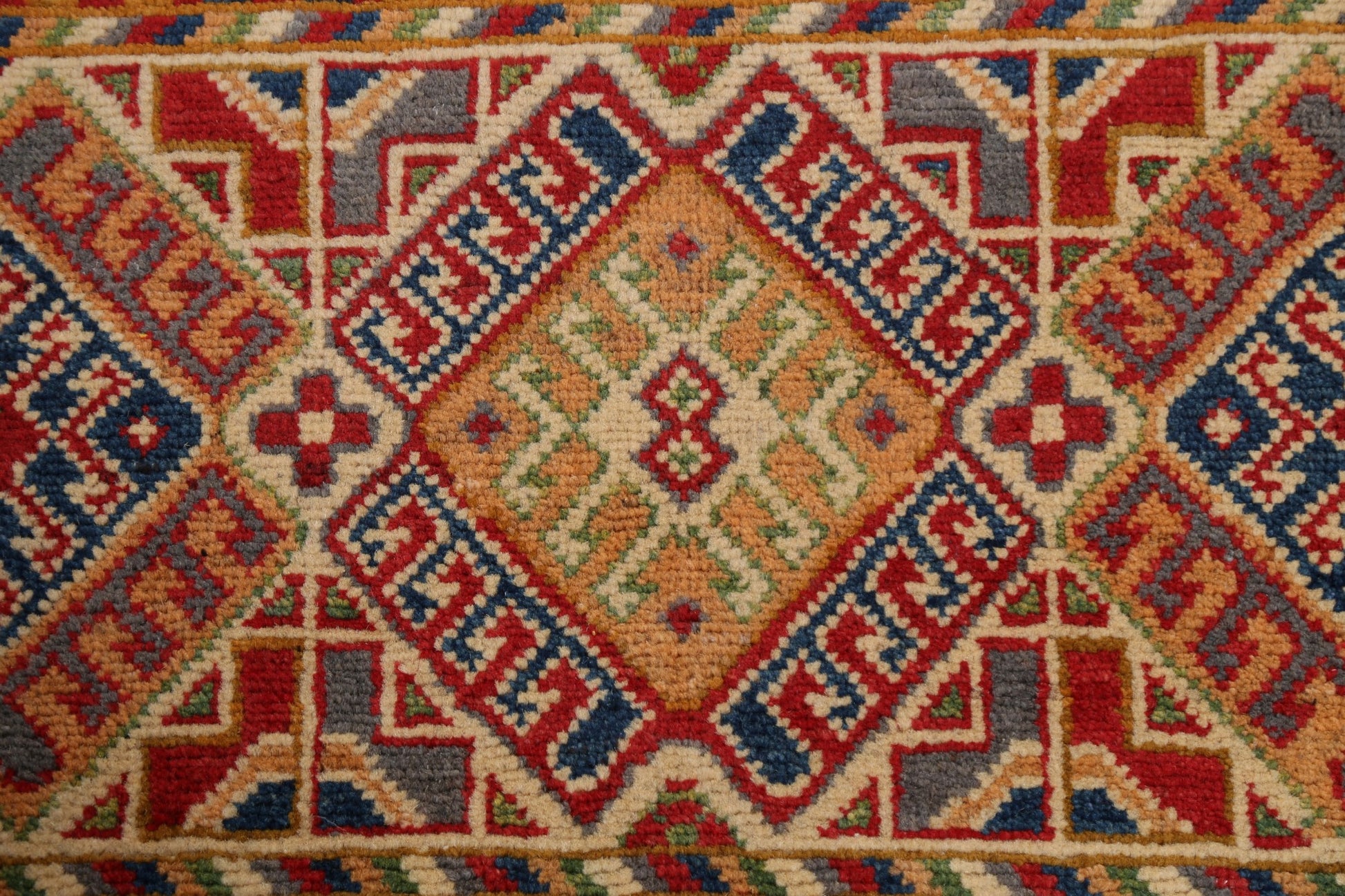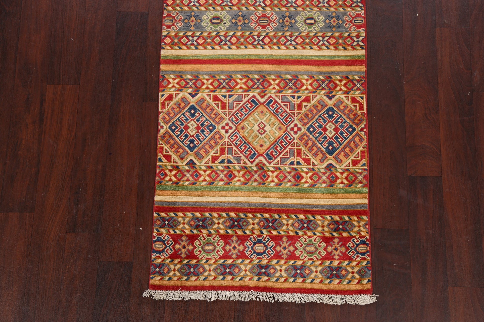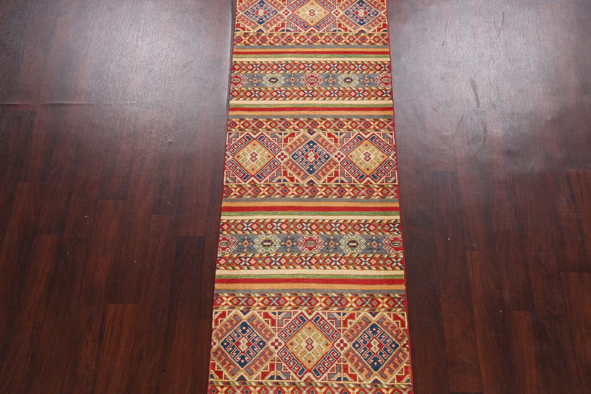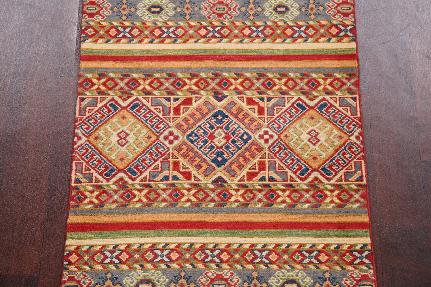 Geometric Kazak Oriental Runner Rug 3x10