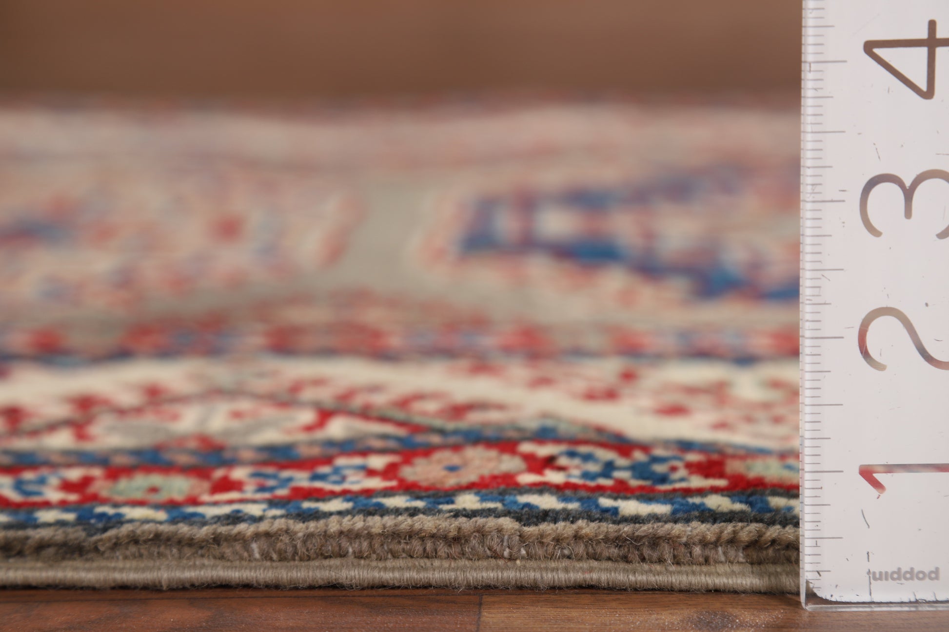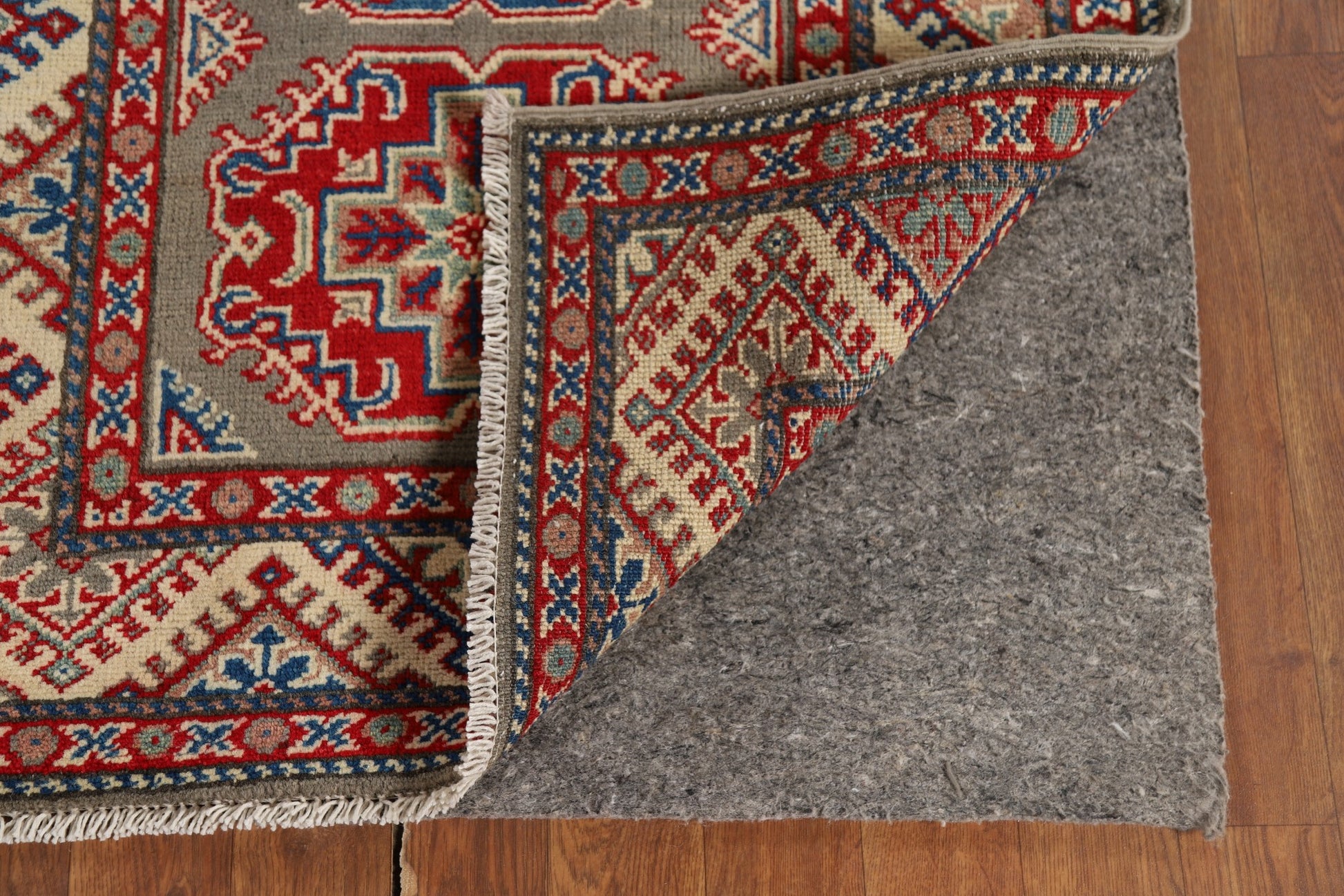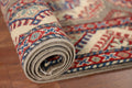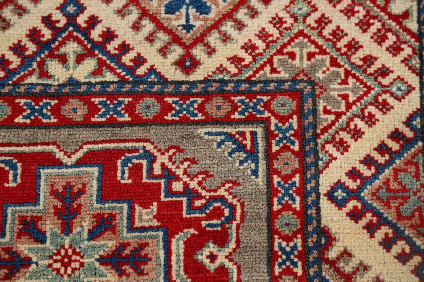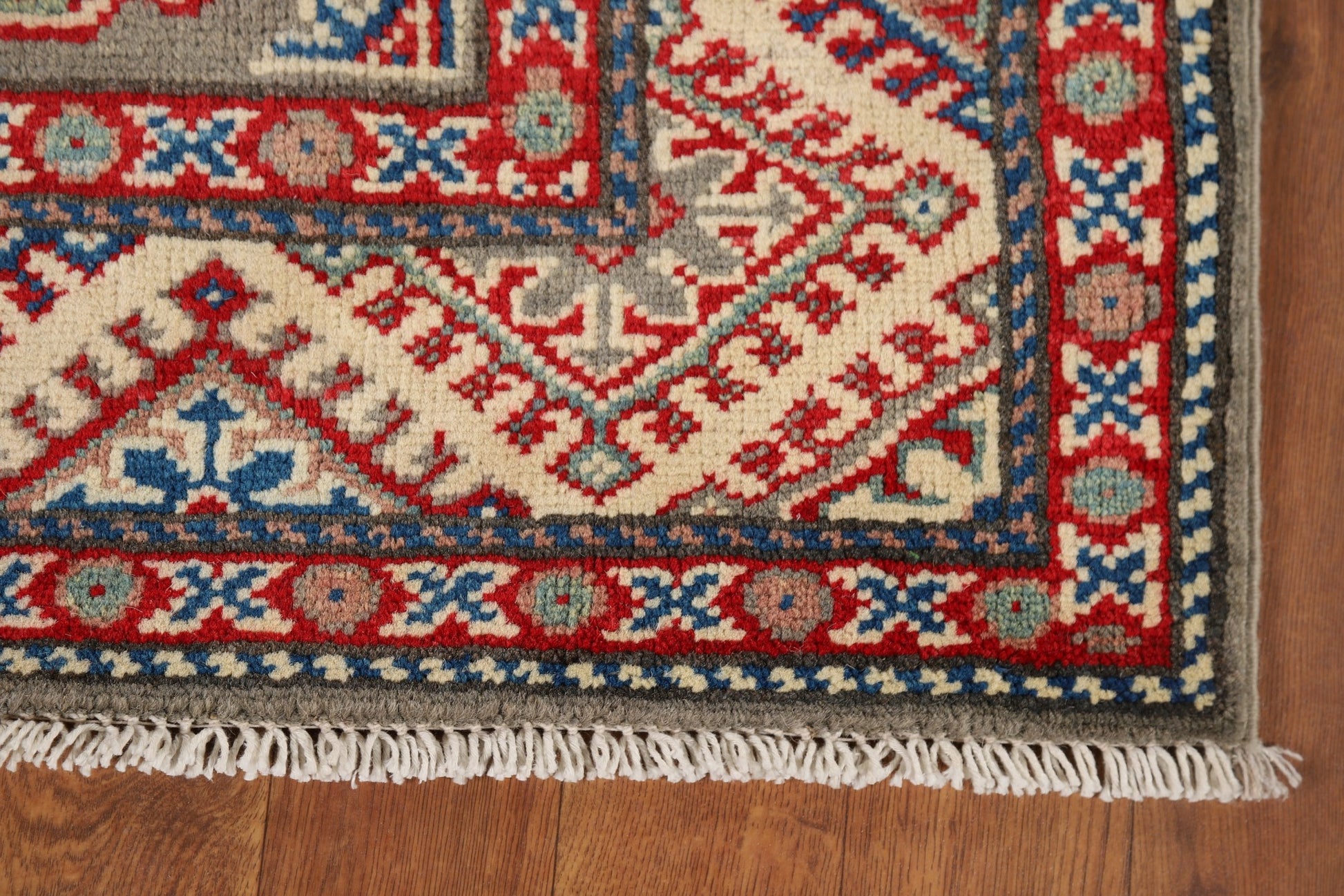 A Beautiful Genuine Pakistan Kazak rug is Hand Knotted by skillful weavers in Pakistan with 100% Wool Material. This rug is in New, First Quality condition. dimensions are 9' 11'' X 2' 8'' in foot and 302 X 81 in centimeter. the primary color is Brown.