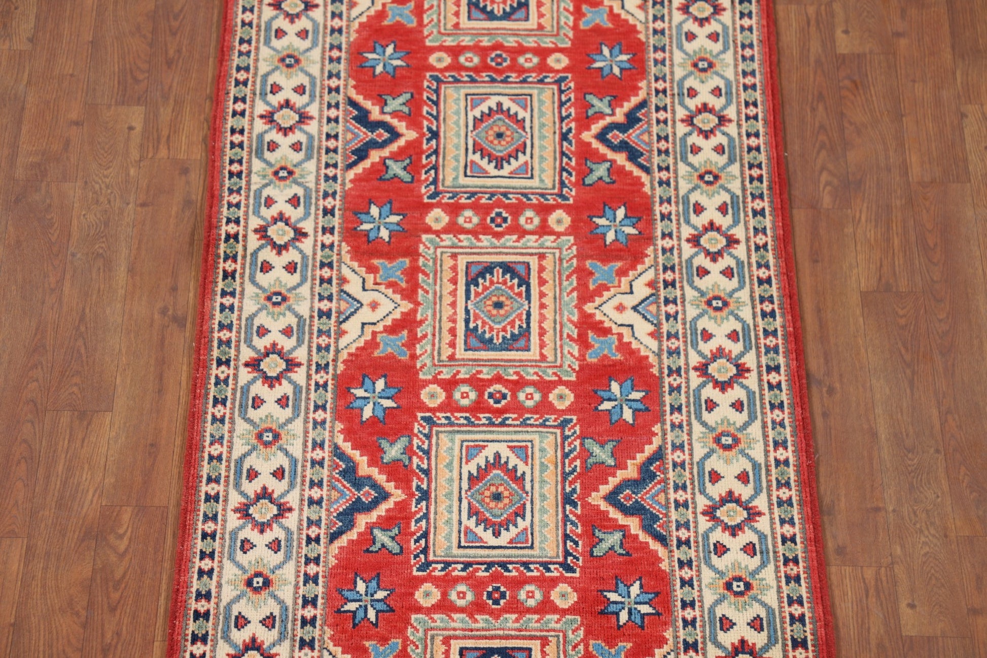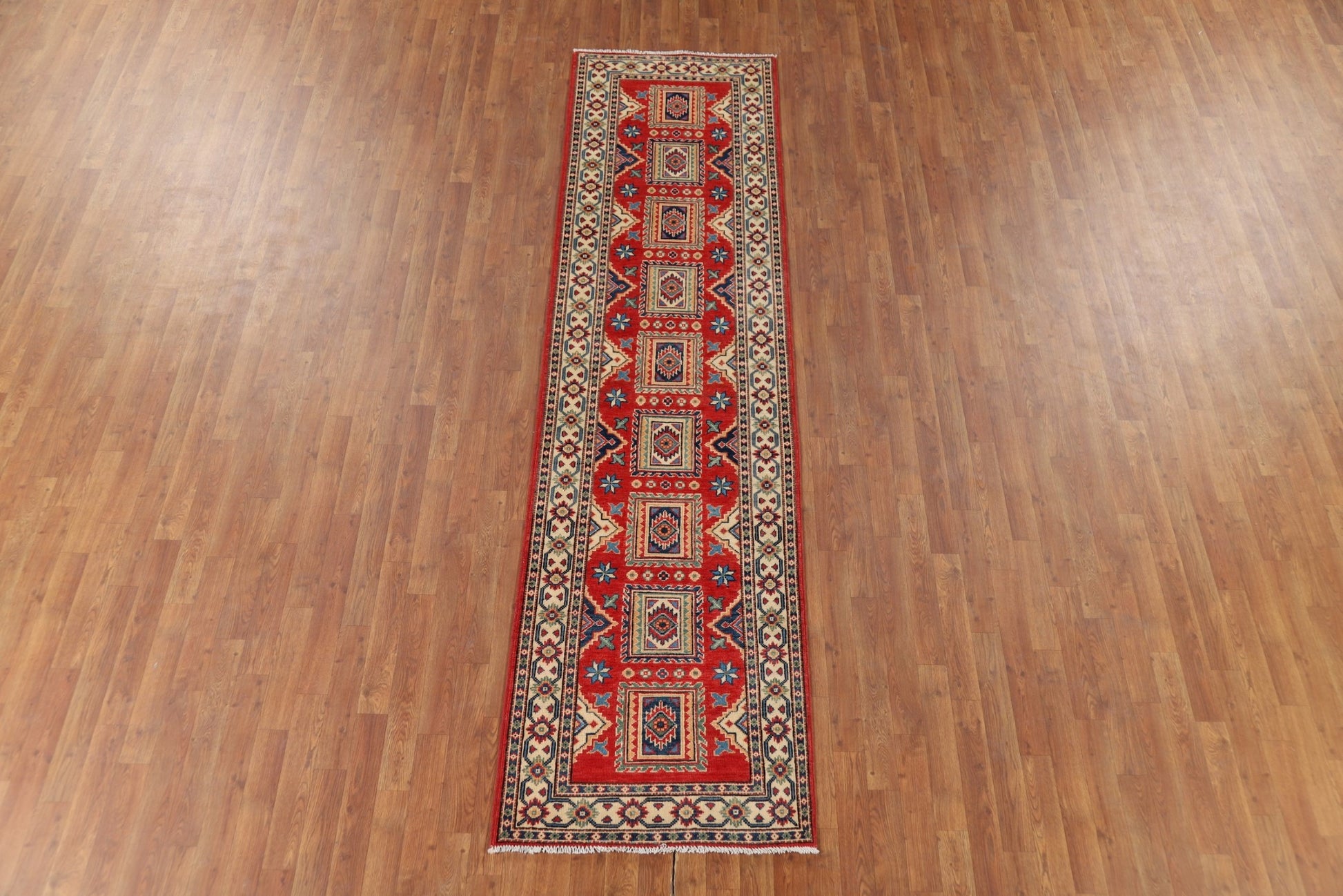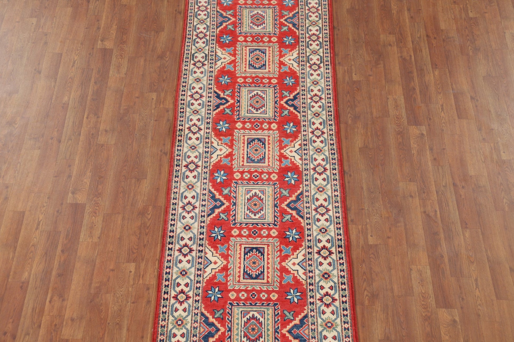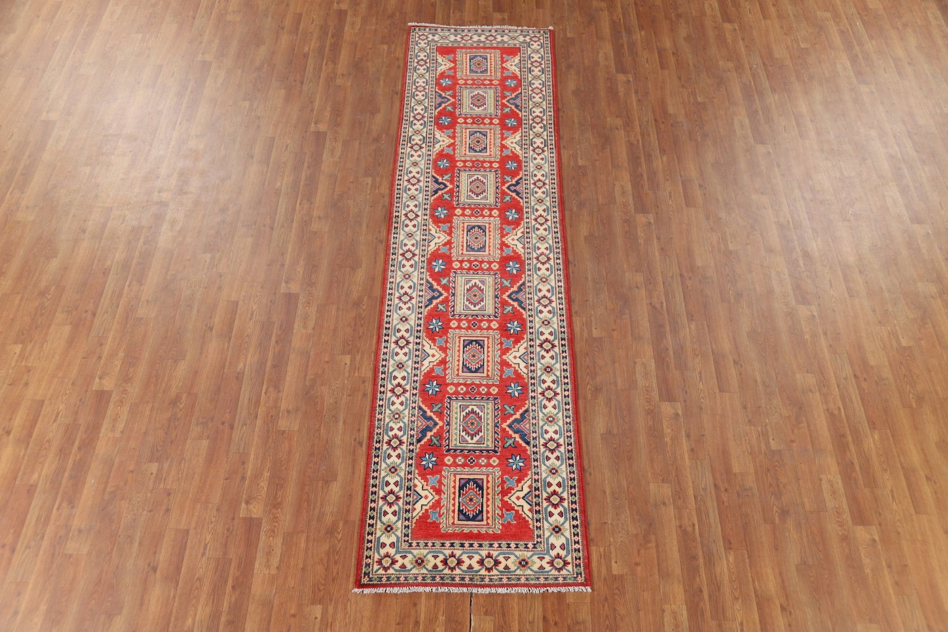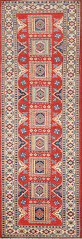 Geometric Kazak Oriental Runner Rug 3x10