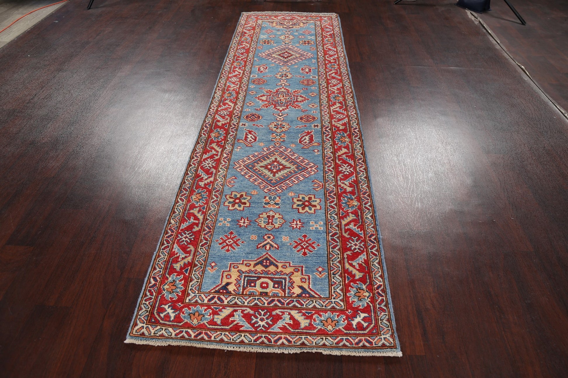 Geometric Kazak Oriental Runner Rug 3x10