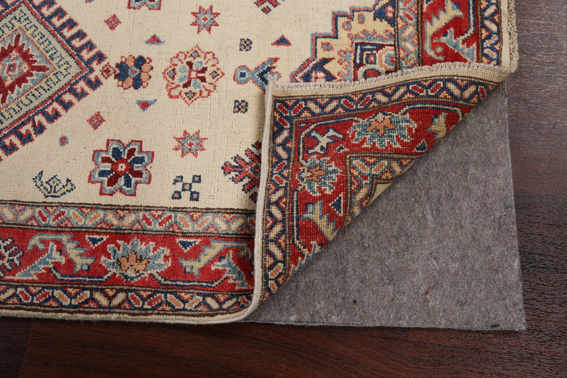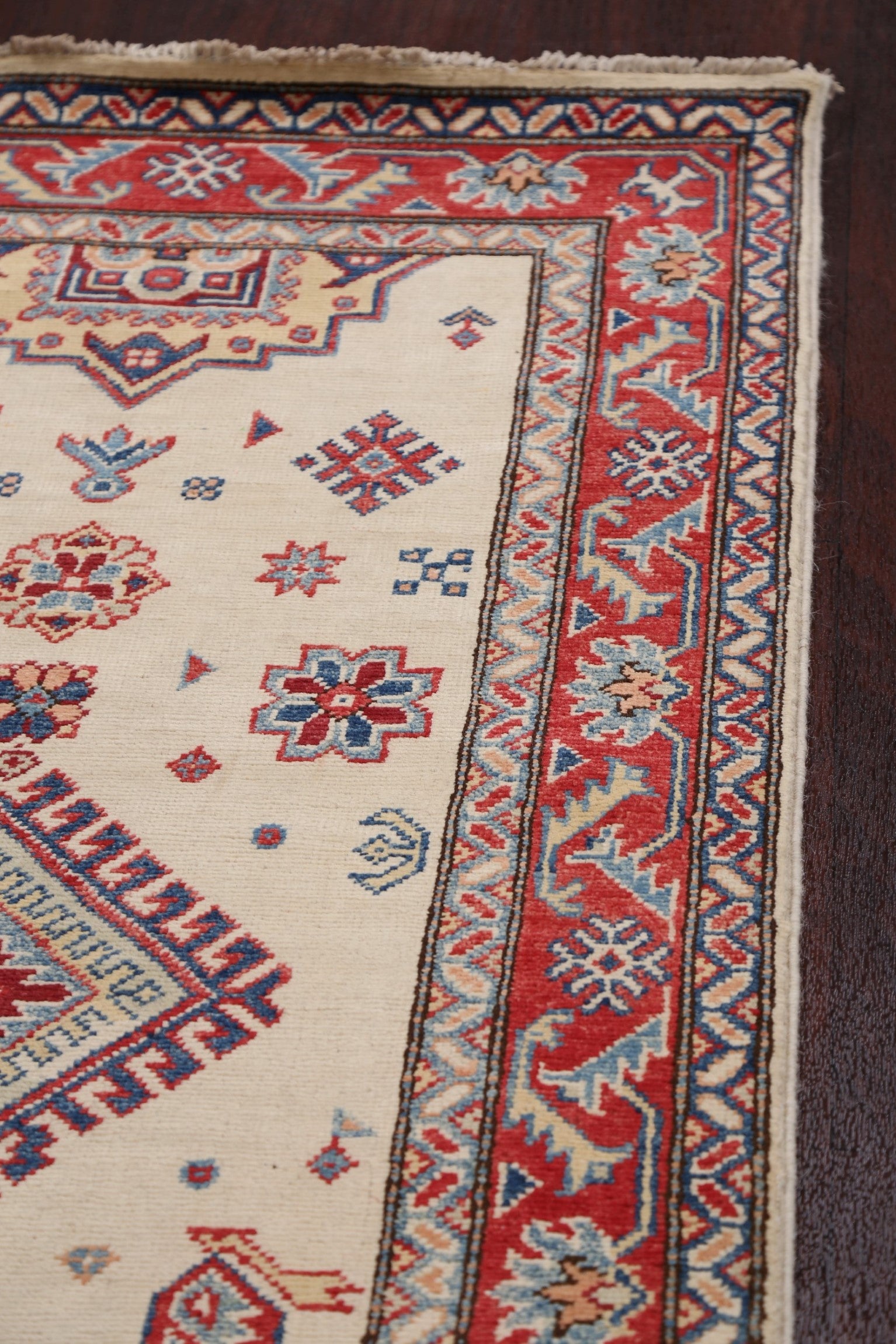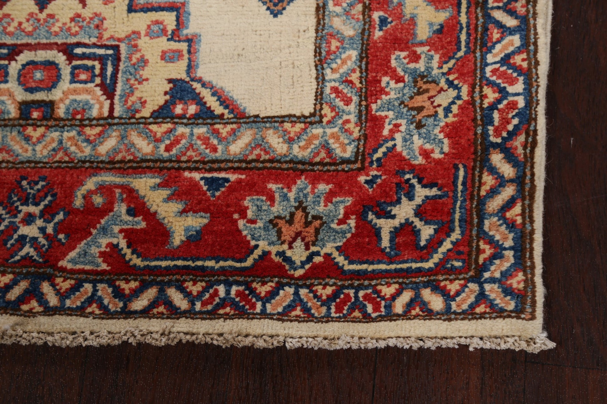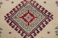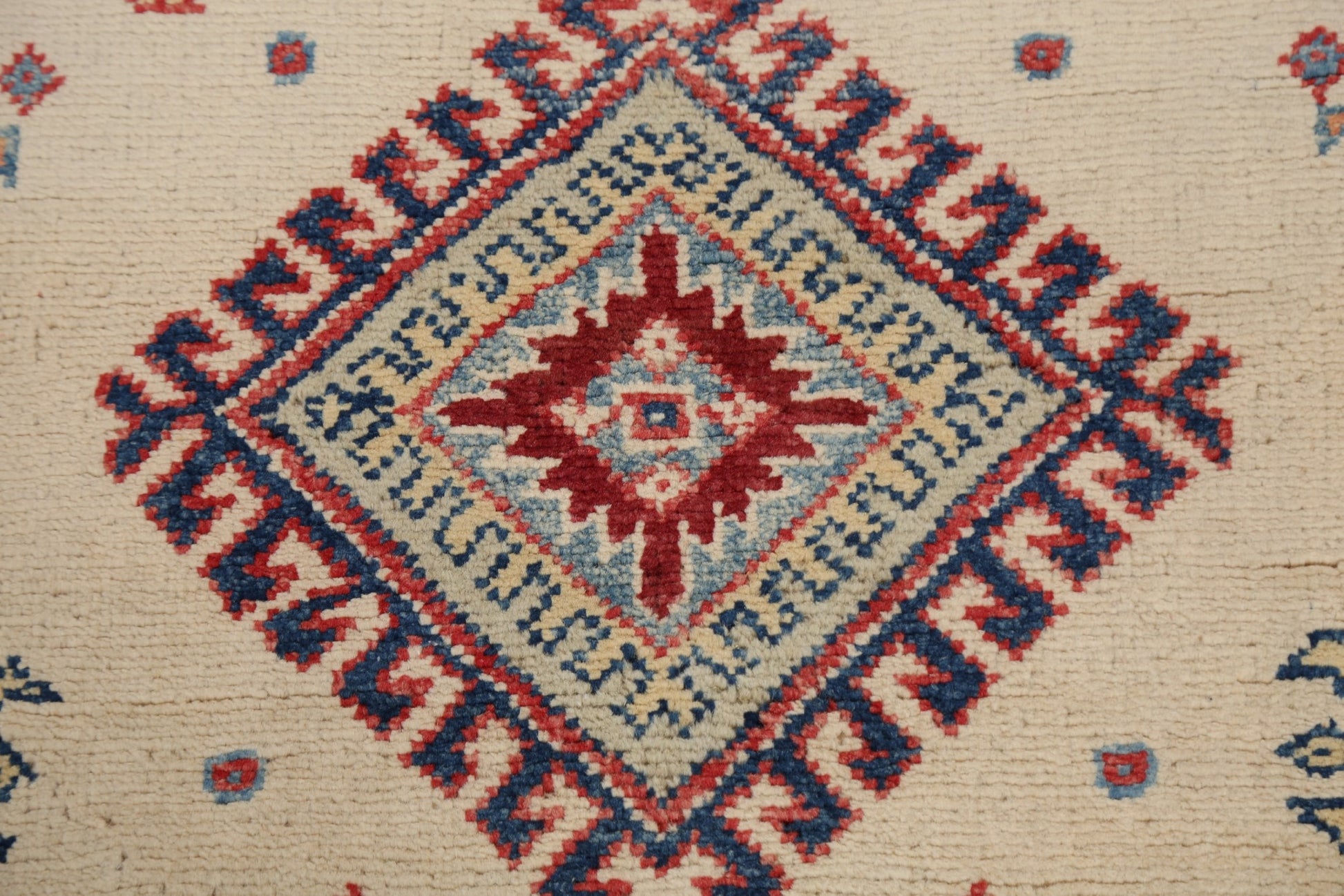 A Beautiful Genuine Pakistan Kazak rug is Hand Knotted by skillful weavers in Pakistan with 100% Wool Material. This rug is in New, First Quality condition. dimensions are 9' 8'' X 2' 10'' in foot and 295 X 86 in centimeter. the primary color is Beige & Ivories.