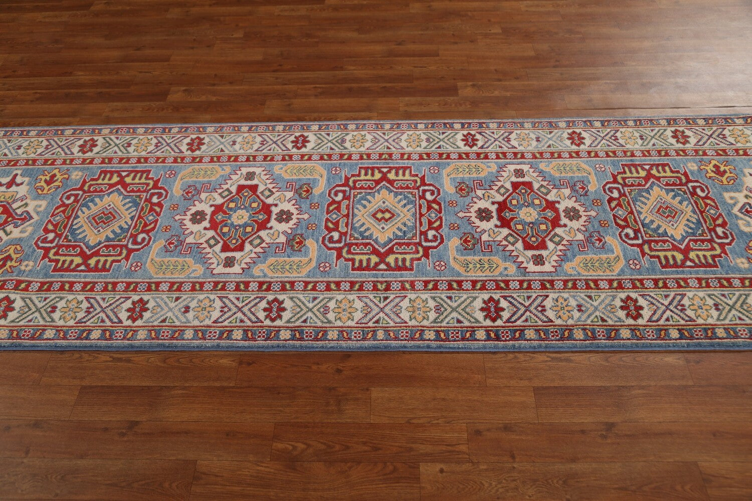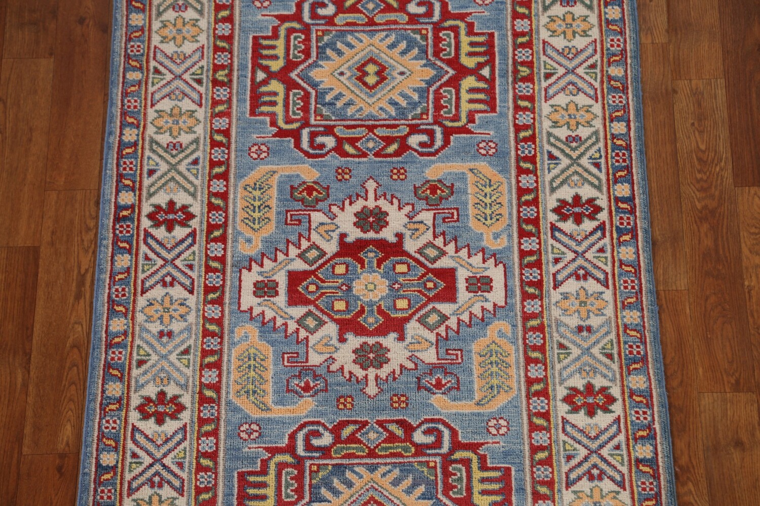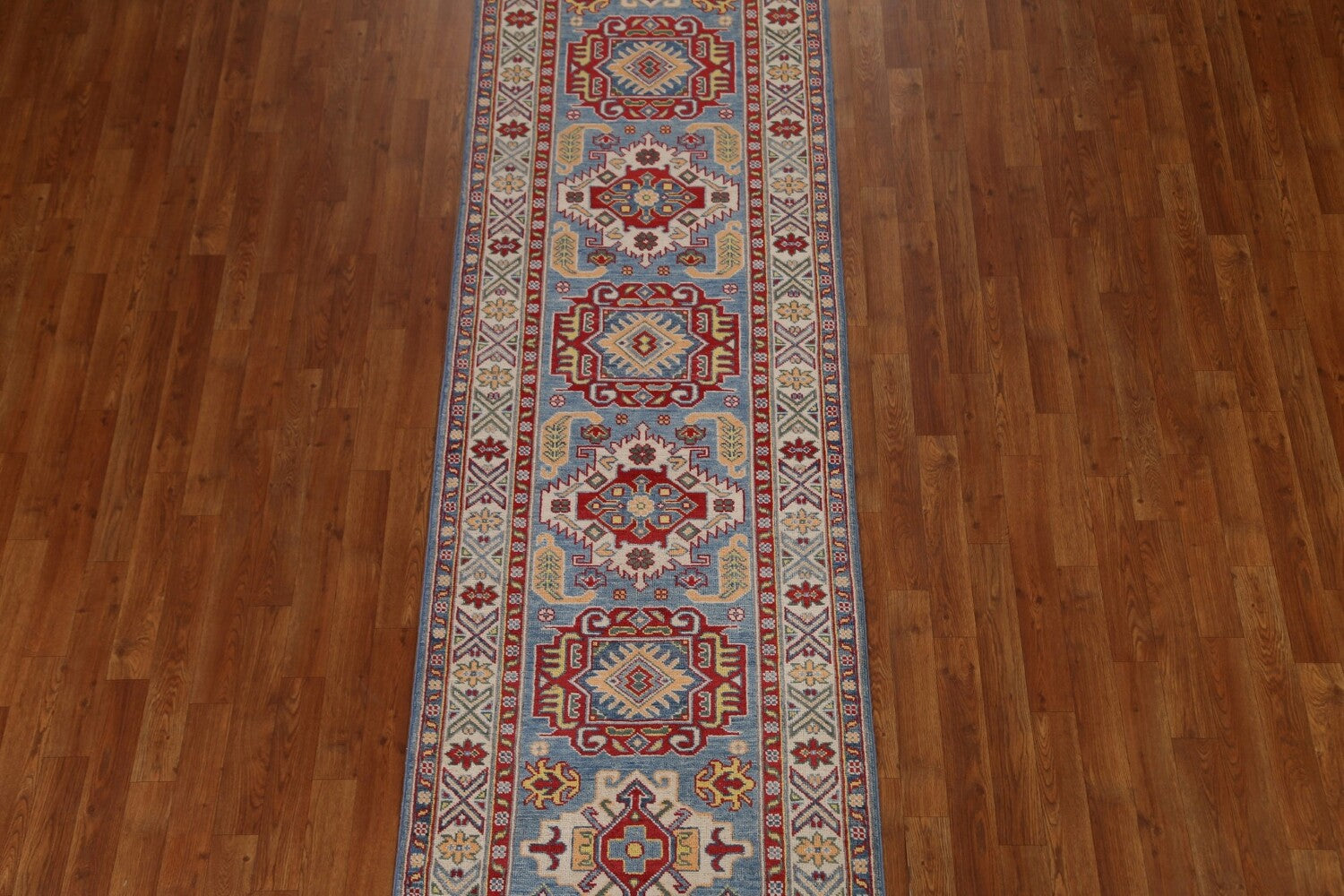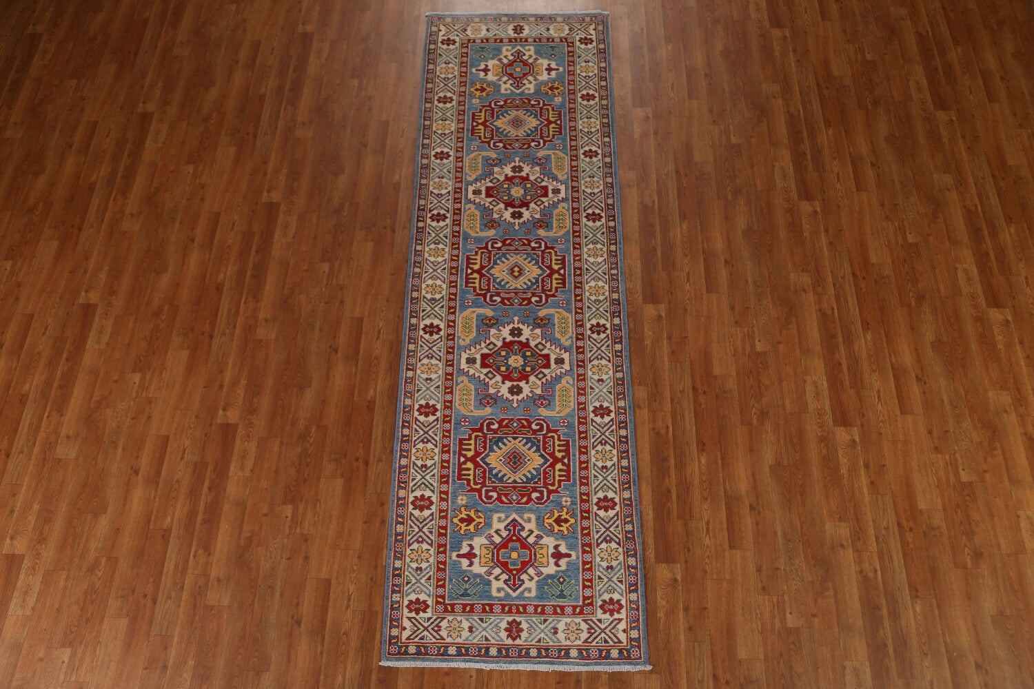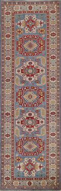 Geometric Kazak Oriental Runner Rug 3x10