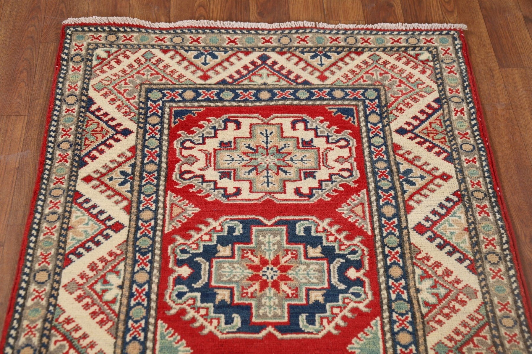 Geometric Kazak Oriental Runner Rug 3x11