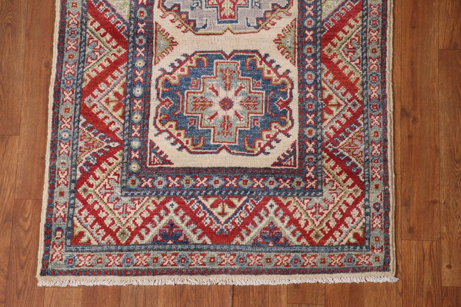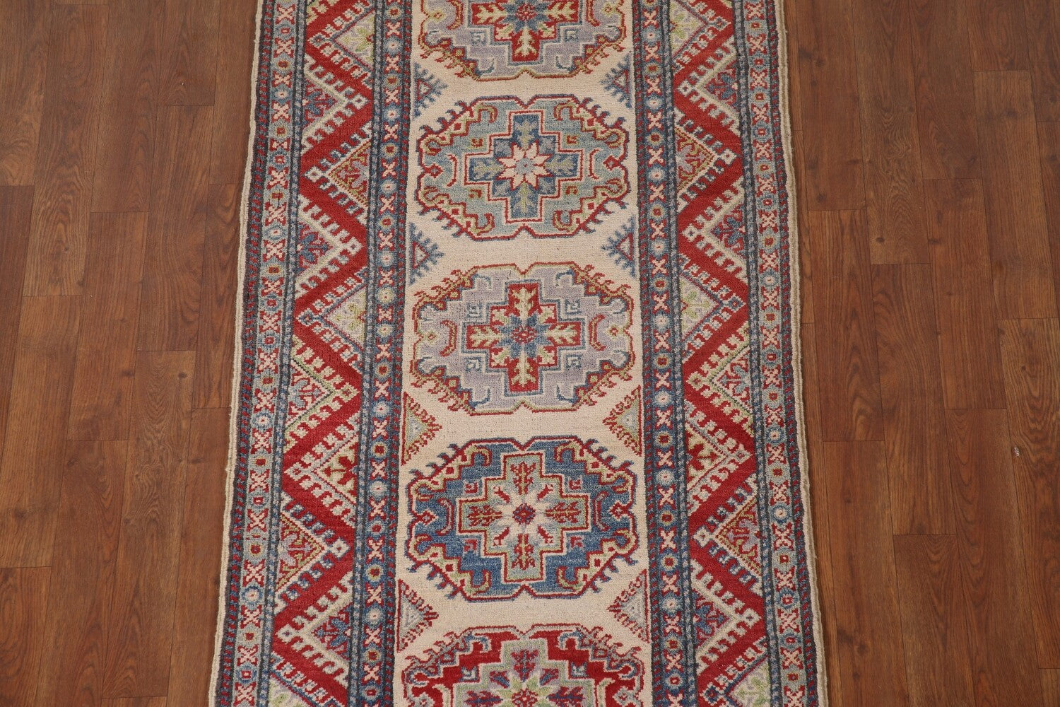 Geometric Kazak Oriental Runner Rug 3x15