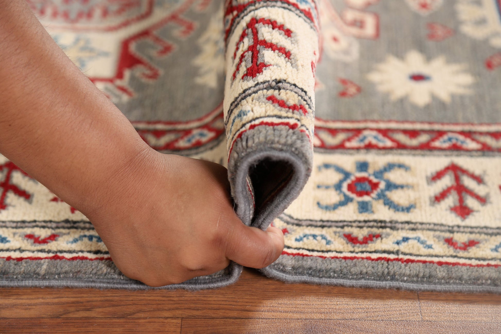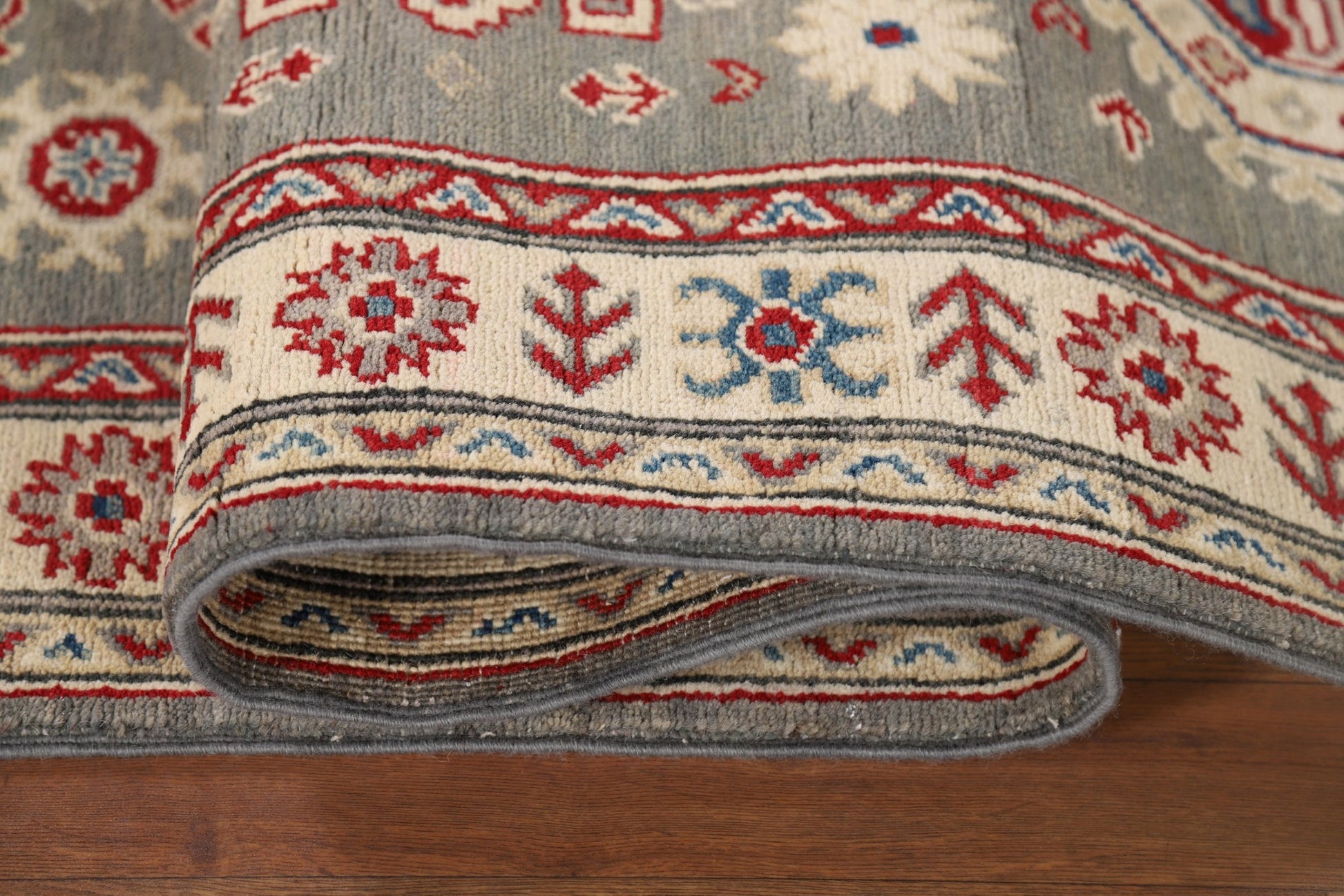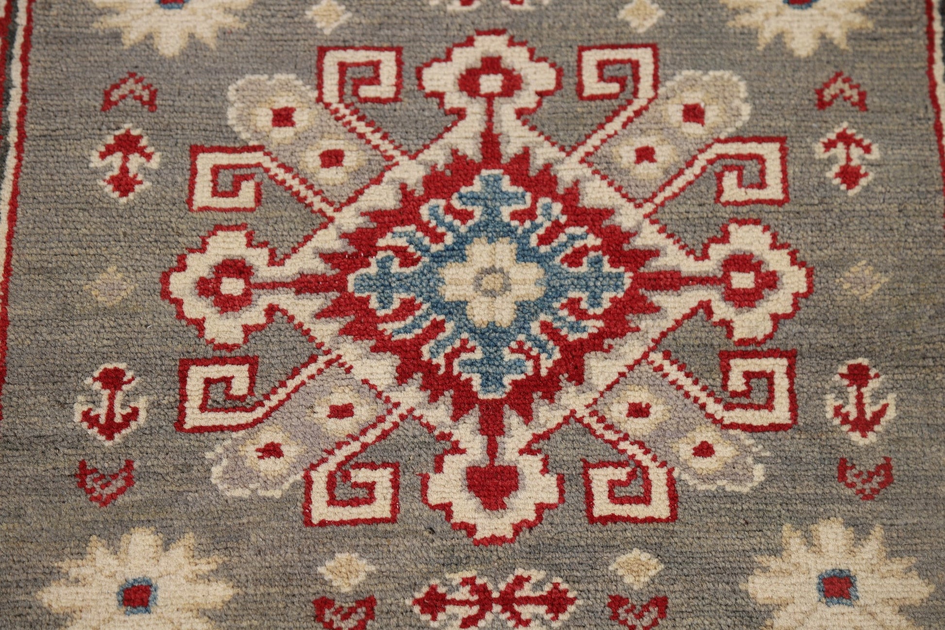 A Beautiful Genuine Pakistan Kazak rug is Hand Knotted by skillful weavers in Pakistan with 100% Wool Material. This rug is in New, First Quality condition. dimensions are 16' 4'' X 2' 8'' in foot and 498 X 81 in centimeter. the primary color is Greys & Charcoal.