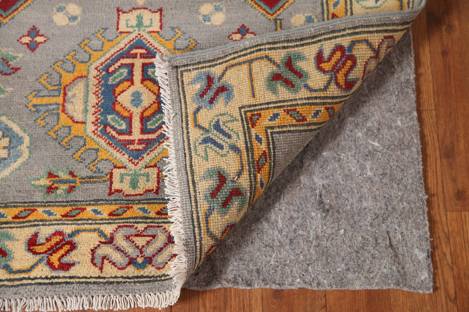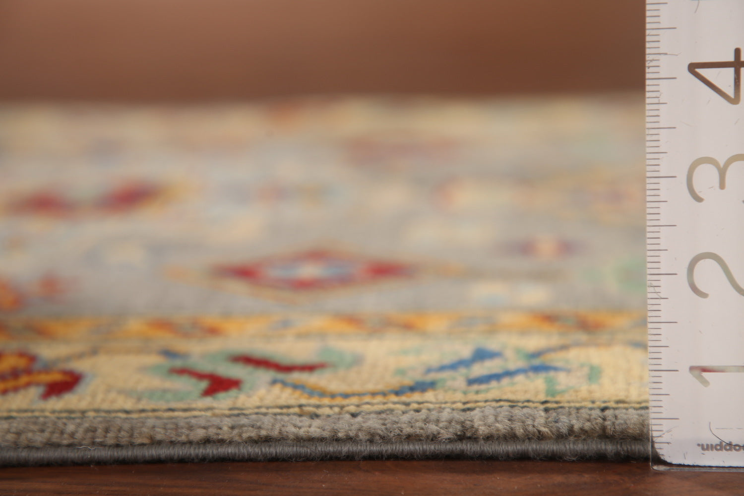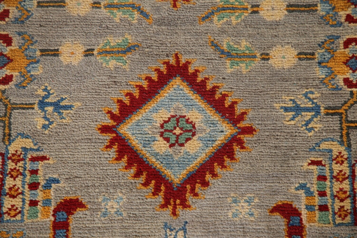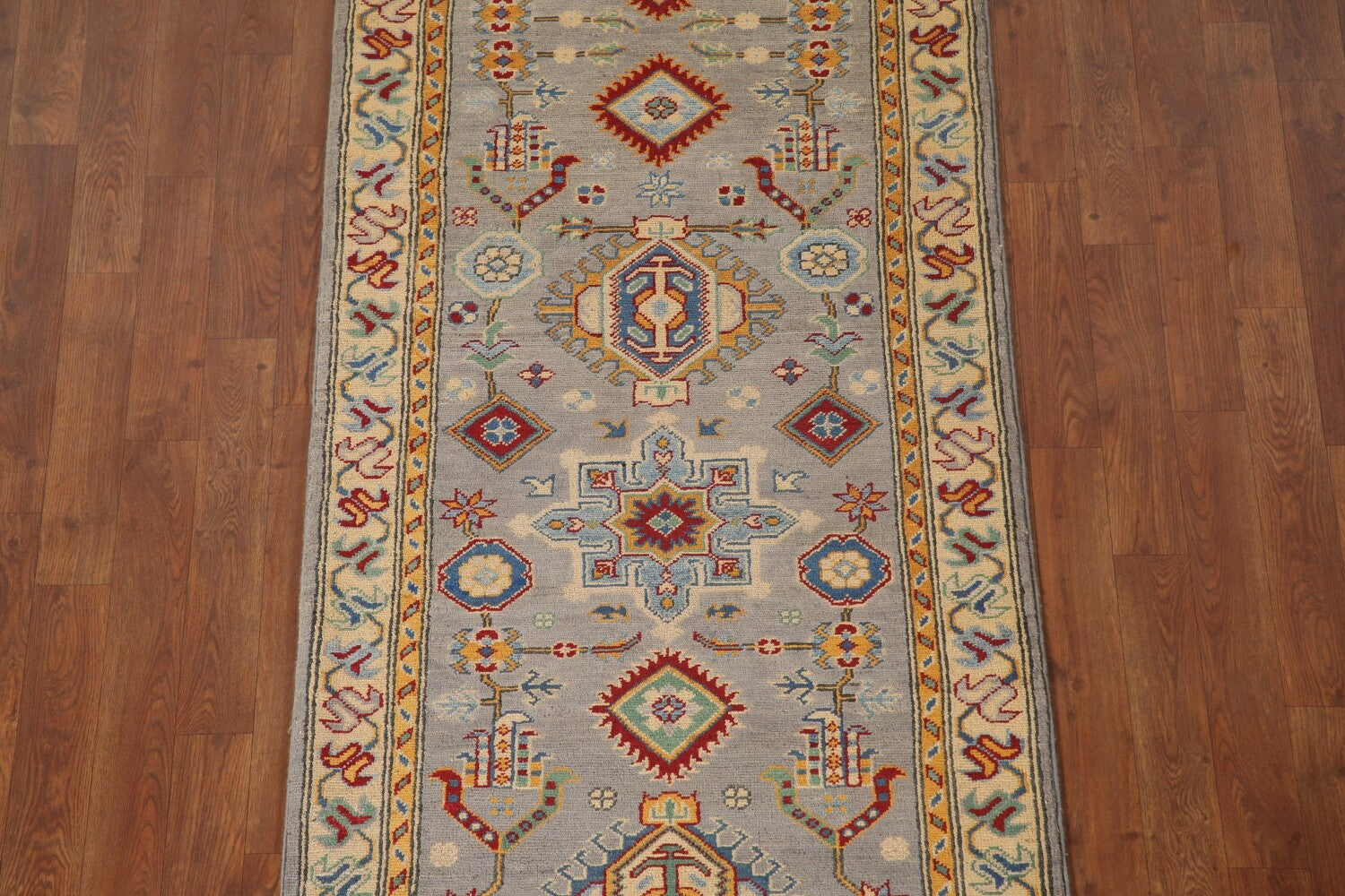 A Beautiful Genuine Pakistan Kazak rug is Hand Knotted by skillful weavers in Pakistan with 100% Wool Material. This rug is in New, First Quality condition. dimensions are 16' 3'' X 2' 8'' in foot and 495 X 81 in centimeter. the primary color is Greys & Charcoal.