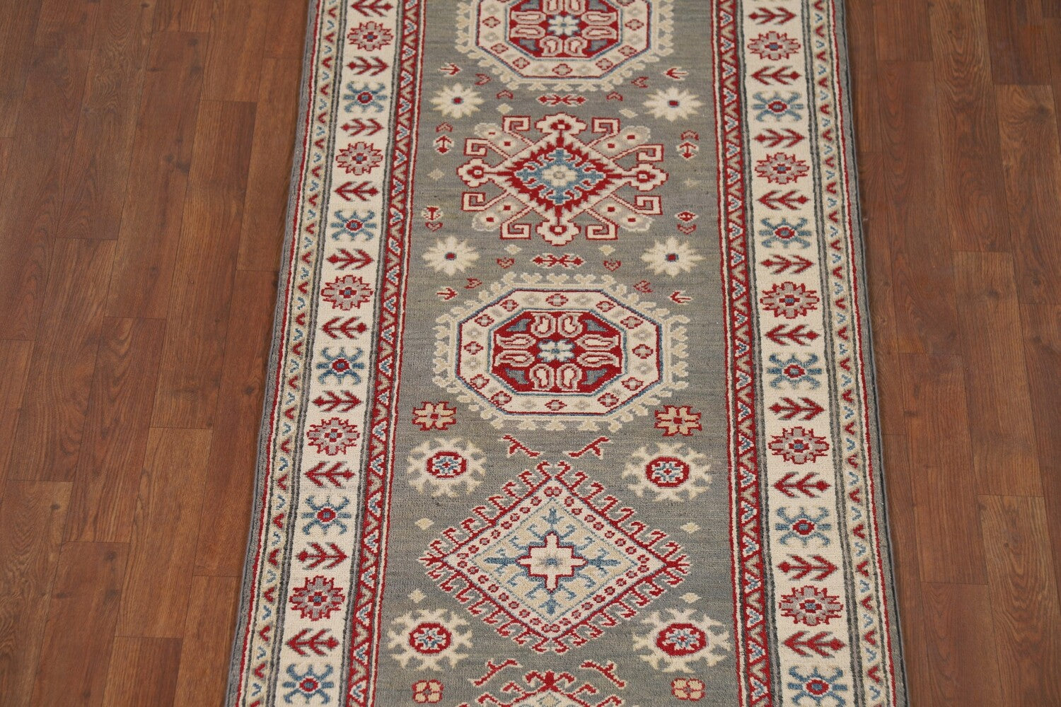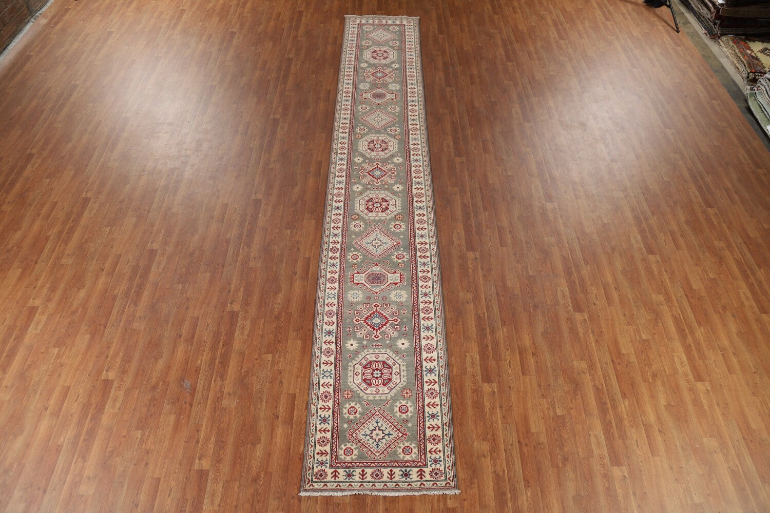 Geometric Kazak Oriental Runner Rug 3x16