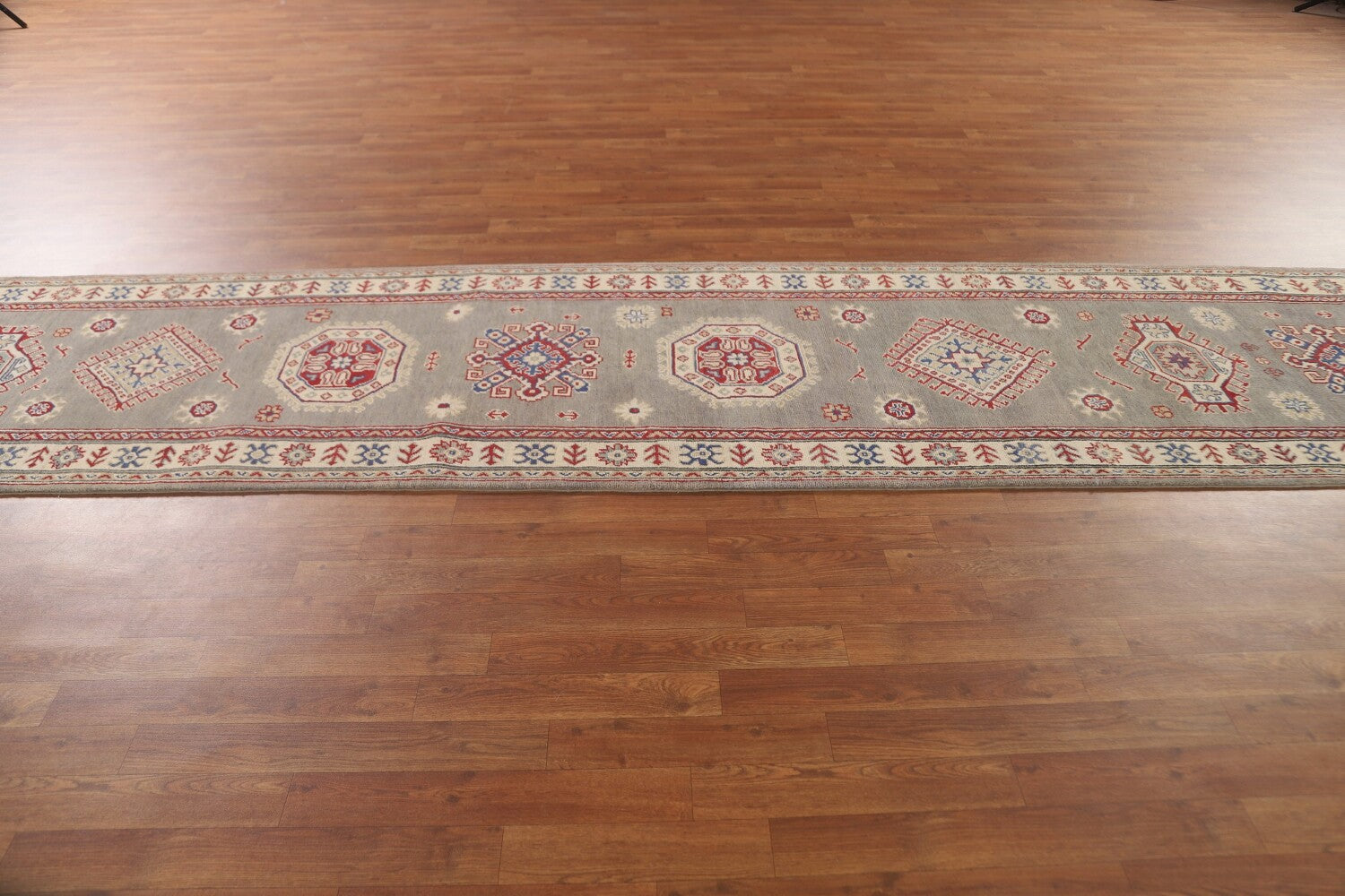 Geometric Kazak Oriental Runner Rug 3x20