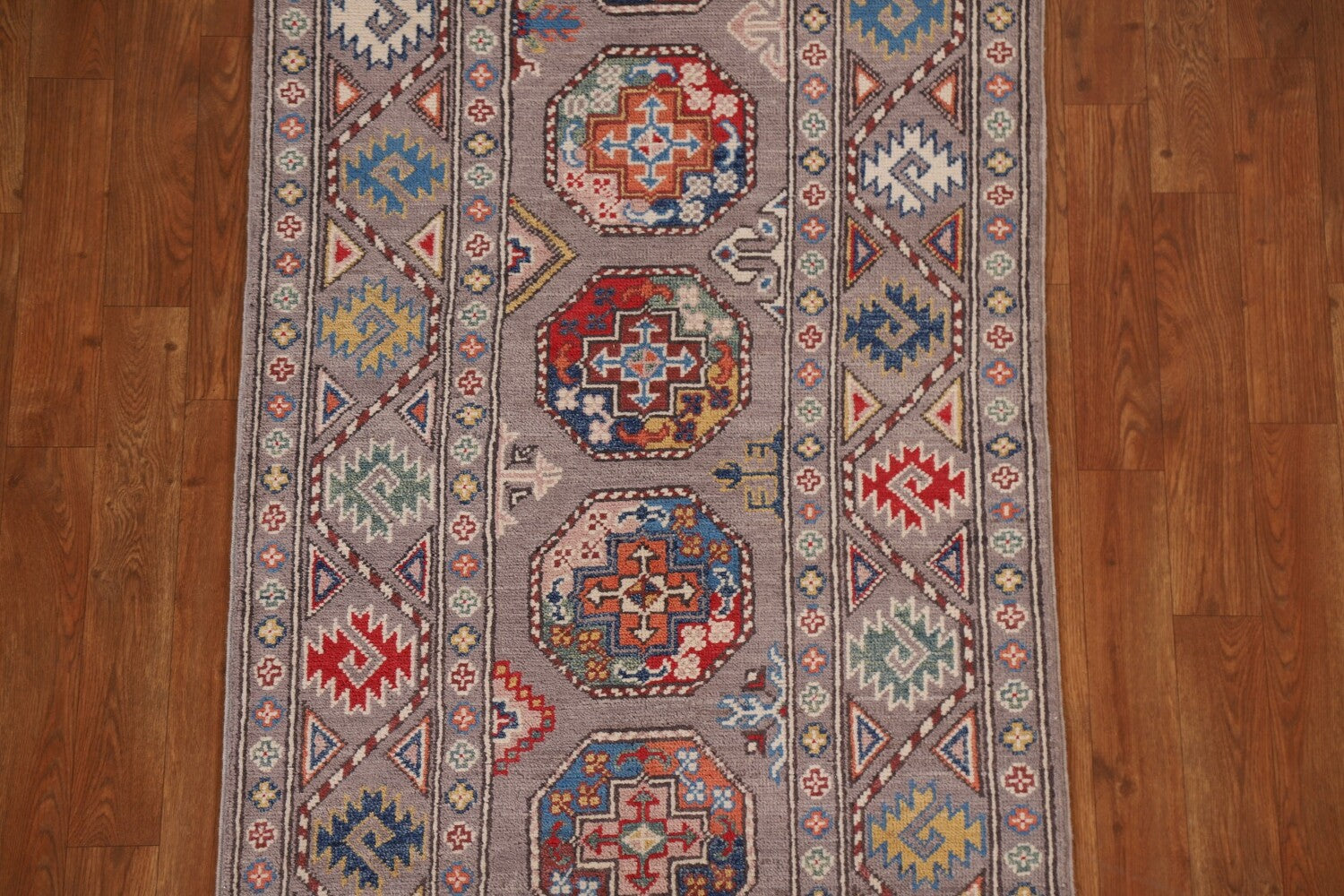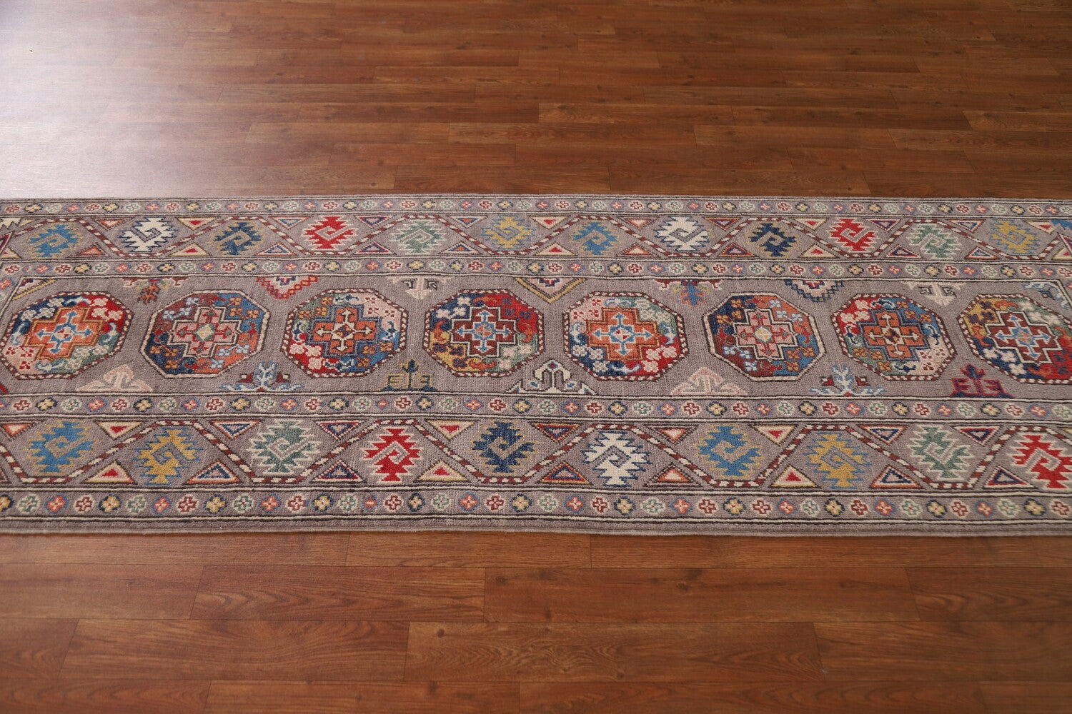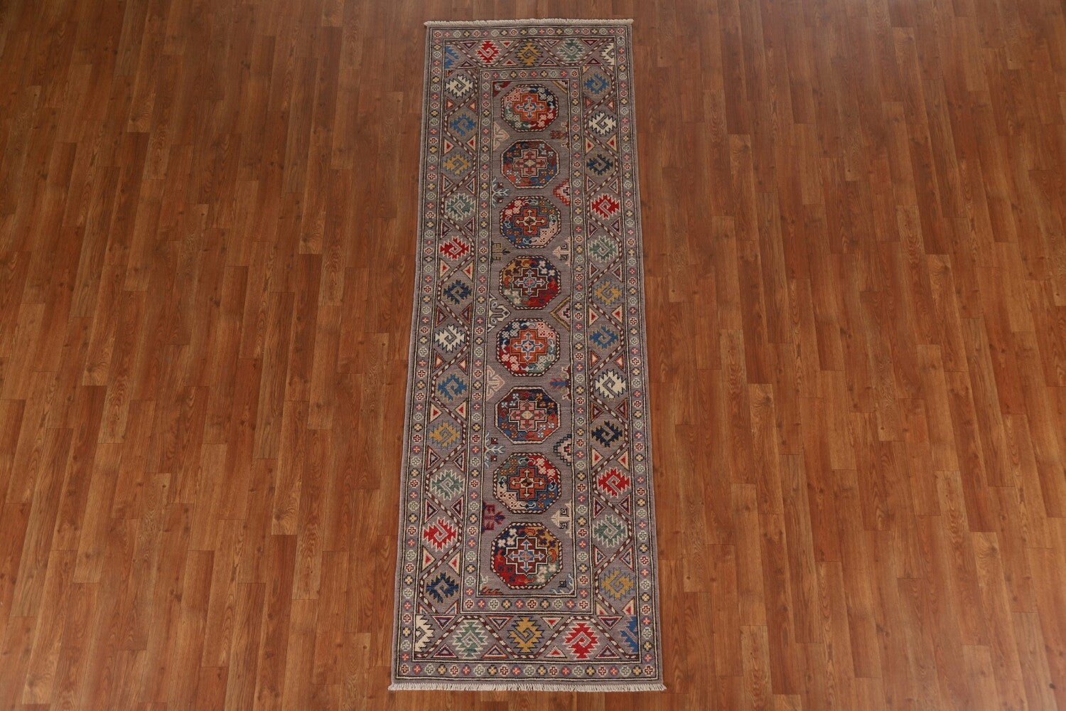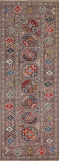 Geometric Kazak Oriental Runner Rug 3x8