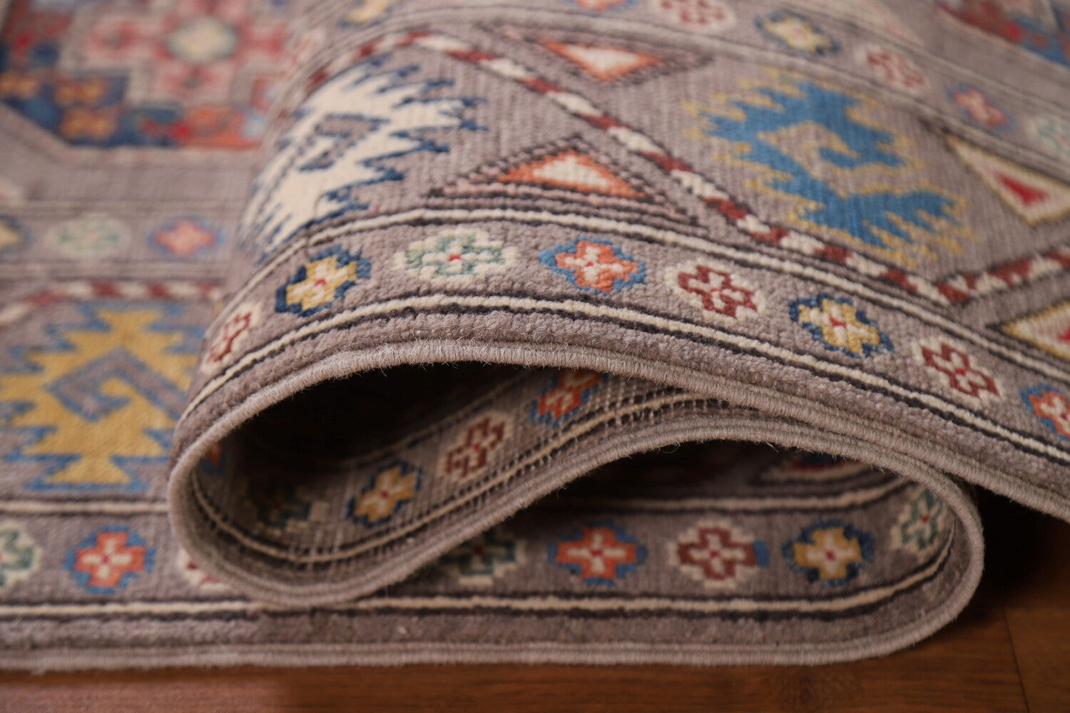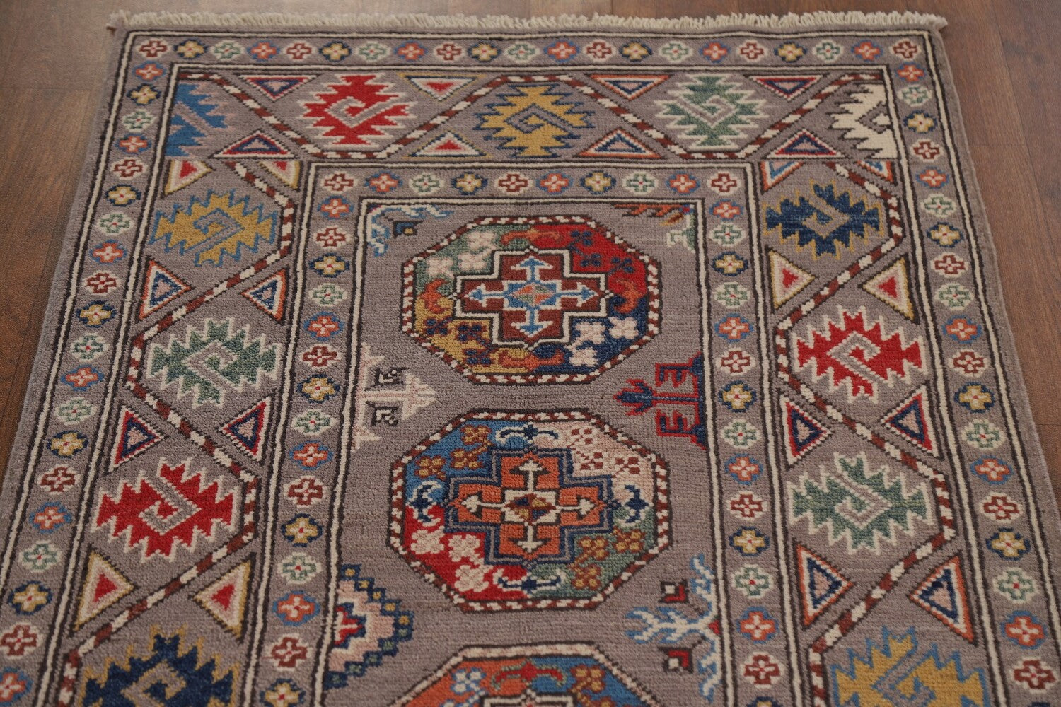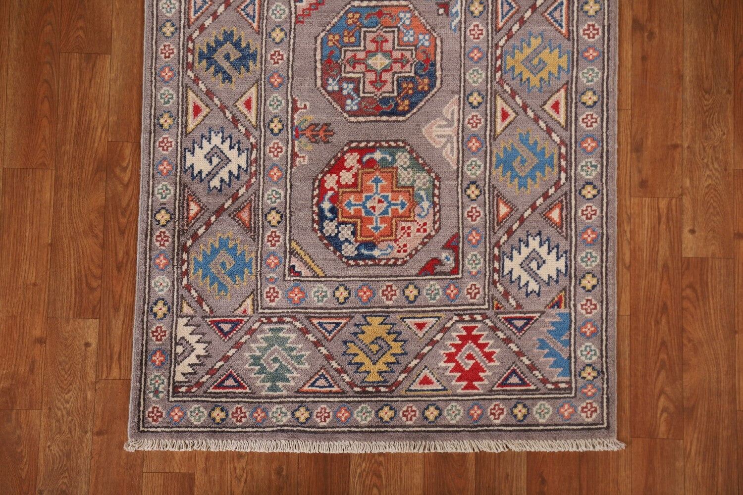 Geometric Kazak Oriental Runner Rug 3x8