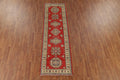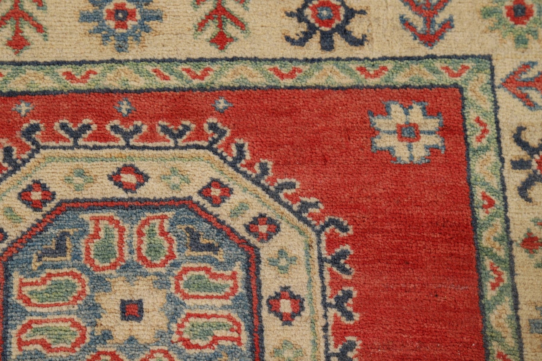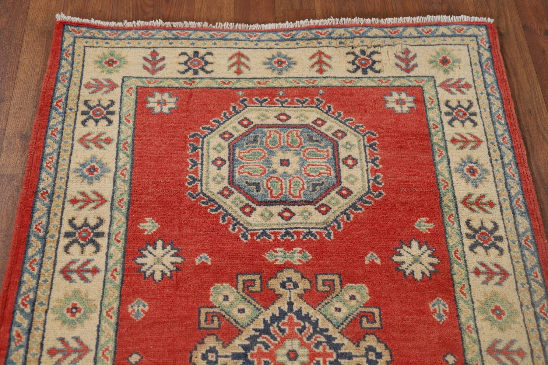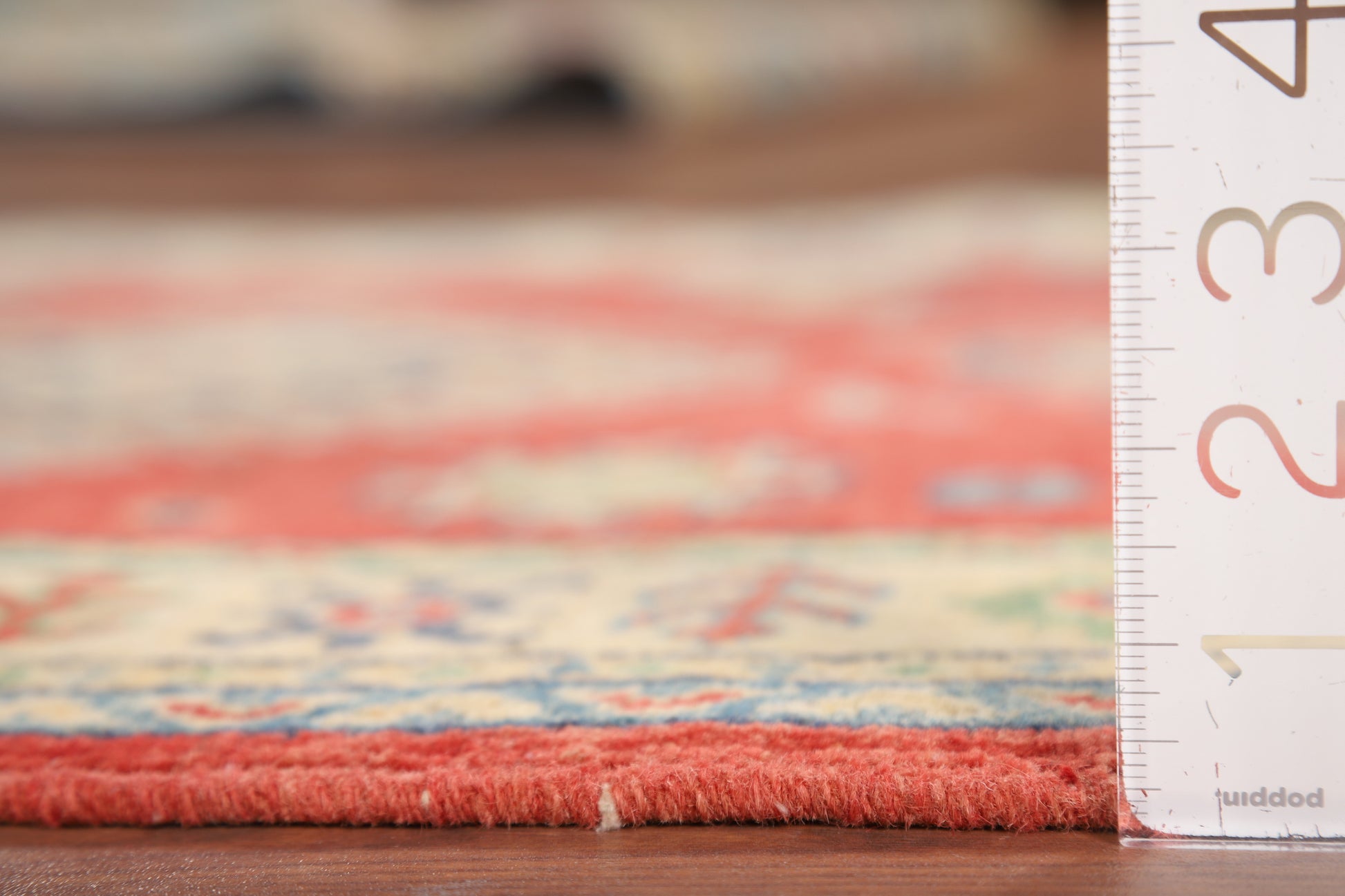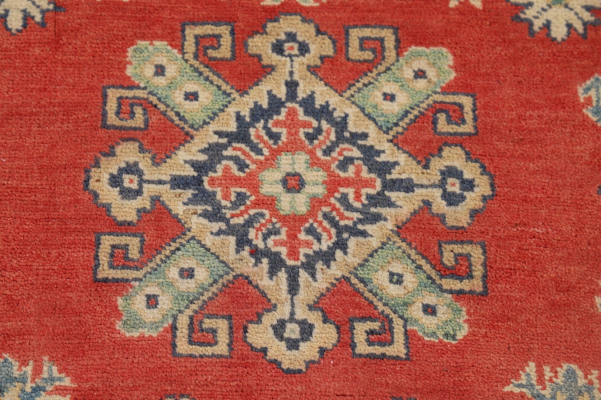 A Beautiful Genuine Pakistan Kazak rug is Hand Knotted by skillful weavers in Pakistan with 100% Wool Material. This rug is in New, First Quality condition. dimensions are 9' 1'' X 2' 10'' in foot and 277 X 86 in centimeter. the primary color is Oranges & Rust.