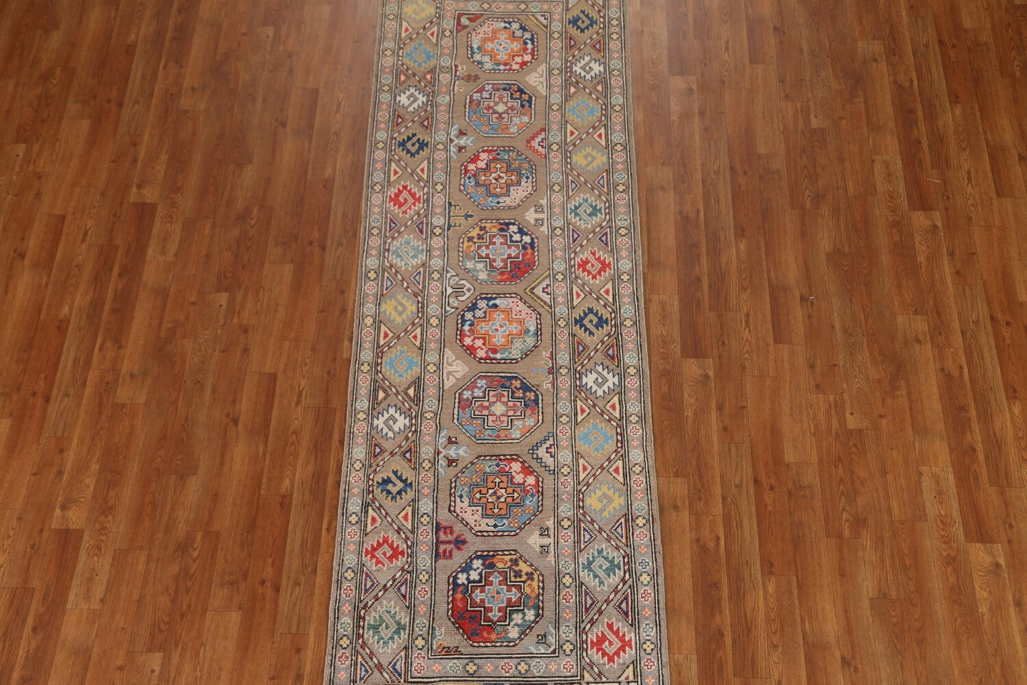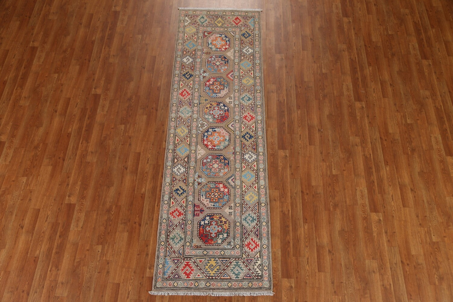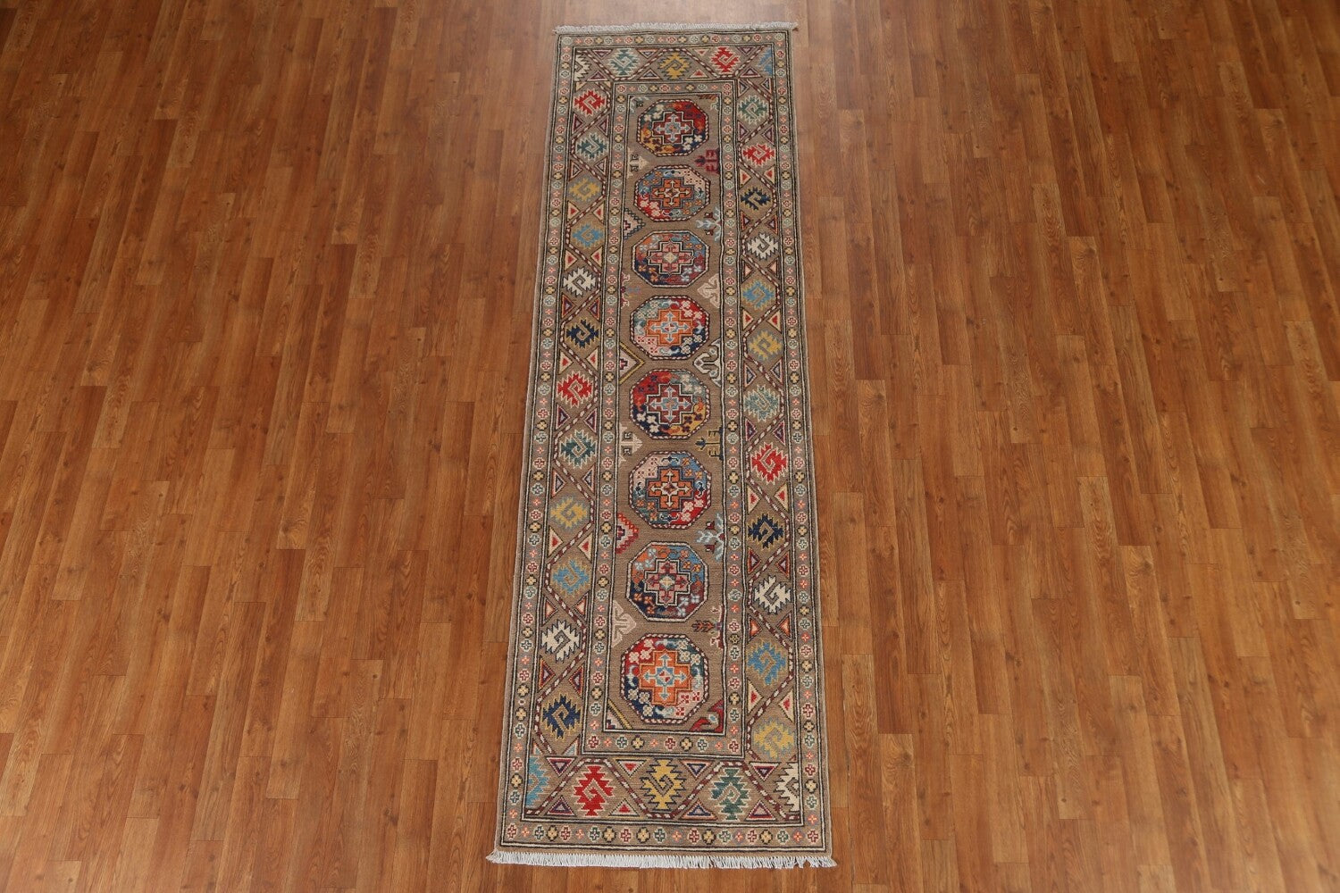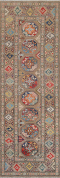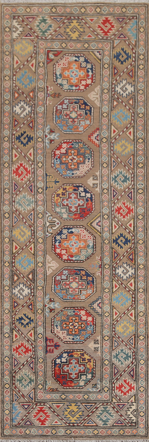 Geometric Kazak Oriental Runner Rug 3x9