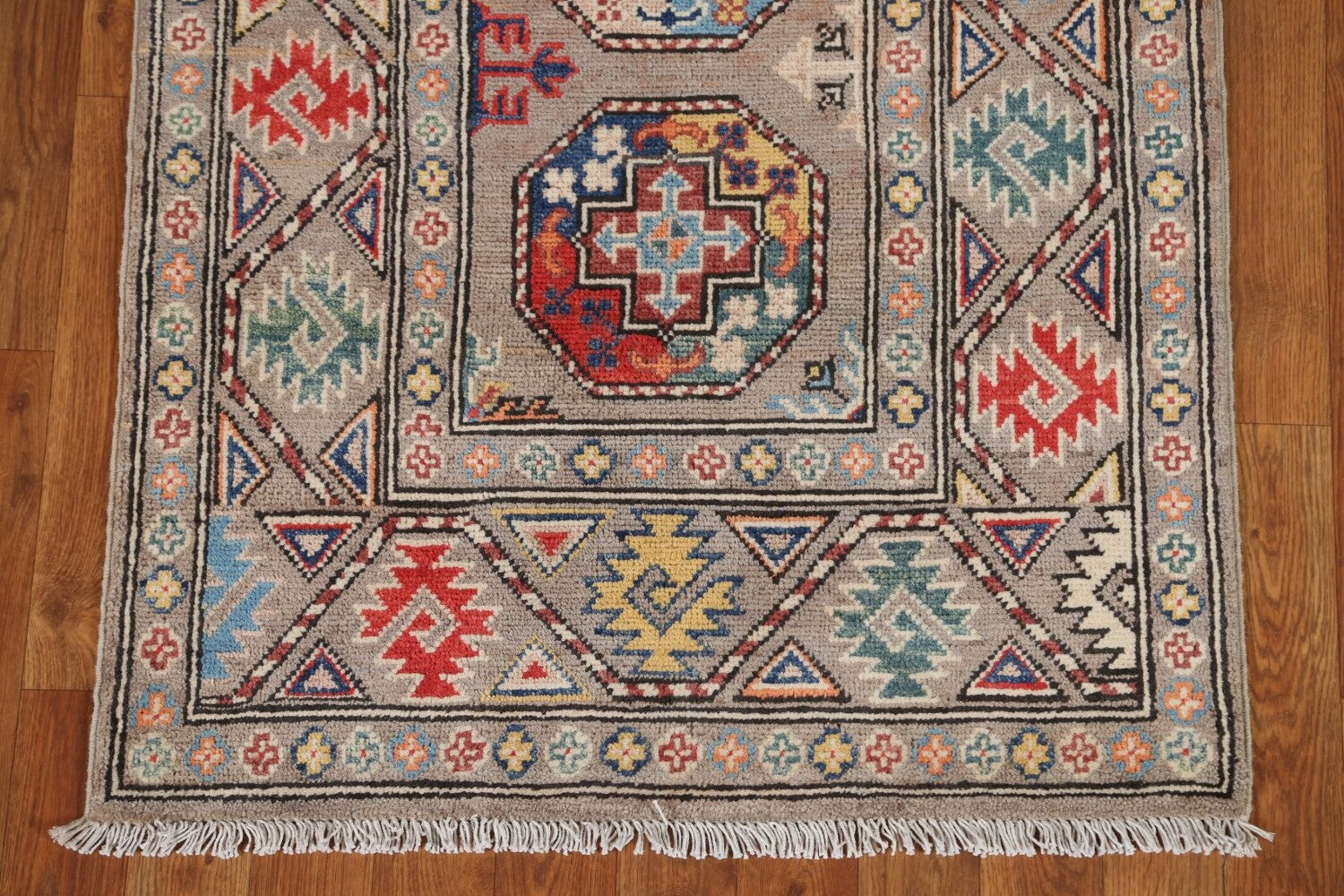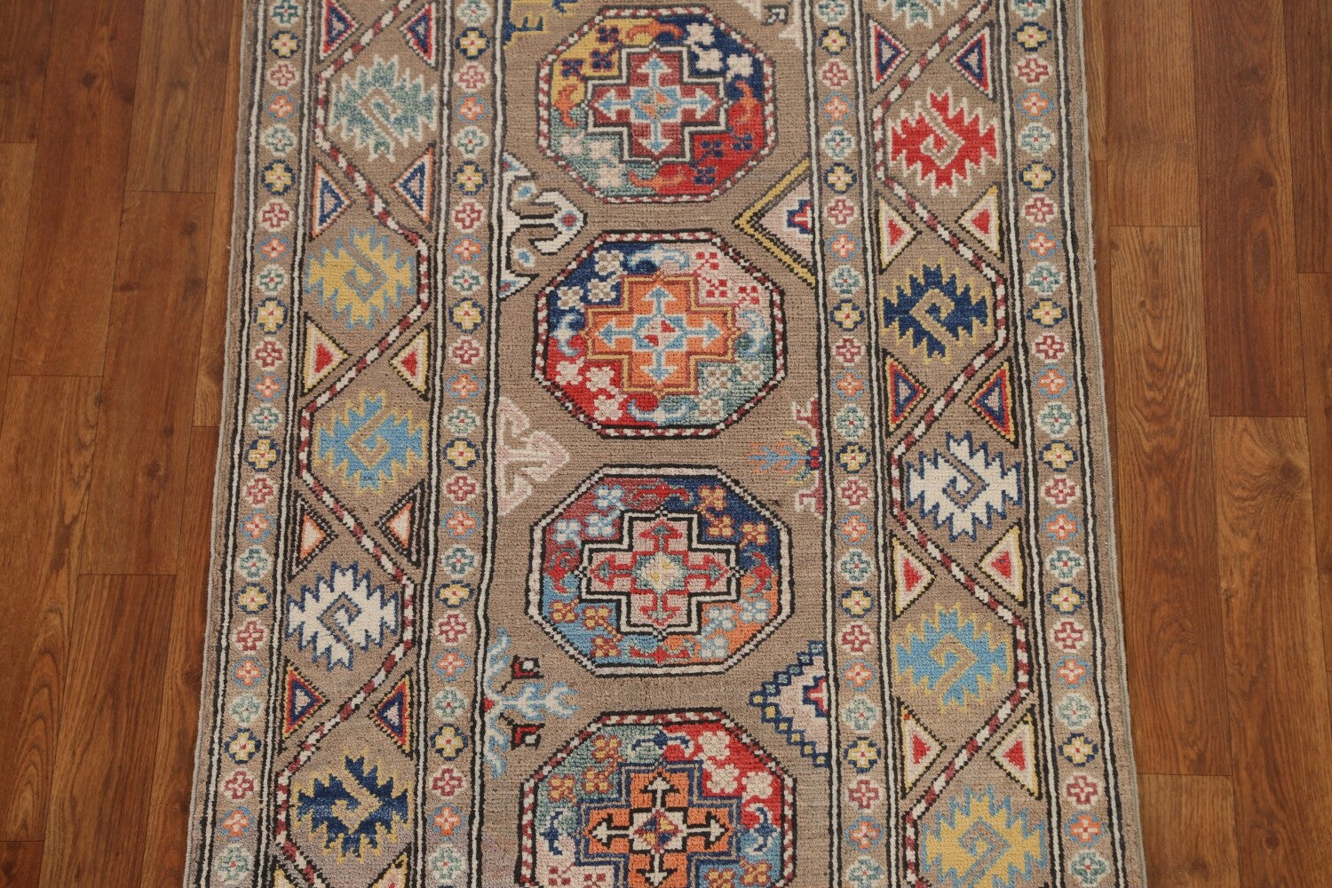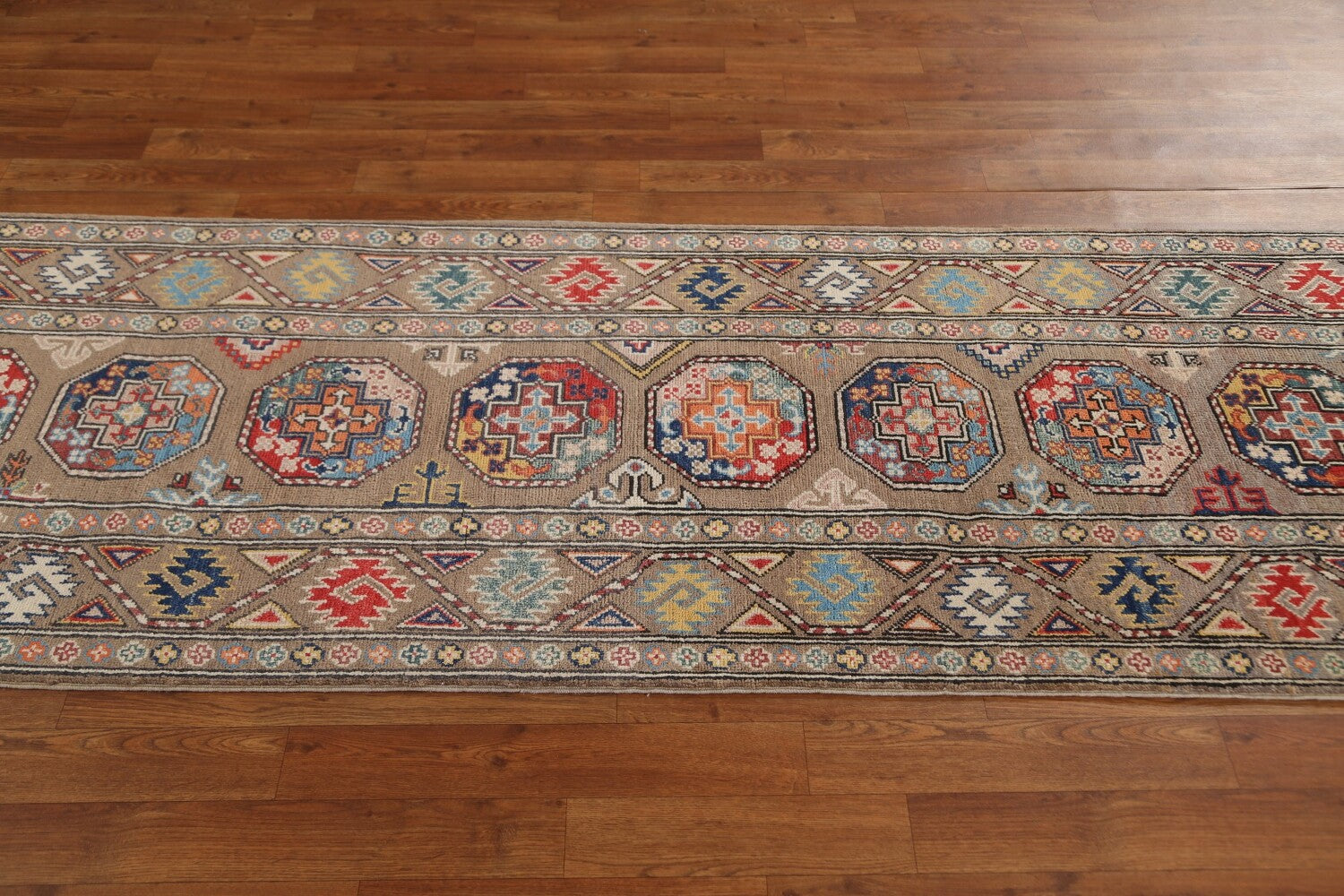 Geometric Kazak Oriental Runner Rug 3x9