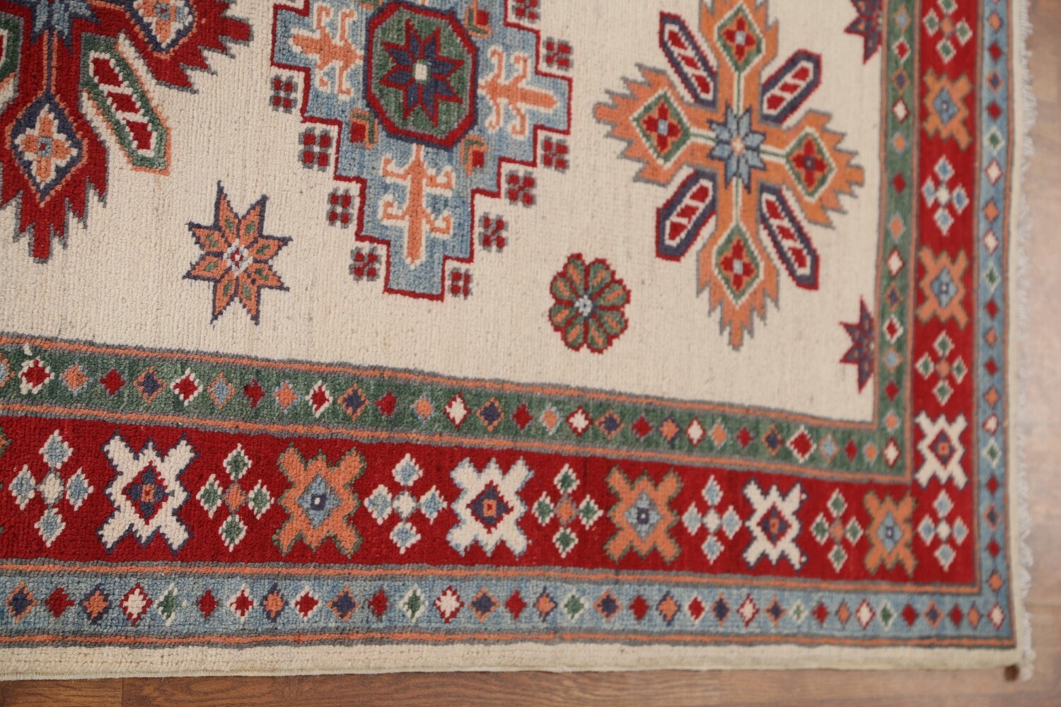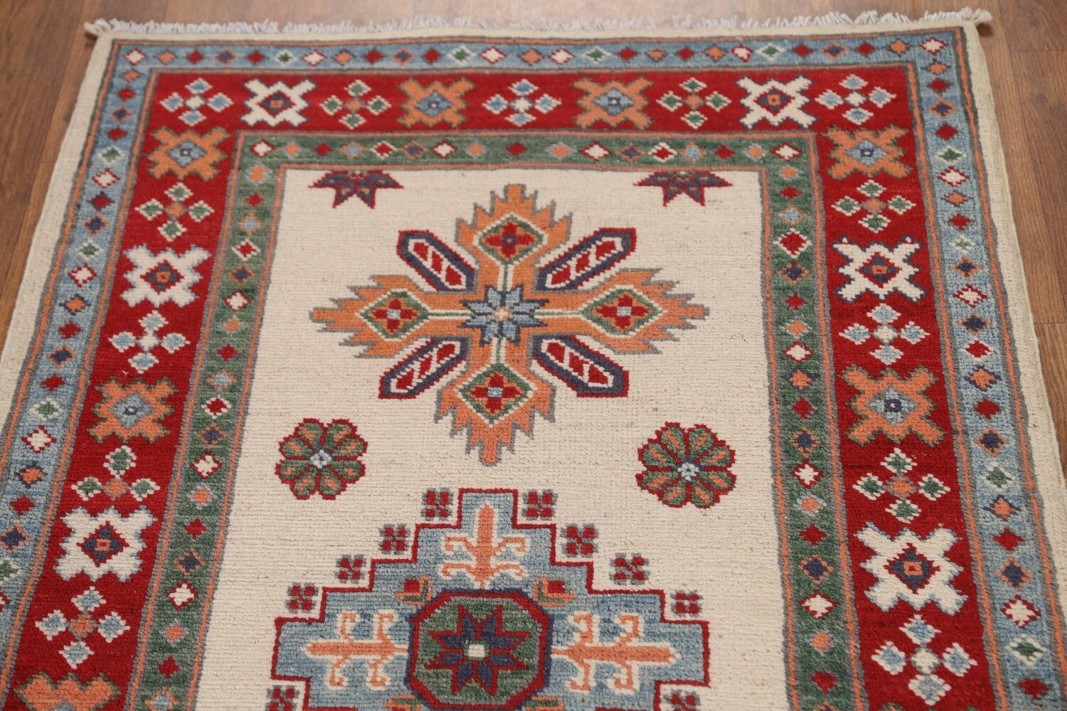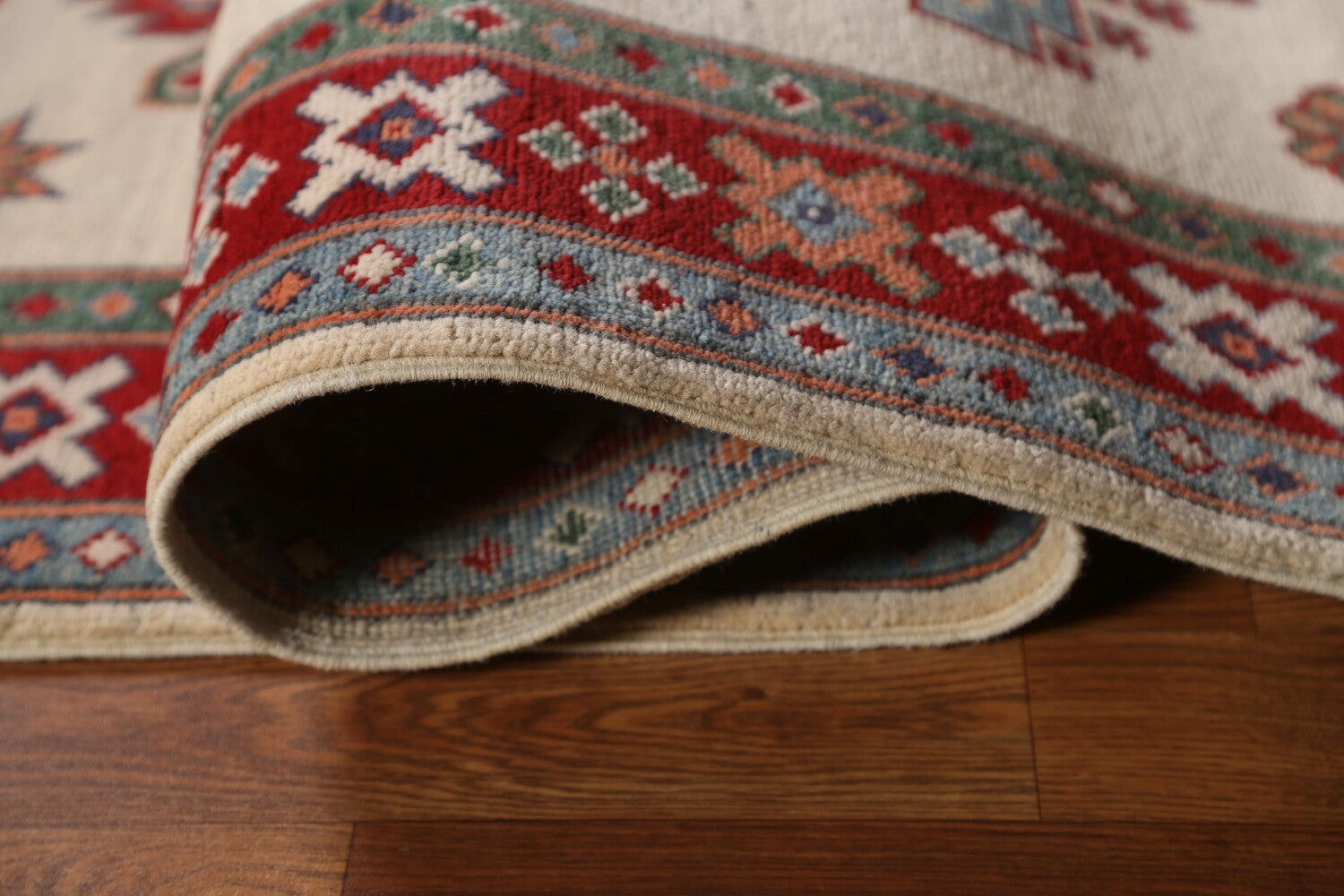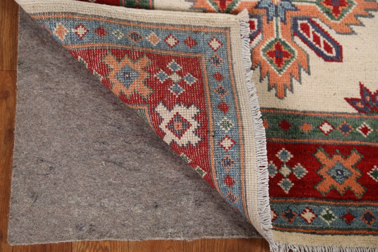 A Beautiful Genuine Pakistan Kazak rug is Hand Knotted by skillful weavers in Pakistan with 100% Wool Material. This rug is in New, First Quality condition. dimensions are 8' 8'' X 2' 10'' in foot and 264 X 86 in centimeter. the primary color is Beige & Ivories.