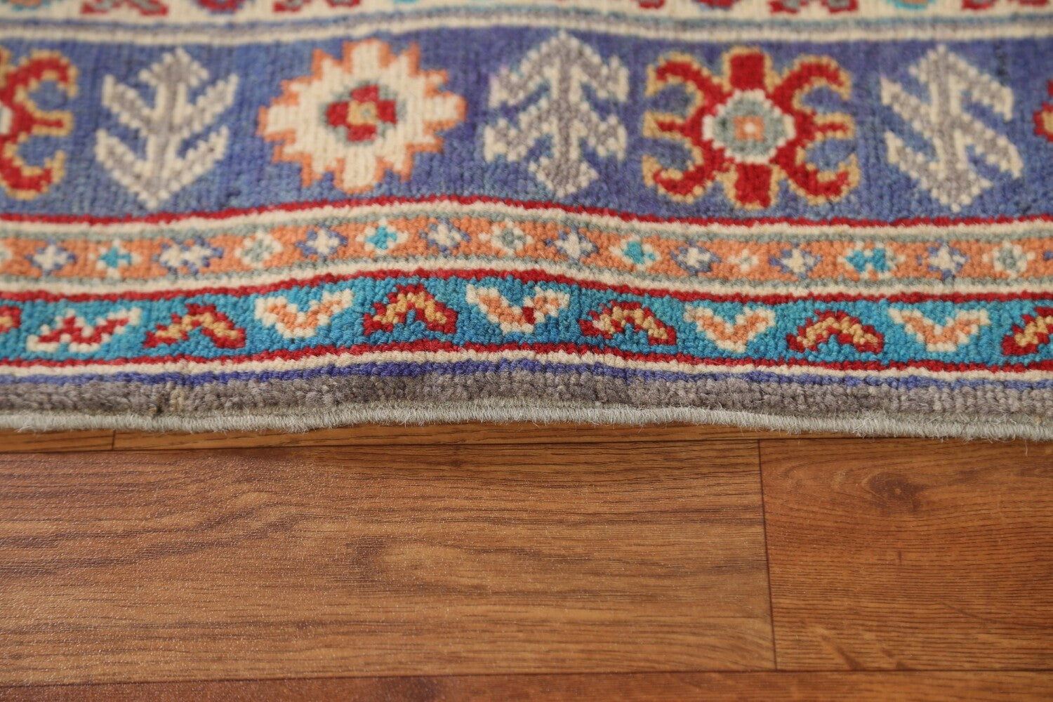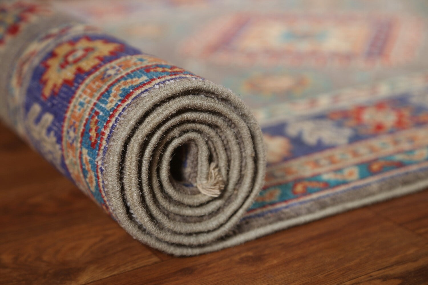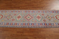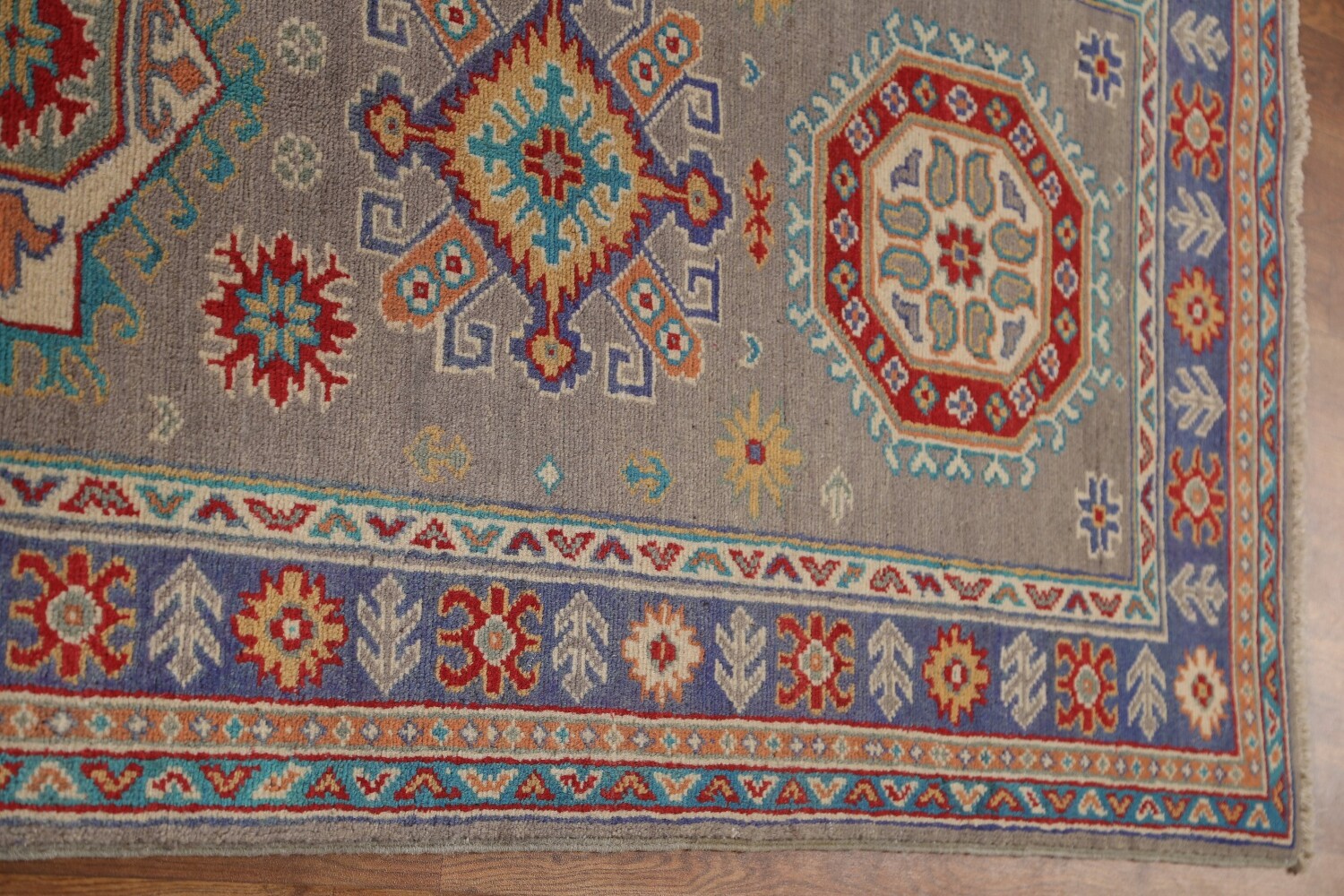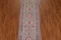 A Beautiful Genuine Pakistan Kazak rug is Hand Knotted by skillful weavers in Pakistan with 100% Wool Material. This rug is in New, First Quality condition. dimensions are 9' 6'' X 2' 9'' in foot and 290 X 84 in centimeter. the primary color is Greys & Charcoal.