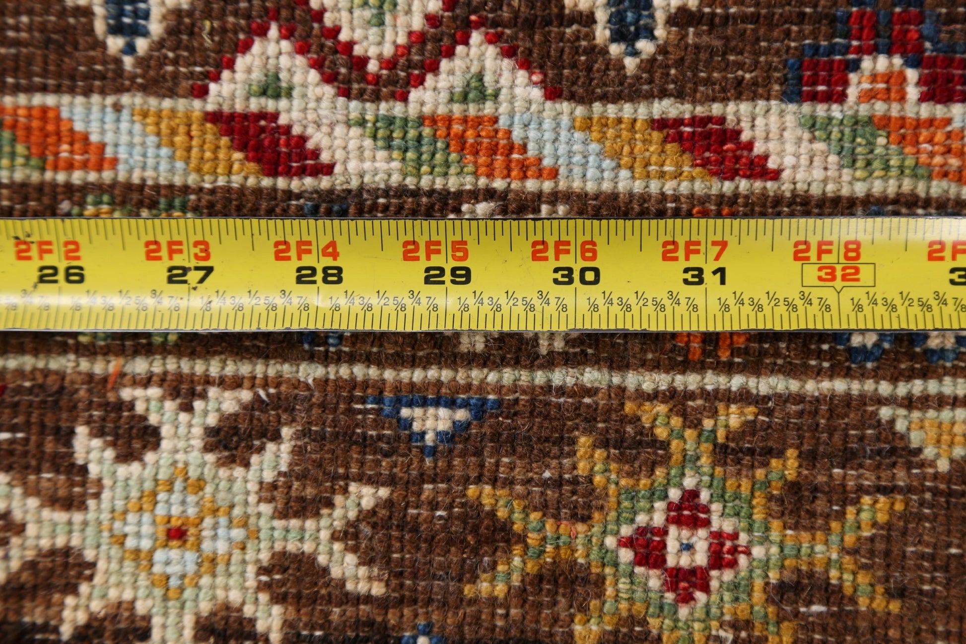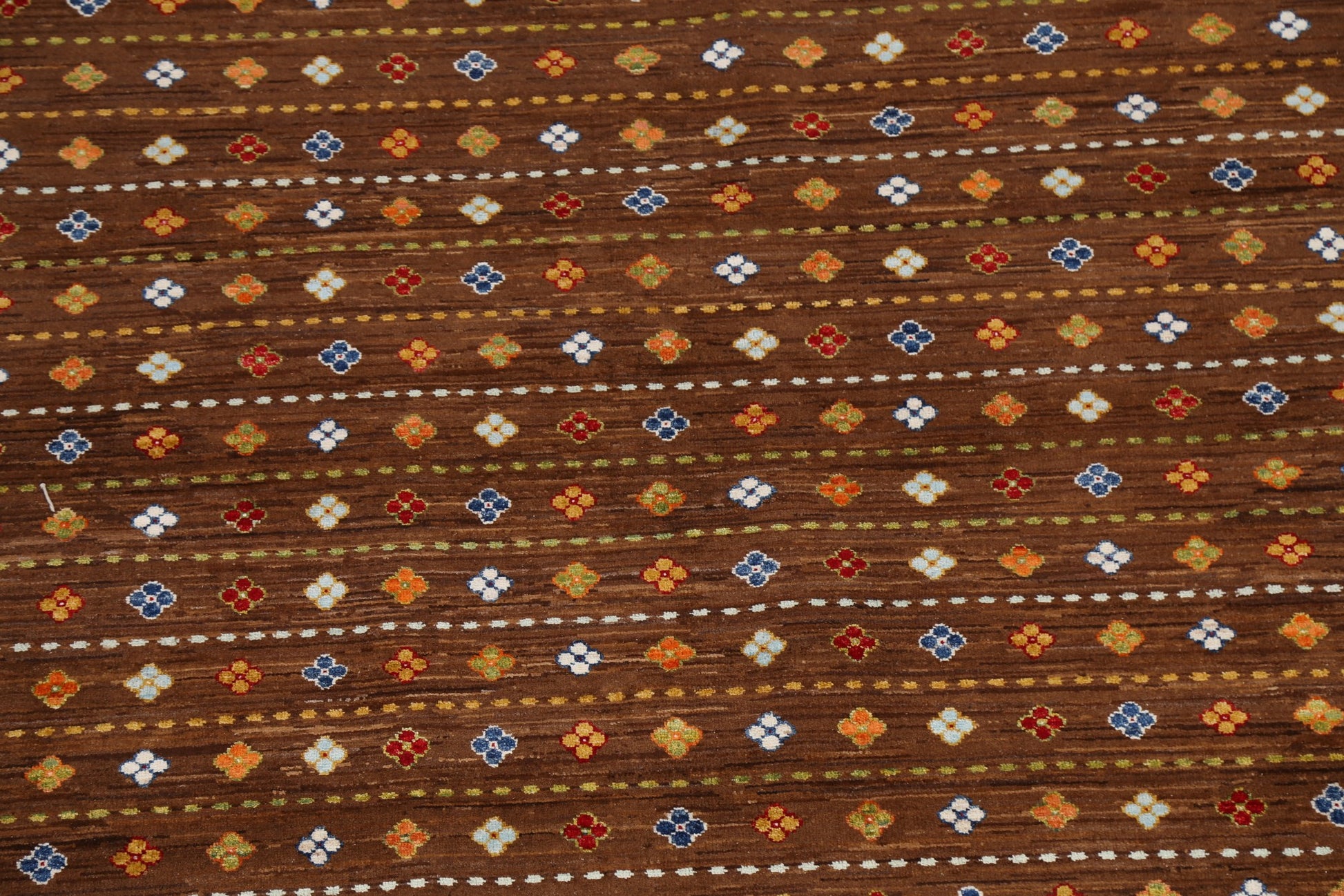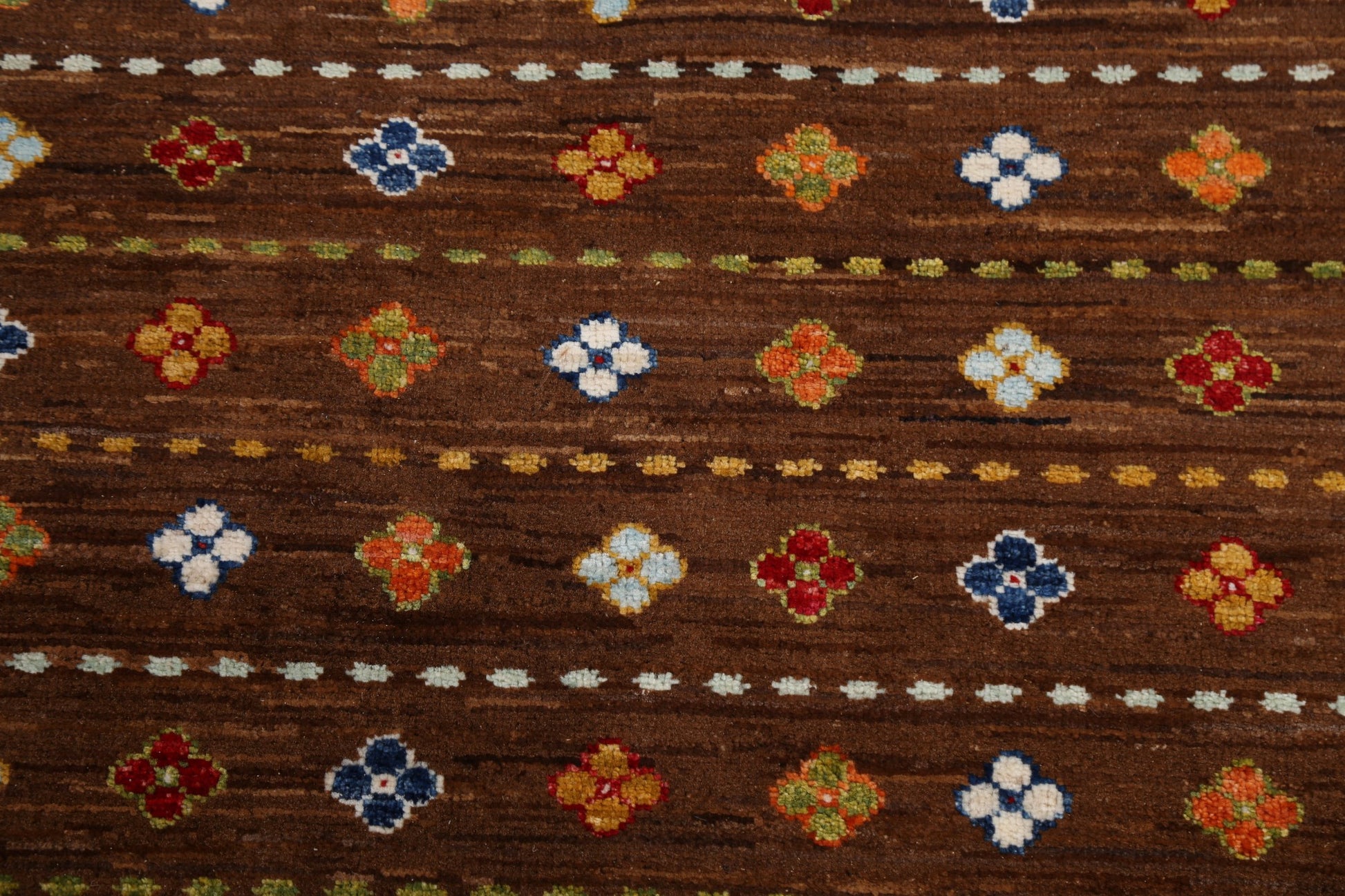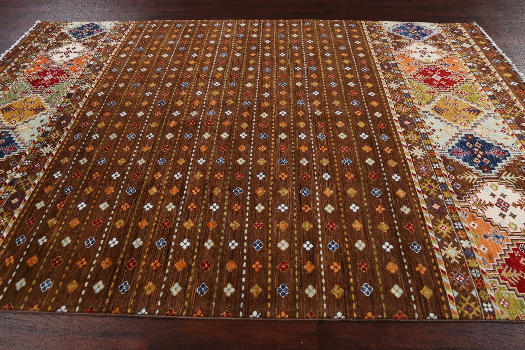 A Beautiful Genuine Persia ( Persia ) Kazak rug is Hand Knotted by skillful weavers in Persia ( Persia ) with 100% Wool Material. This rug is in New, First Quality condition. dimensions are 9' 9'' X 6' 9'' in foot and 297 X 206 in centimeter. the primary color is Brown.